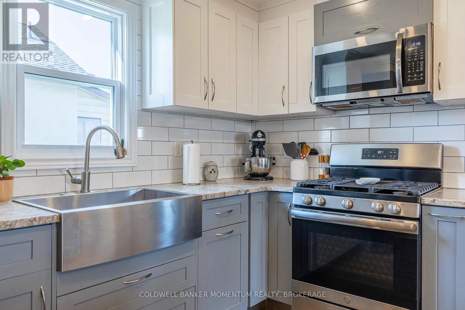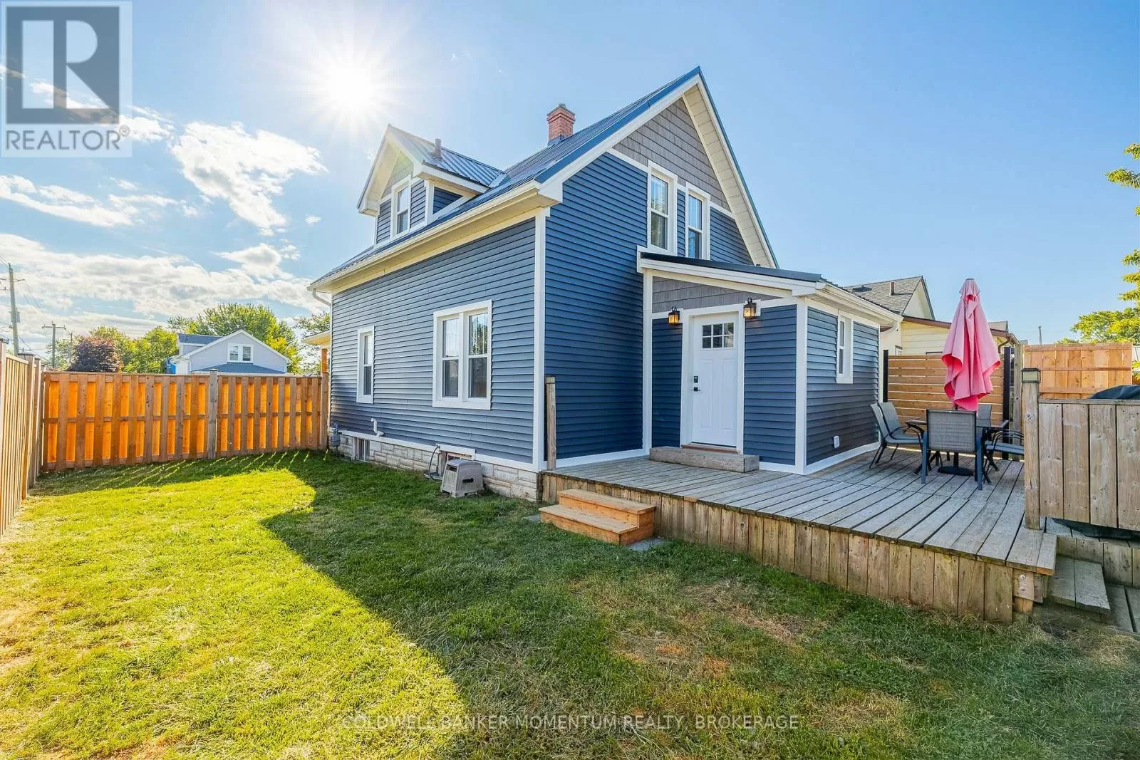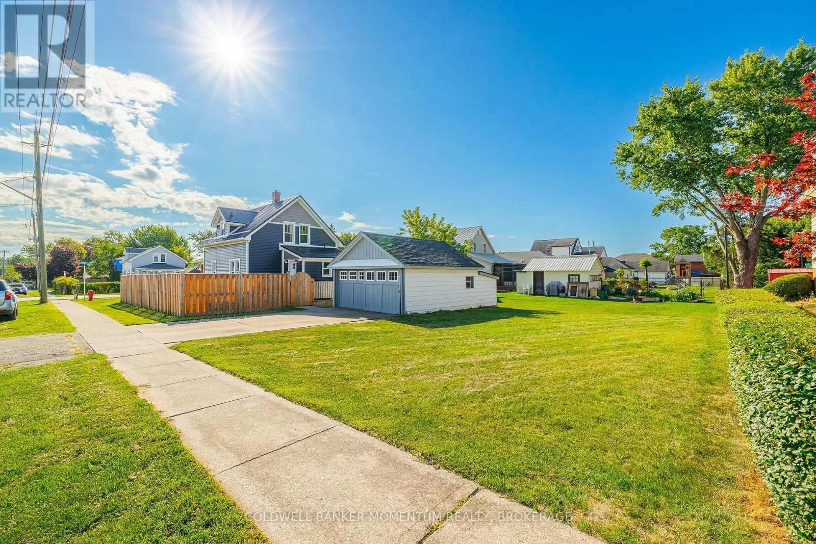 Cross Streets: Cross street OMER. ** Directions: Westside Road to Omer Avenuek to Oak Street. Located in the charming city of Port Colborne, this neighbourhood was geared for families in mind. There are schools, parks and arena located in close proximity. When you drive welcomed by the beautiful curb appeal and lovely front covered porch. Tasteful renovations. throughout the living area with nice open kitchen, dining and living room area. The main floor also features a laundry room, adjacent to a lovely 2 piece bathroom and walkout to deck and fully fenced yard. Notable updates are steel roof and windows in 2020. Basement is high and dry and can provide great storage or future development. This property is located on a corner lot but has a large back yard and access for future development for accessory unit and ability to accomodate further parking (id:27476)