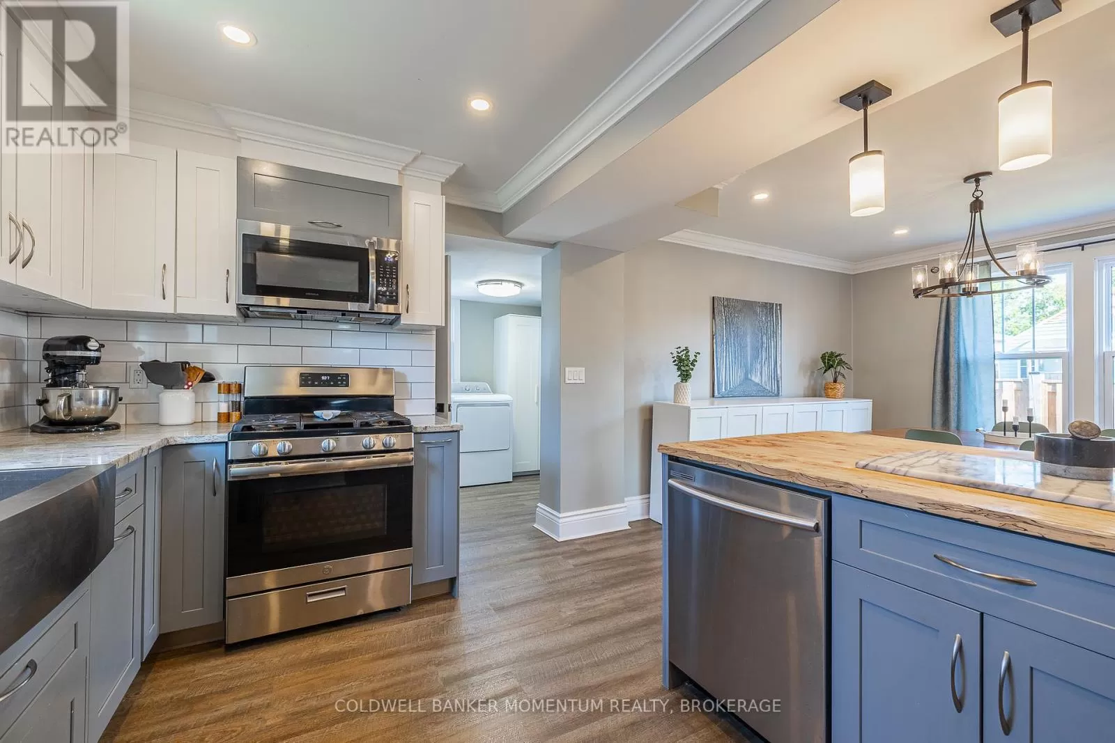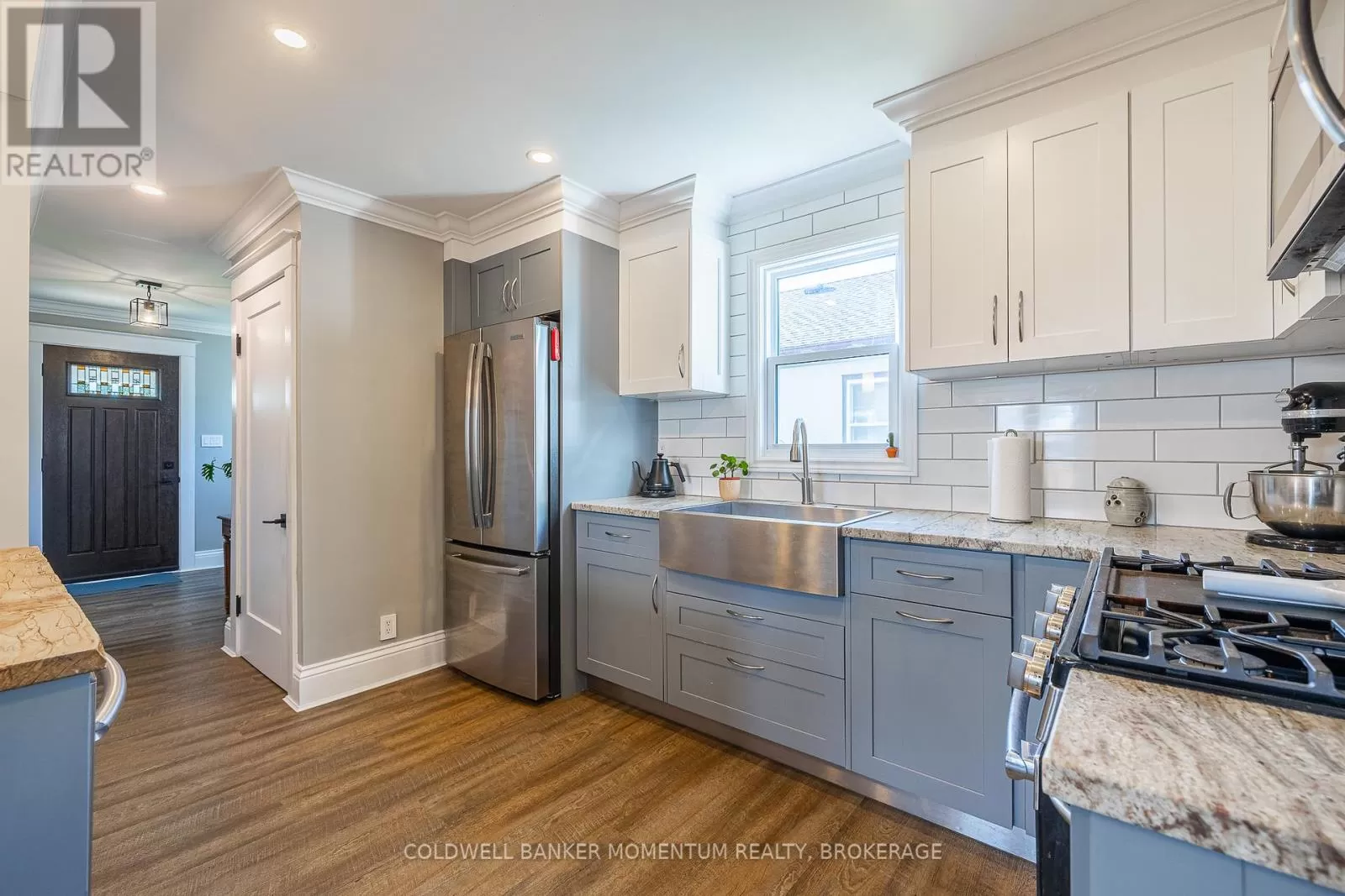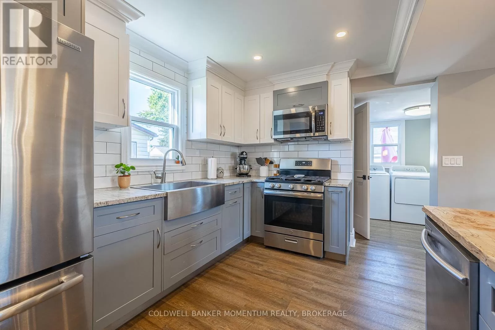 Cross Streets: Cross street OMER. ** Directions: Westside Road to Omer Avenuek to Oak Street. Located in the charming city of Port Colborne, this neighbourhood was geared for families in mind. There are schools, parks and arena located in close proximity. When you drive welcomed by the beautiful curb appeal and lovely front covered porch. Tasteful renovations. throughout the living area with nice open kitchen, dining and living room area. The main floor also features a laundry room, adjacent to a lovely 2 piece bathroom and walkout to deck and fully fenced yard. Notable updates are steel roof and windows in 2020. Basement is high and dry and can provide great storage or future development. This property is located on a corner lot but has a large back yard and access for future development for accessory unit and ability to accomodate further parking (id:27476)