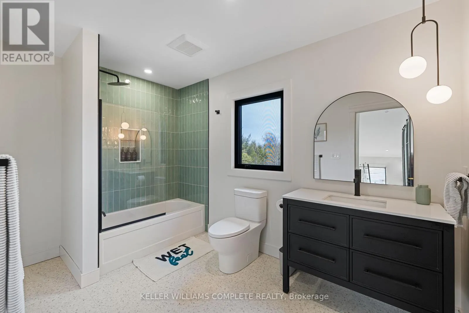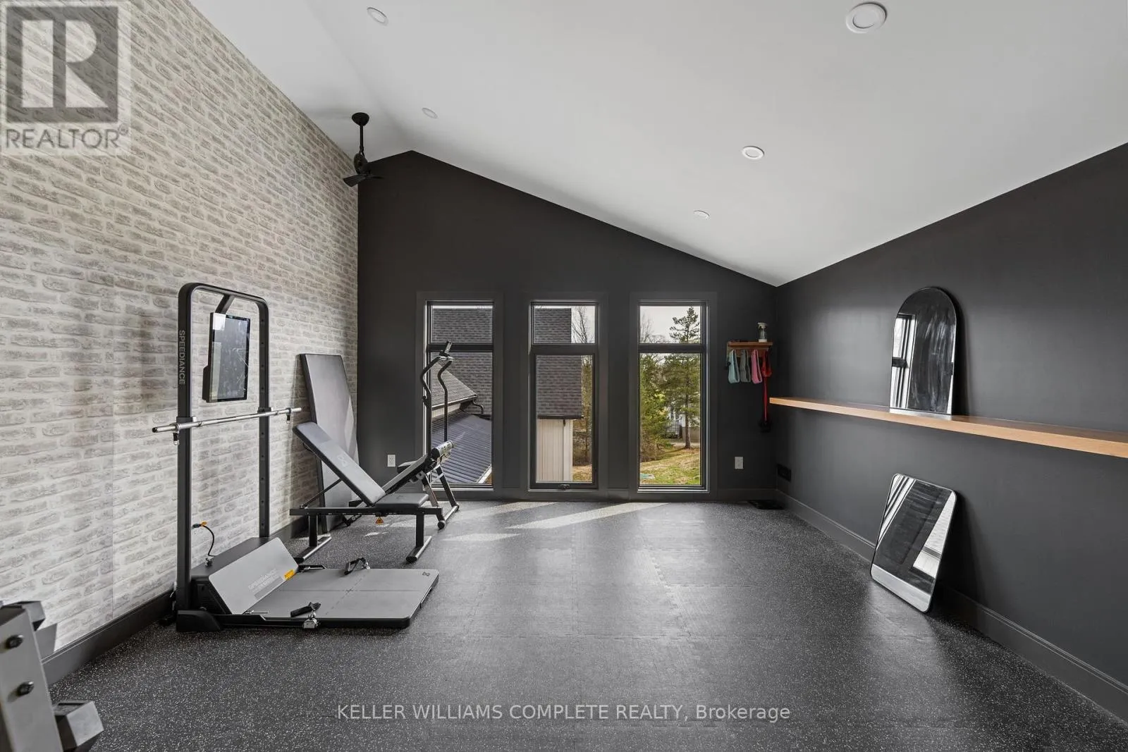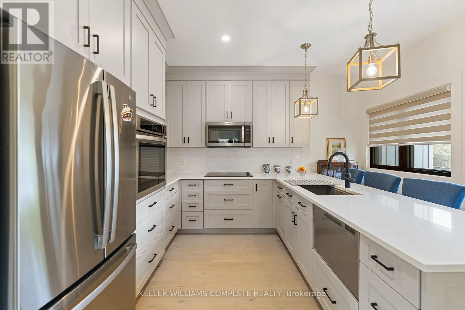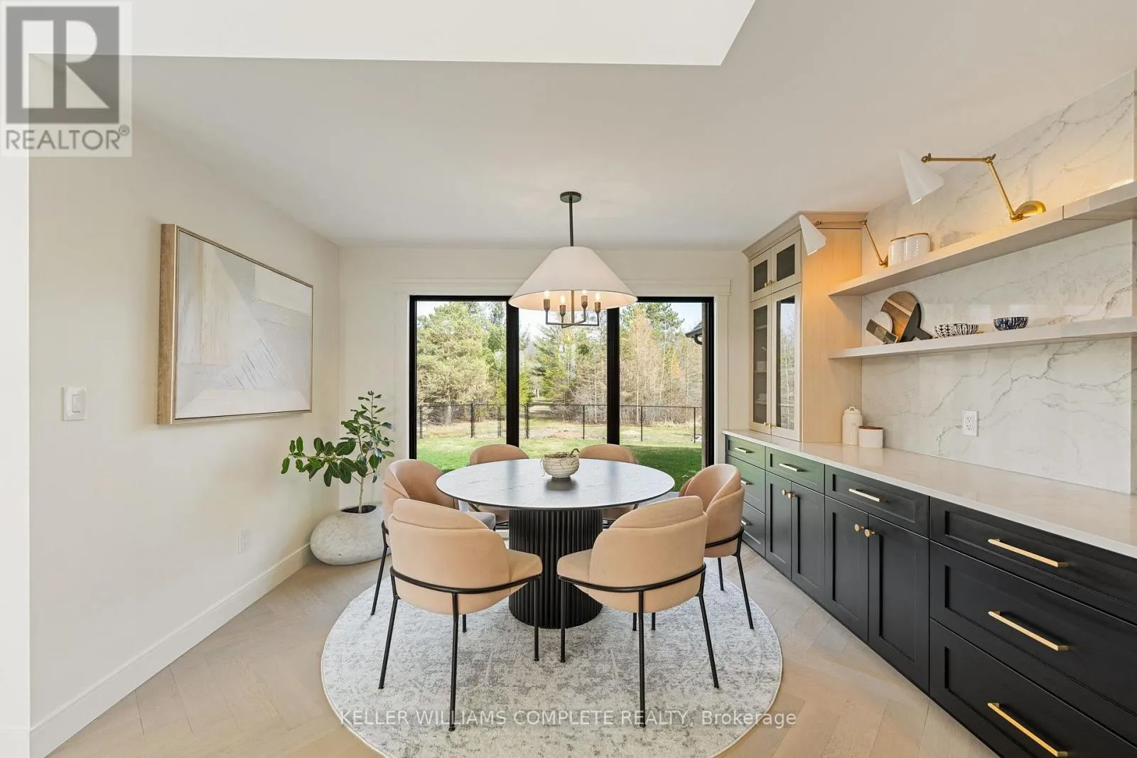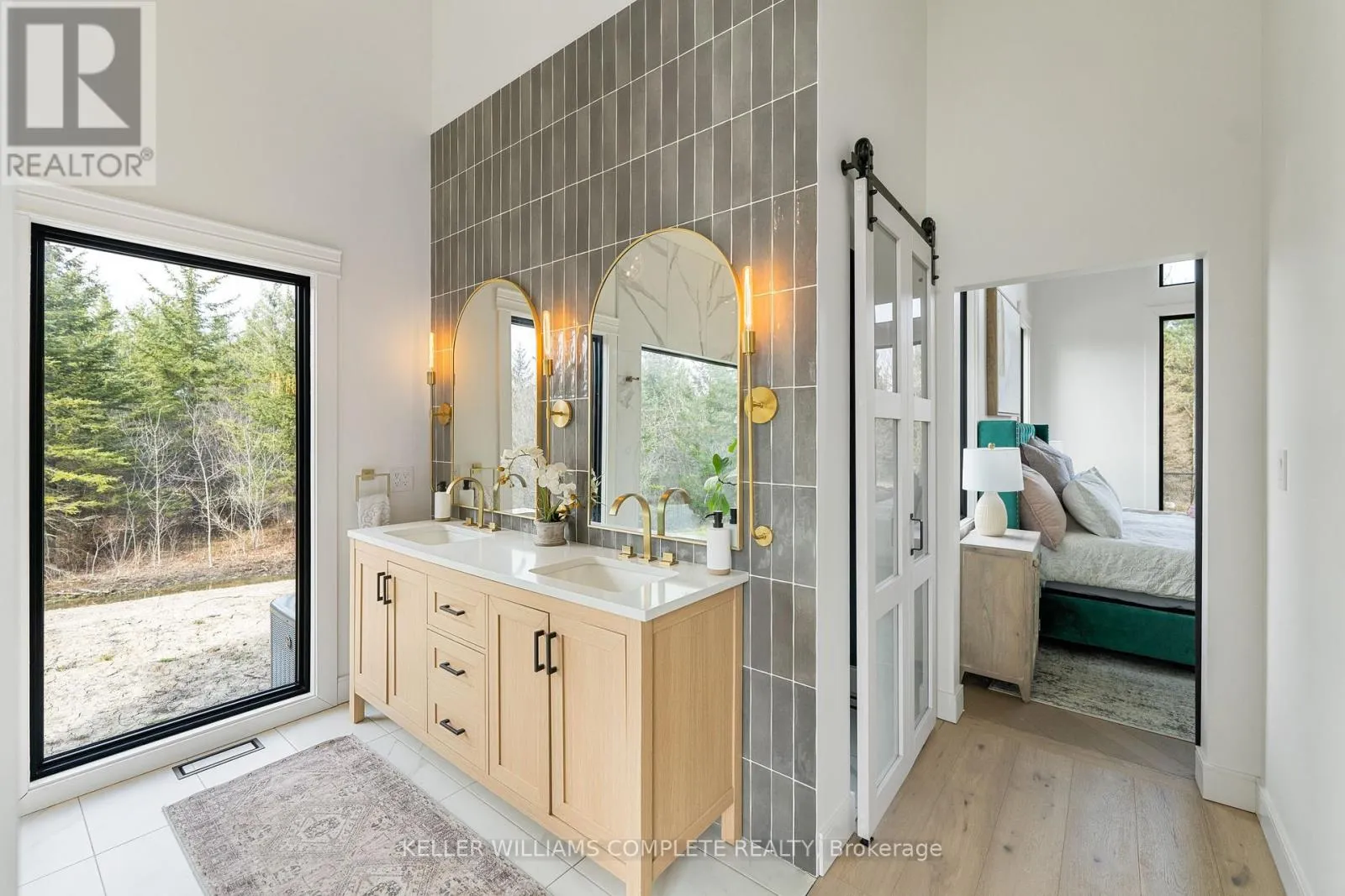 Cross Streets: Forks Rd. East. ** Directions: Forks Rd to White Rd. Experience unmatched luxury and craftsmanship in this breathtaking custom-built bungaloft, completed in 2024 and set on nearly six private, picturesque acres. From the moment you step inside, the soaring cathedral ceilings, sun-drenched interiors, and dramatic black-trimmed windows create a sense of grandeur and sophistication. Every detail of this home has been carefully curated for both beauty and function. The main living area showcases exquisite herringbone hardwood floors, a stunning built-in gas fireplace with custom shelving, and expansive sliding doors leading to a fully covered outdoor retreat the perfect spot for entertaining or unwinding in peace. The kitchen is a true showstopper: sleek black cabinetry paired with natural oak uppers, granite countertops, a gas cooktop, an oversized butlers pantry, and abundant storage for the serious chef. The elegant dining area features built-in cabinetry and shelving, offering a stylish yet intimate space for family meals or dinner parties. The luxurious primary suite is a private sanctuary on the main level, complete with its own gas fireplace, walkout to the covered deck, spa-style ensuite, and a walk-in closet with center island and built-in vanity. Also on the main floor are a designer powder room, a dream laundry room, and a custom mudroom with a built-in dog bath. A few steps up, discover a dramatic library with custom shelving, and in the loft, a fully equipped gym, additional bedroom, and 4-piece bath. For extended family or guests, a self-contained in-law suite offers the ultimate in privacy and comfort with its own entrance, living room, kitchen, bedroom, laundry, and 4-piece bath all perfectly integrated yet completely independent. With a triple-car garage, nearly six acres of tranquility, and flawless attention to detail throughout, this home is truly one-of-a-kind. If you've been searching for a property that exceeds every expectation, this stunning estate checks every box. (id:27476)