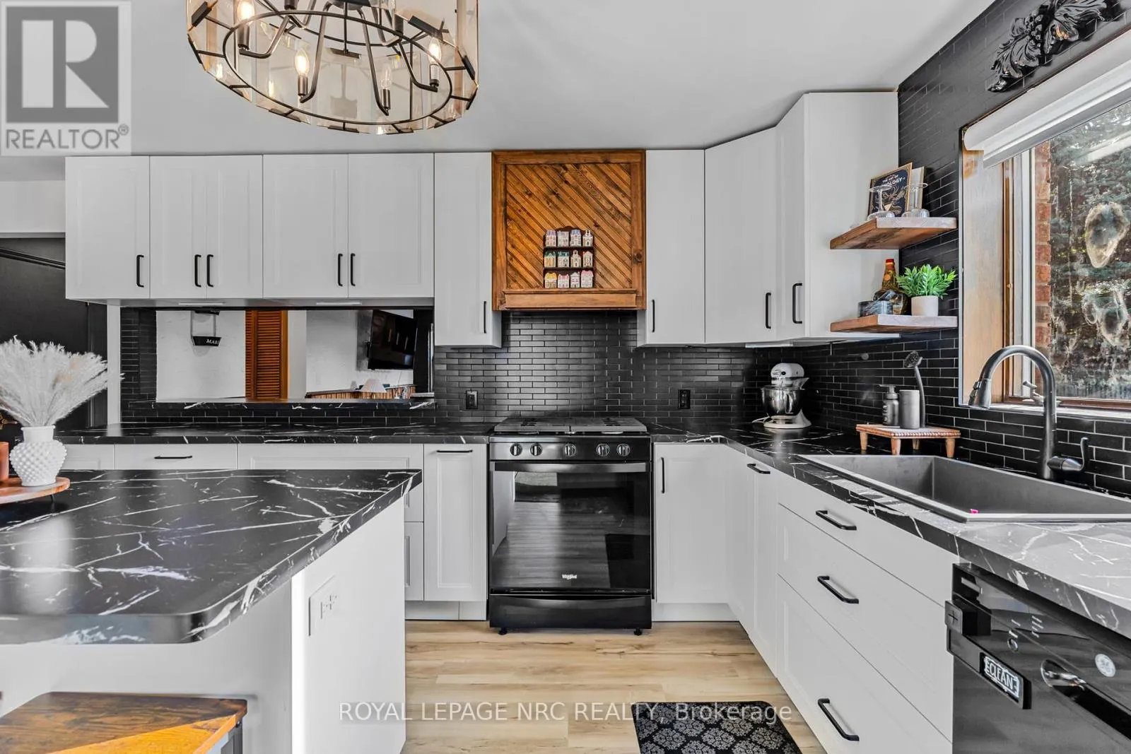 Cross Streets: Windsor Terrace & Hwy 58. ** Directions: Turn onto Windsor, from Hwy 58. Then left on Oxford Blvd. Looking for the charm of country living with the convenience of the city? This stunning custom-built home is tucked away on a quiet dead-end street, in the highly sought-after neighbourhood of Hawthorne Heights. Situated on the outskirts of Port Colborne, giving it a country feel. From the moment you arrive, you'll be impressed by the inviting covered front porch, oversized driveway, and the extra-large lot with no rear neighbours. This house offers privacy and space rarely found in the city. Fully renovated and truly move-in ready, this home combines modern updates with rustic accents. One of the standout features is the incredible garage, spanning over 700 sq. ft. with a full walk-up attic. Whether you need room to store all your toys, extra space for projects, or a dream setup for working on cars. Step inside and be welcomed by a grand entrance foyer that sets the tone for the entire home. The custom kitchen is a true showstopper, offering ample counter and cabinet space, a spacious island, and an inviting dining area perfect for family gatherings or entertaining guests. The living room provides a cozy retreat with its gas fireplace. On the next level, you'll find a bright and open family room along with an office space, which could easily be used as a formal dining room. Upstairs features three large bedrooms and a full 4-piece bath. The primary suite is complete with a walk-in closet featuring a 2-piece ensuite bathroom. Each bedroom boasts large windows, filling the rooms with natural light. The basement expands the living space with a second kitchen, a comfortable sitting area, a fruit cellar, and two large crawl spaces, ideal for storage, a playroom, or a hobby area. Outdoors, the massive backyard truly shines as a private oasis. Enjoy the covered patio, natural gas BBQ hook up, and extended concrete pad that offers endless possibilities for entertaining or relaxing. This home truly checks all the boxes and then some. (id:27476)