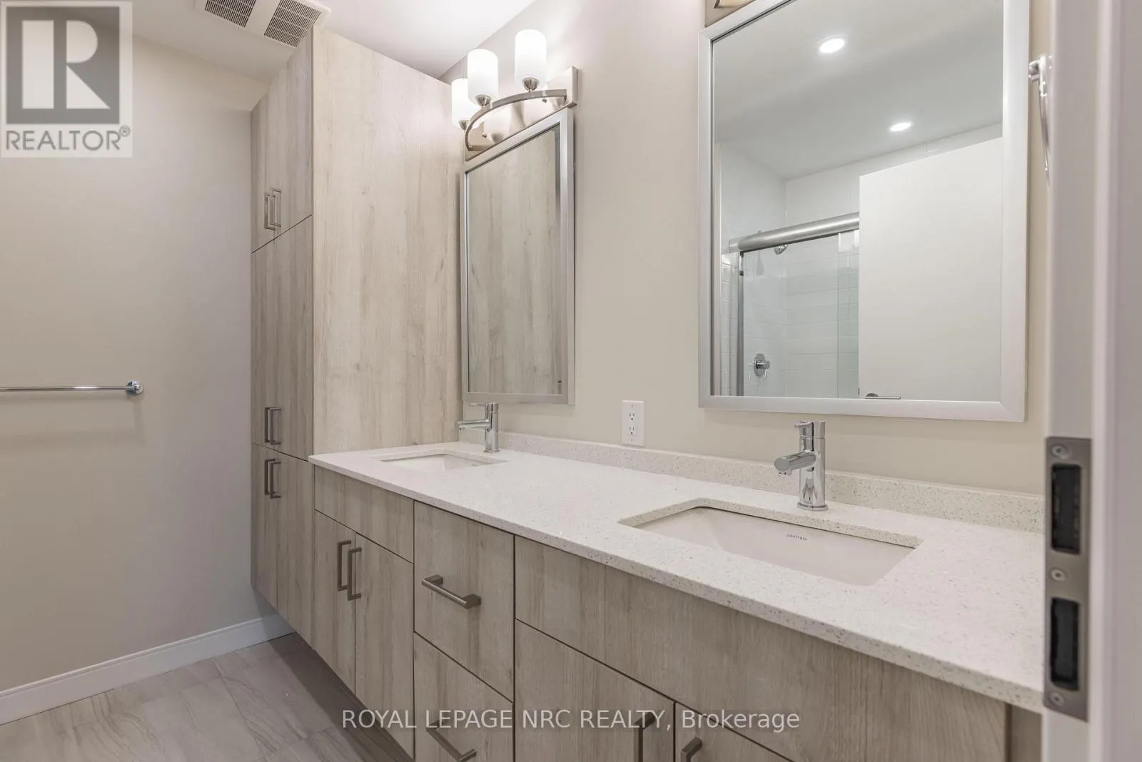 Cross Streets: Victoria. ** Directions: King St. left on Adelaide. Lovely 2-bedroom condo offering water views and a bright, modern layout. Enjoy the convenience of in-suite laundry and an upgraded kitchen featuring stainless steel appliances and a breakfast bar perfect for entertaining. The spacious primary bedroom includes a generous walk-through closet leading to a stylish ensuite with double sinks, a sleek glass shower, and beautiful cabinetry with ample storage. Quality upgraded flooring throughout adds a warm, contemporary touch. This unit also comes with two parking spaces, one equipped with EV charging. Located in the heart of Port Colborne, you're just steps from charming shops, great restaurants, and scenic views of ships passing through the canal. (id:27476)