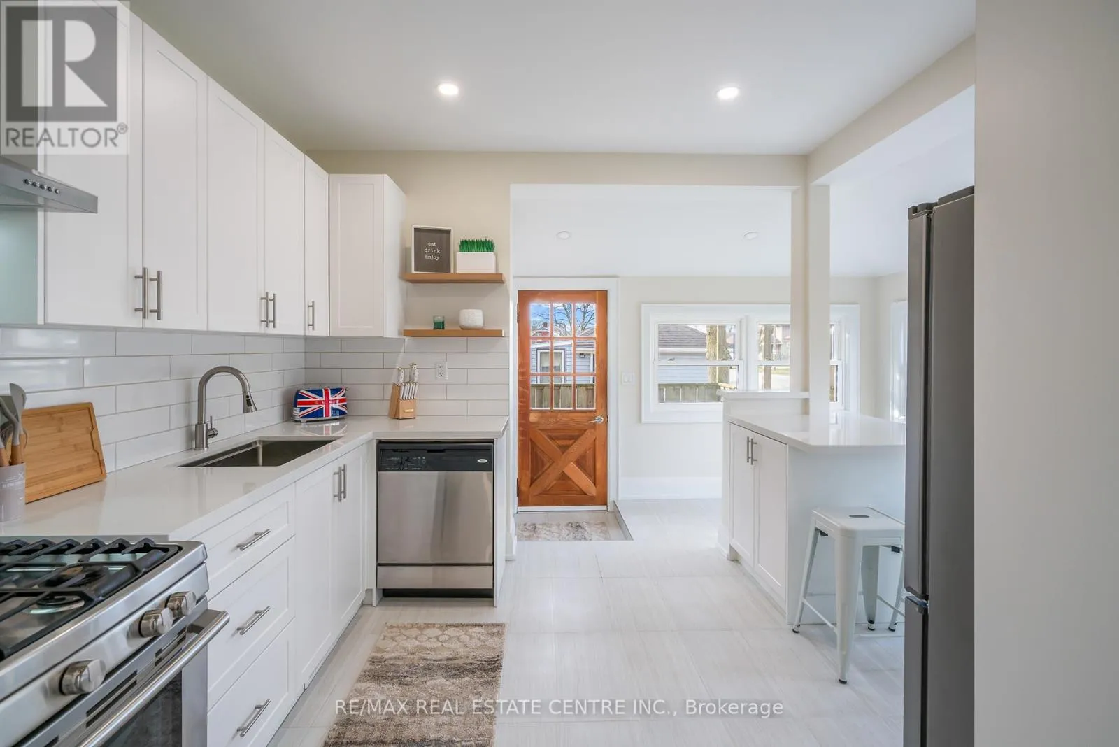 Cross Streets: Clarence/Forest Avenue. ** Directions: South on Steele, turn right on Clarence. Move right in and enjoy this renovated 2-bedroom semi offering modern style, comfort, and incredible value. Featuring a bright eat-in kitchen with island, separate dining room, updated full bath (with shower) plus convenient half bath, and a seamless indoor-outdoor flow to your semi-covered deck perfect for dining al fresco or relaxing outdoors. You'll love the private 3-car parking, garage (1 parking space) with attached workshop/man cave/storage space, and the unbeatable location just blocks from the waterfront, close to downtown, and in a great school district. Ideal for first-time buyers or those looking to downsize without compromise, this home is move-in ready nothing to do but unpack and start living your best life! (id:27476)