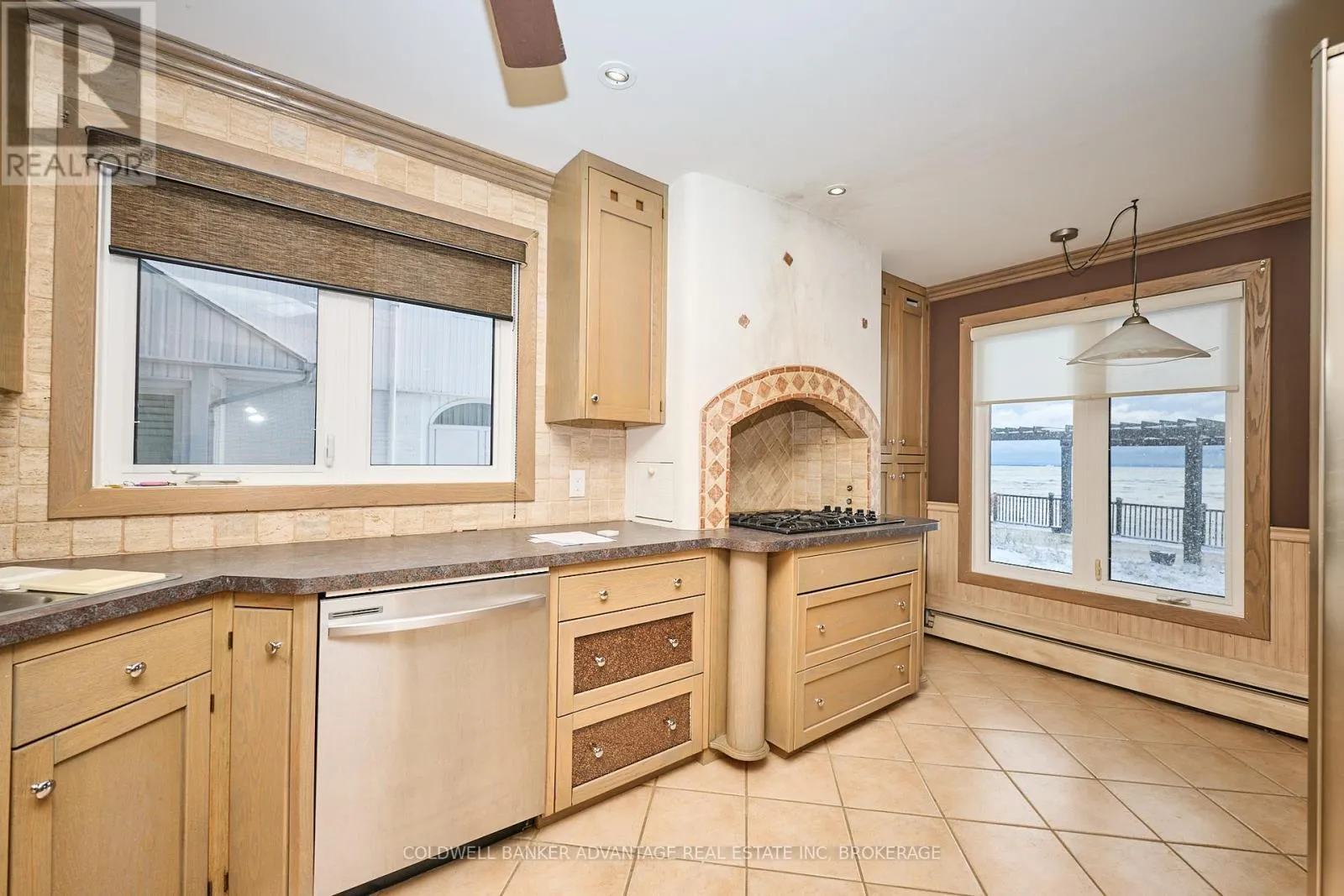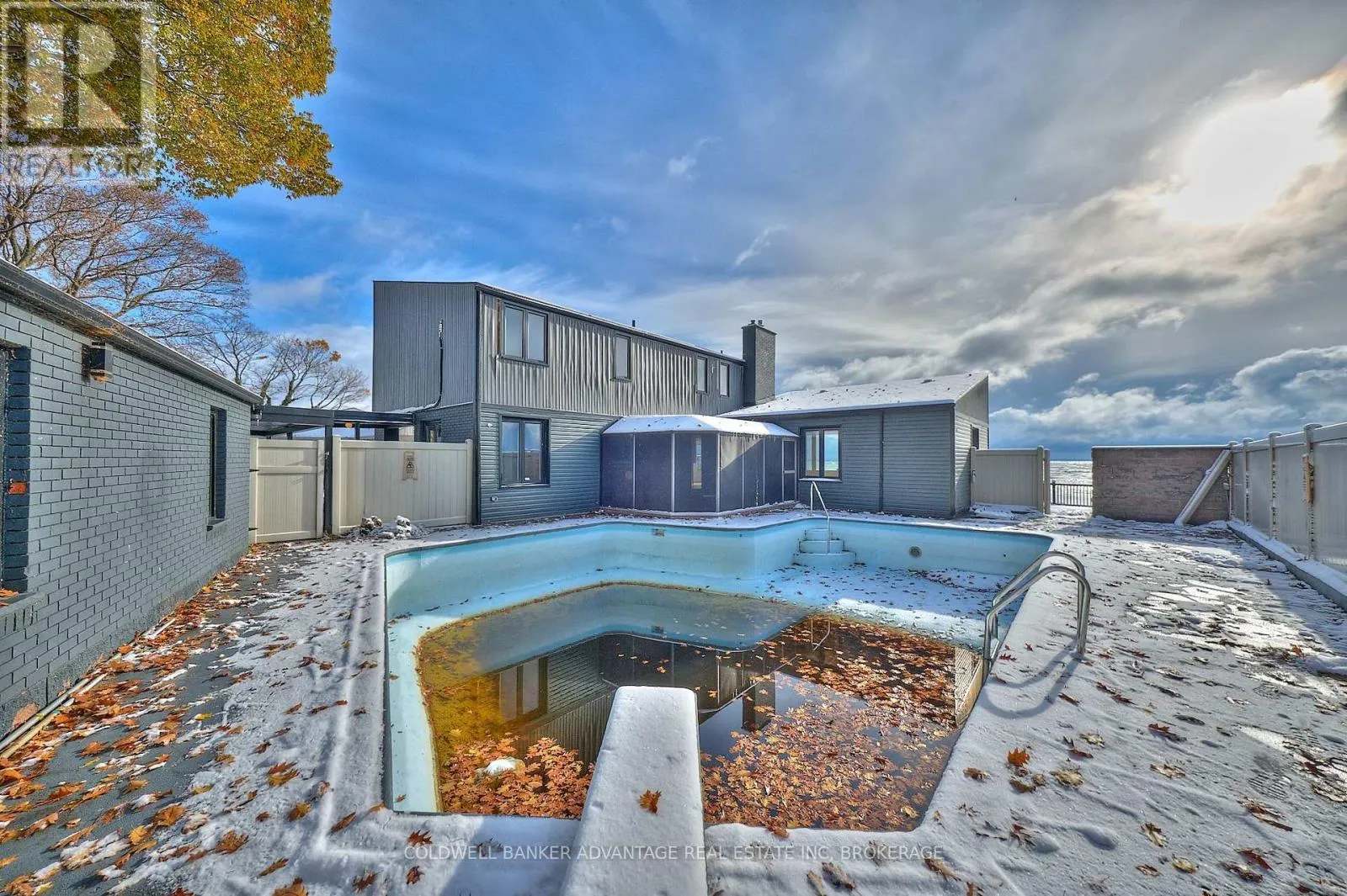 Cross Streets: Oakridge Cres. ** Directions: Lakeshore to Oakridge Cres. Enjoy sweeping views of Port Colborne's lighthouse and Sugarloaf Marina from this lakefront home. This 2-storey property features 4 bedrooms, 3.5 baths, and nautical design throughout.The main level offers a living room with gas fireplace and vaulted wood ceiling, open-concept dining, and a luxury kitchen. Upstairs, find 4 bedrooms including a primary suite with ensuite bath and private balcony overlooking the lake.The finished basement includes a family room with brick fireplace, games room with black walnut bar, sauna, walk-in shower, and storage.Outside, relax in the inground pool, hot tub with retractable cabana roof, and screened-in area-all nestled between the 2.5-car garage and home on a private lot. NOTE: - seller does warrant or have knowledge of any all systems and chattels - give no guarantee to working status including but limited to the pool, sauna, hot tub and all other fixtures. (id:27476)