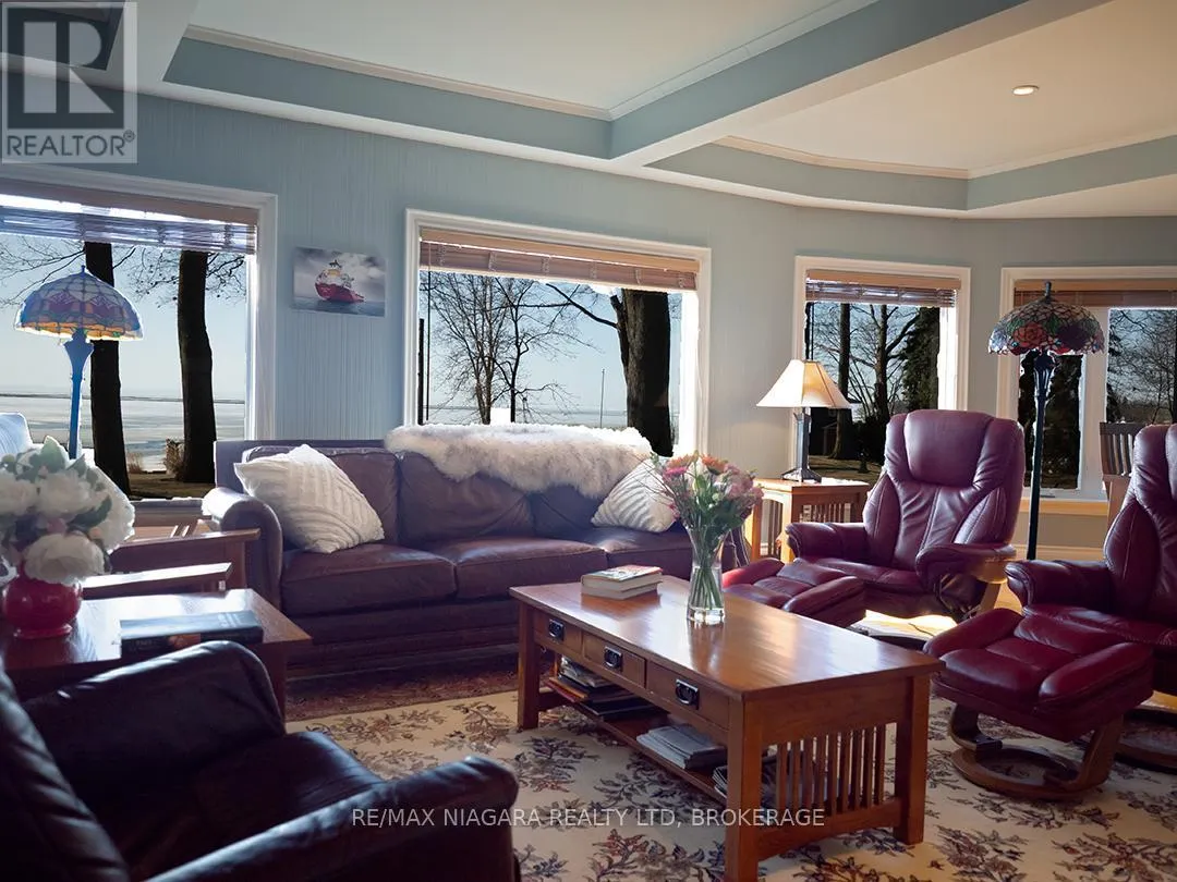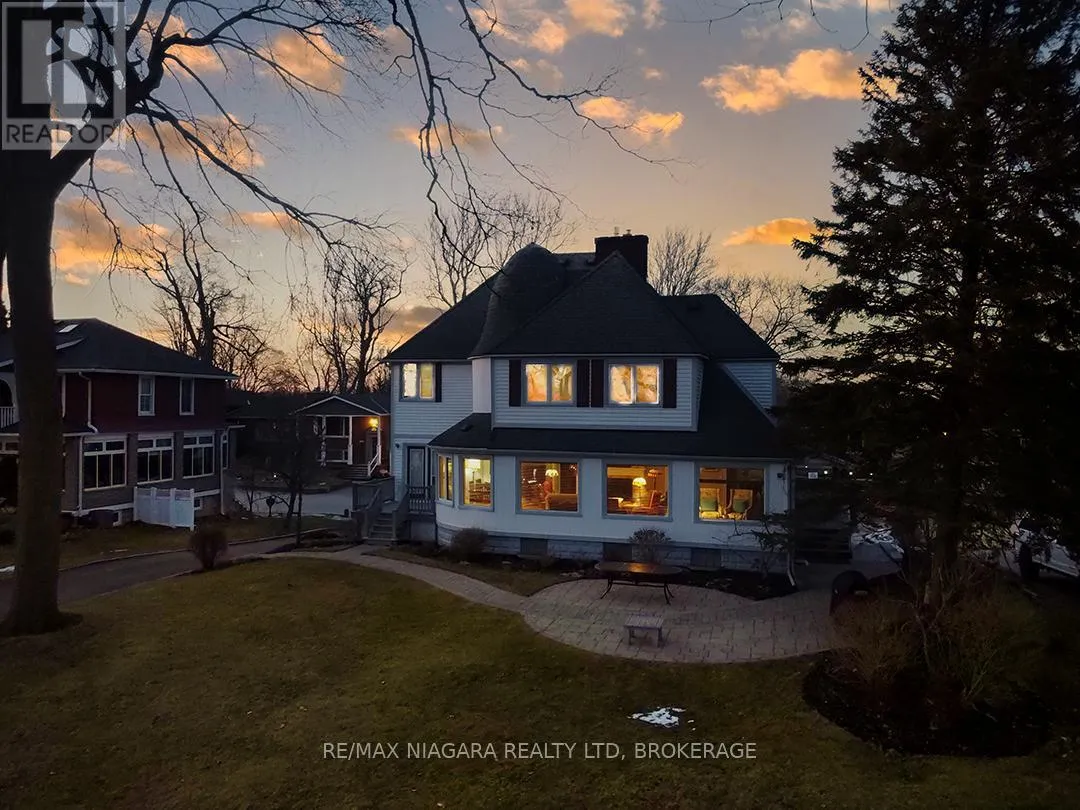 Cross Streets: Btwn Sugarloaf and Lakeshore Rd W. ** Directions: off Sugarloaf Street or Lakeshore Road. Lakefront estate living on Port Colborne's historic and highly sought-after Tennessee Avenue. This century home has been carefully preserved and smartly updated, set on a remarkable 500' deep lot that extends straight into Gravelly Bay on Lake Erie.With over 3,300 sq. ft., 4 bedrooms, and 2.5 baths, the home carries a strong architectural presence. The turret is a standout-both striking and a little storybook-creating a curved alcove in the living room. This signature space showcases wall-to-wall lakefront windows, a gas fireplace, and room for a grand piano.The main floor includes a formal dining room with garden doors leading to a lakeside deck, a bright kitchen with white cabinetry and built-ins, an adjoining breakfast nook, and a library finished with board-and-batten accents and a quiet reading spot.The primary suite spans the rear of the home, offering wide lake views, a gas fireplace, a private spa-style ensuite with clawfoot tub, and a step-in closet. Three additional large bedrooms with generous closets and a laundry closet complete the second level.Original wood floors, a classic oak staircase, and a wide centre hall anchor the home with timeless craftsmanship.Outside, the property opens into a full waterfront setting: mature trees, tiered gardens, stone patios overlooking the lake, and a shoreline retreat with a double-size boathouse, beach area, and protected waters ideal for kayaks and paddle boards. The driveway extends all the way down to the water.Additional features include a full unfinished basement, a double garage, a dual HVAC system providing separate climate control for each level, city services, and a whole-home generator.A complete lakefront lifestyle-indoors and out. (id:27476)