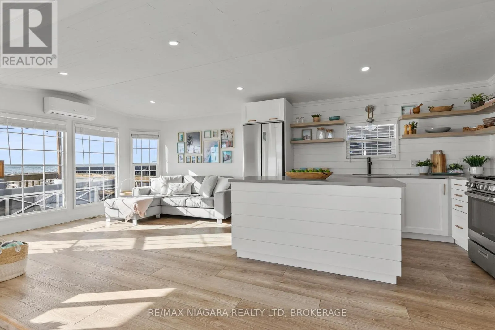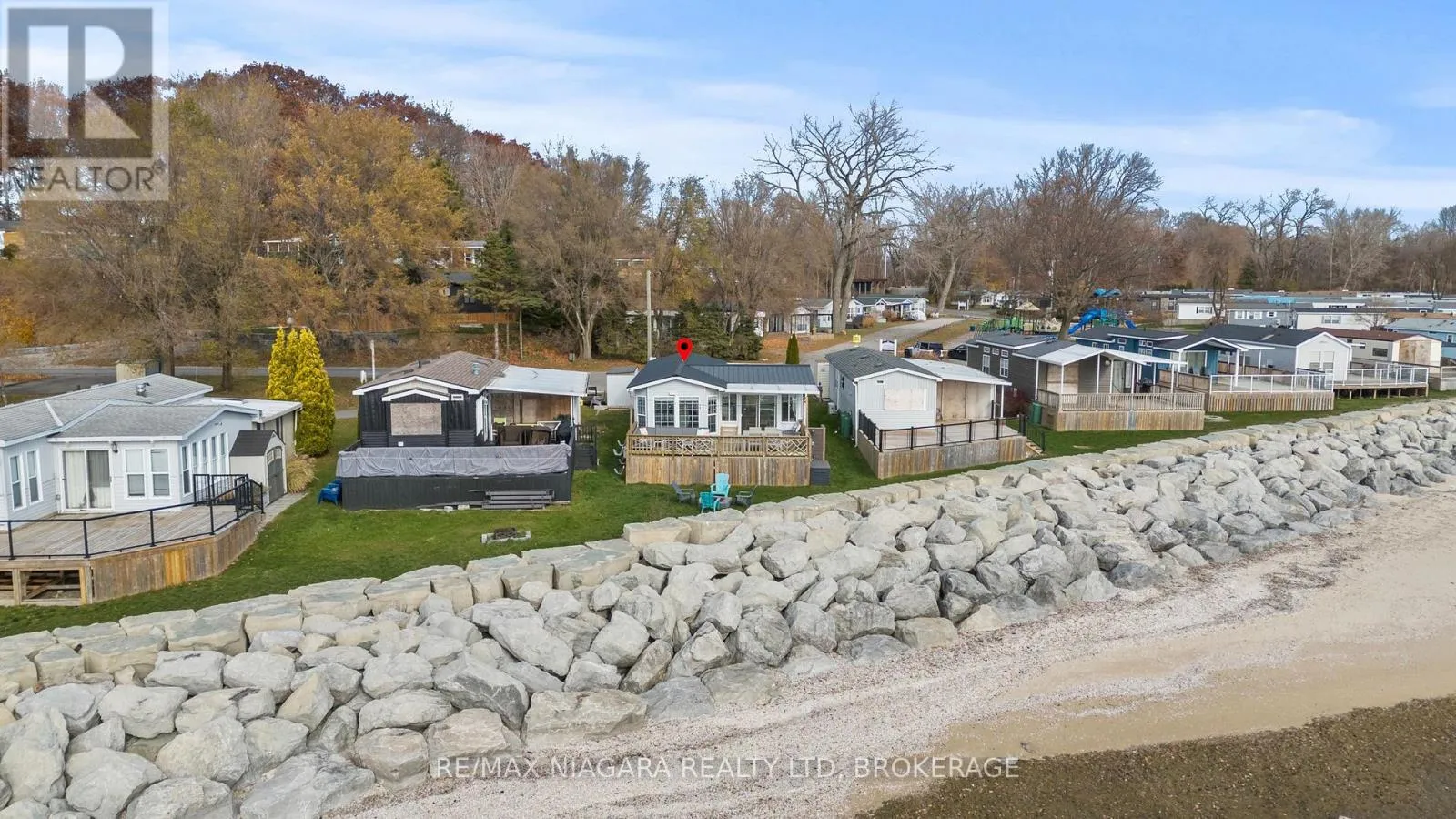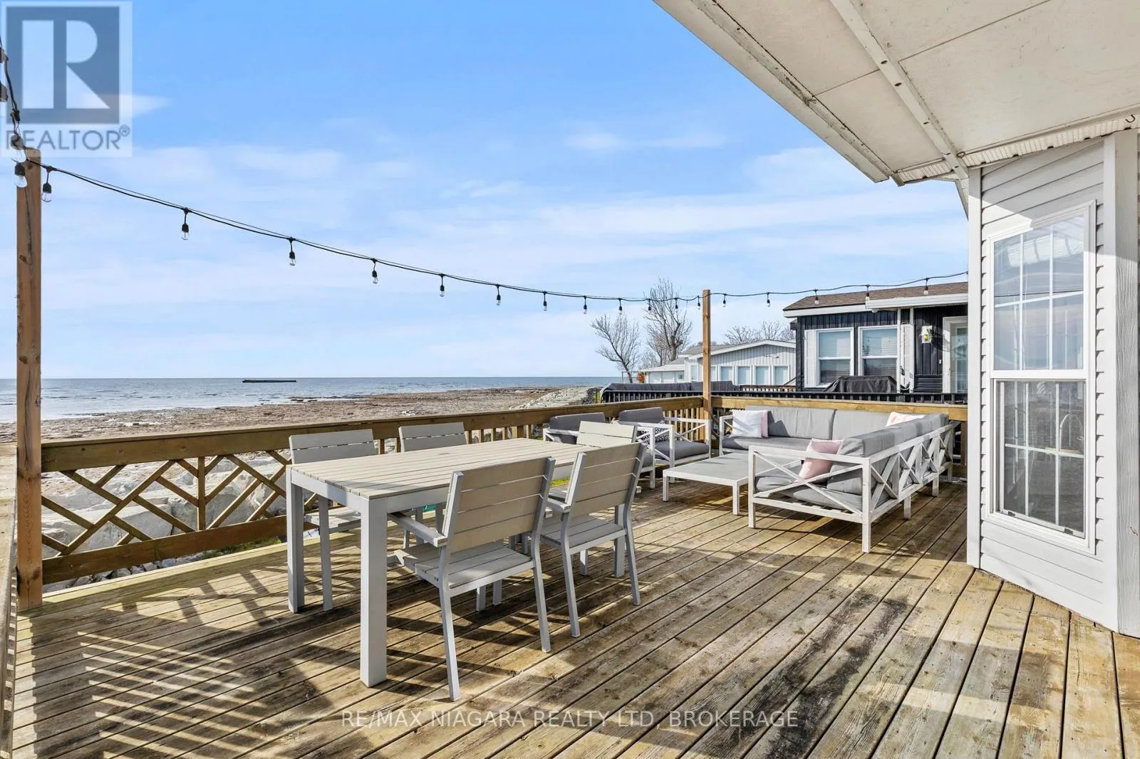 Cross Streets: Highway 3. ** Directions: HWY 3 - EMIPRE RD. Welcome to 6 Water's Edge! This beautifully renovated lakefront cottage is truly move-in ready and perfect for anyone looking to enjoy effortless waterfront living. AMAZING INCOME POTENTIAL OF $3000+ PER WEEK! Offering 2 bedrooms, a fully updated bathroom, and a bright, open-concept kitchen/living/dining area, it's the kind of place where the whole family will love spending time together. The kitchen features an island, stainless-steel appliances, a modern hood fan, and a sleek black sink and faucet. The dining area-complete with a bar fridge-lets you enjoy meals al fresco by the lake or inside in the comfort of a bright, airy space. The living room is finished with stylish shiplap and a floating wood mantle for a relaxed, modern cottage vibe.After a sun-soaked day on the beautiful beach just steps away, unwind under the stars by the stone-paver lakeside fire pit, or take in the expansive water views from the extended back deck. The large covered front deck sets the tone the moment you arrive-welcoming, comfortable, and built for making memories.Located just 90 minutes from Toronto and 20 minutes from Niagara Falls, Sherkston Shores spans 560 acres of stunning grounds with 4 km of sandy beachfront, giving you endless opportunities to explore, relax, and enjoy the outdoors.With features like a furnished interior, mini-split heating/cooling system, open floor plan, walk-in shower, washer/dryer hookups, kitchen island, and of course the premium waterfront site, resort life at The Shores is truly calling. (id:27476)