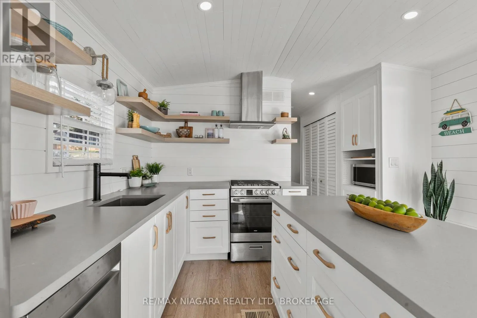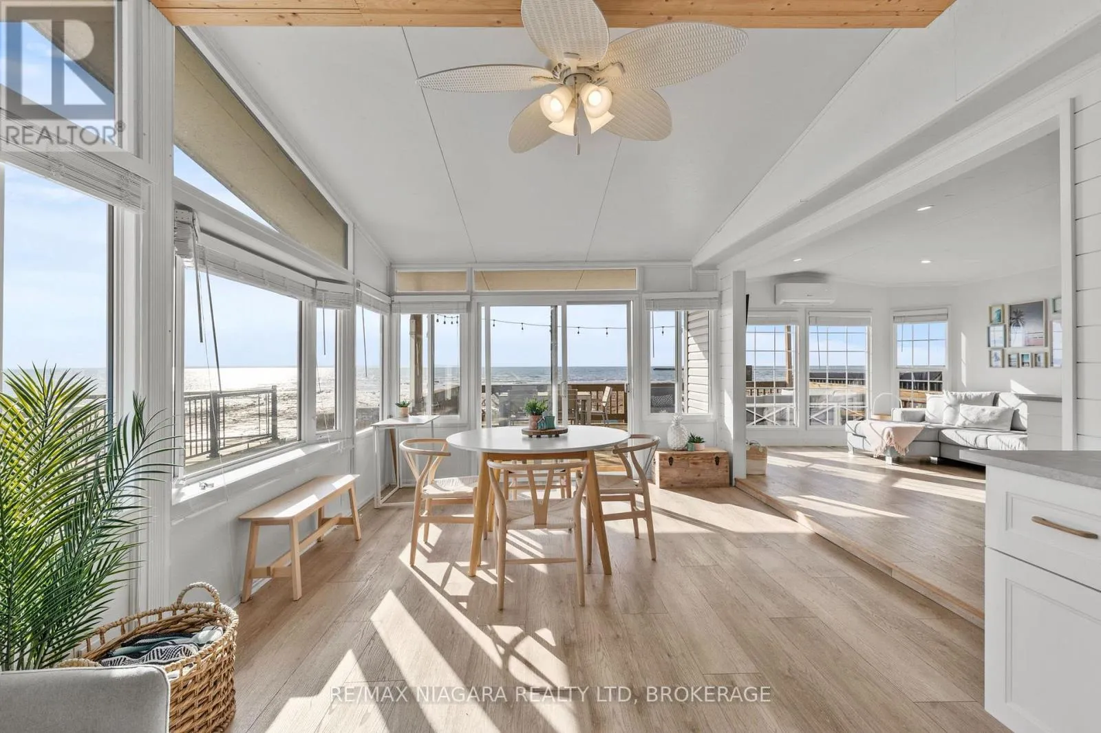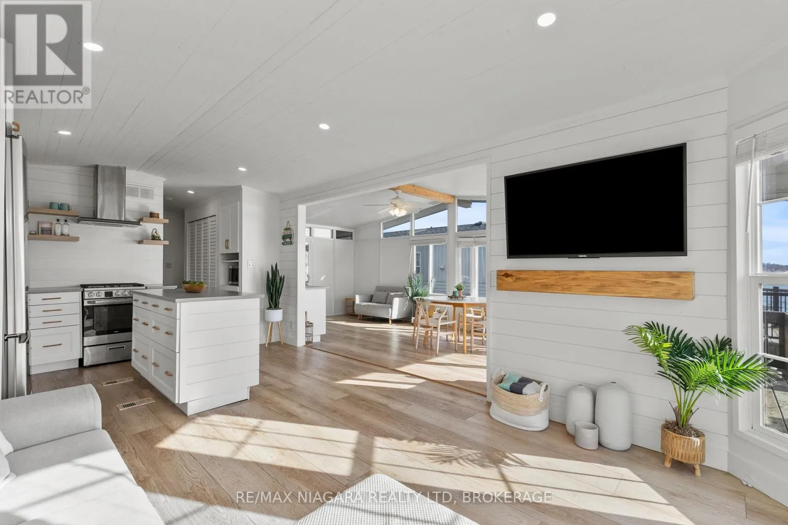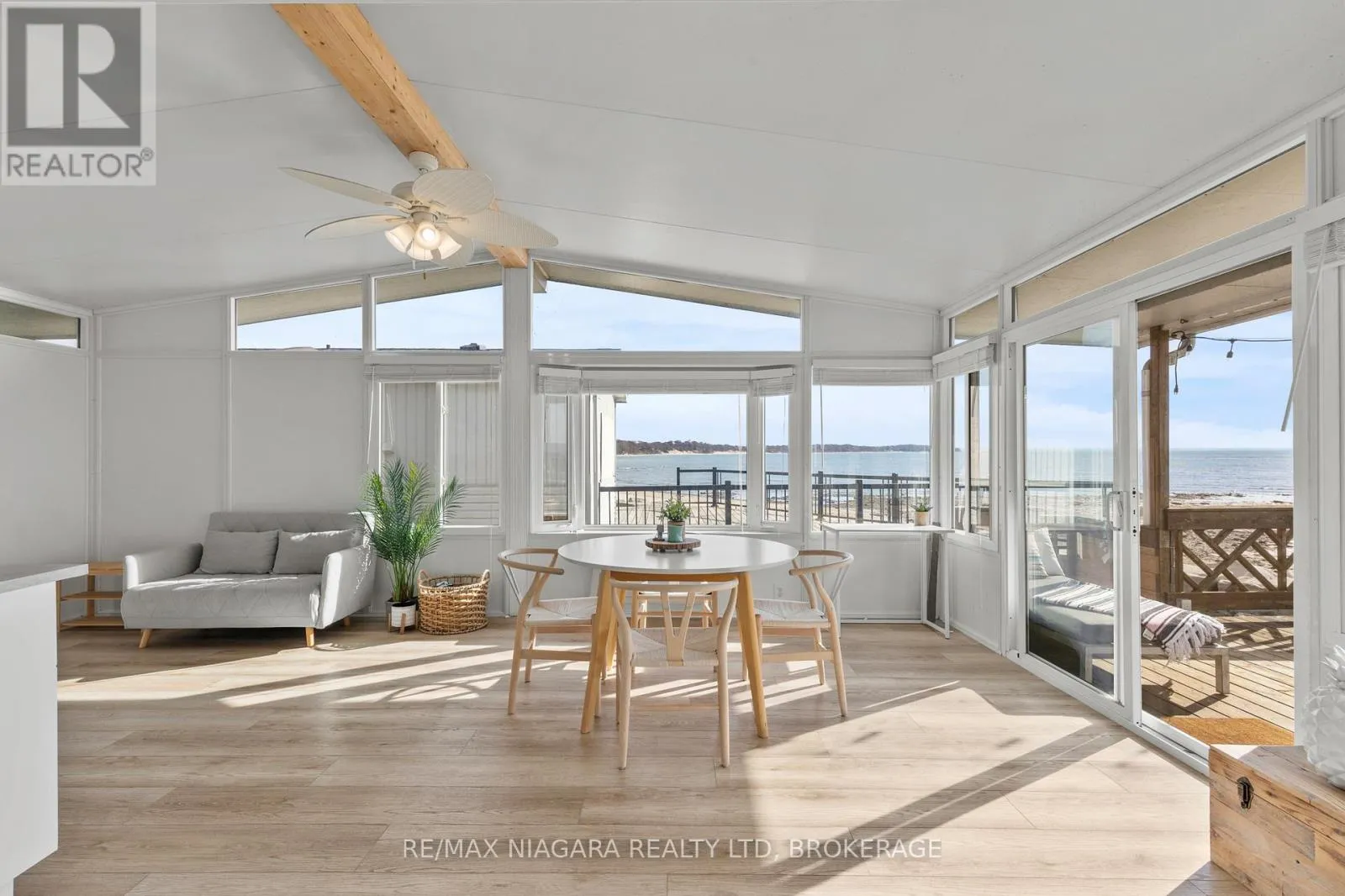 Cross Streets: Highway 3. ** Directions: HWY 3 - EMIPRE RD. Welcome to 6 Water's Edge! This beautifully renovated lakefront cottage is truly move-in ready and perfect for anyone looking to enjoy effortless waterfront living. AMAZING INCOME POTENTIAL OF $3000+ PER WEEK! Offering 2 bedrooms, a fully updated bathroom, and a bright, open-concept kitchen/living/dining area, it's the kind of place where the whole family will love spending time together. The kitchen features an island, stainless-steel appliances, a modern hood fan, and a sleek black sink and faucet. The dining area-complete with a bar fridge-lets you enjoy meals al fresco by the lake or inside in the comfort of a bright, airy space. The living room is finished with stylish shiplap and a floating wood mantle for a relaxed, modern cottage vibe.After a sun-soaked day on the beautiful beach just steps away, unwind under the stars by the stone-paver lakeside fire pit, or take in the expansive water views from the extended back deck. The large covered front deck sets the tone the moment you arrive-welcoming, comfortable, and built for making memories.Located just 90 minutes from Toronto and 20 minutes from Niagara Falls, Sherkston Shores spans 560 acres of stunning grounds with 4 km of sandy beachfront, giving you endless opportunities to explore, relax, and enjoy the outdoors.With features like a furnished interior, mini-split heating/cooling system, open floor plan, walk-in shower, washer/dryer hookups, kitchen island, and of course the premium waterfront site, resort life at The Shores is truly calling. (id:27476)