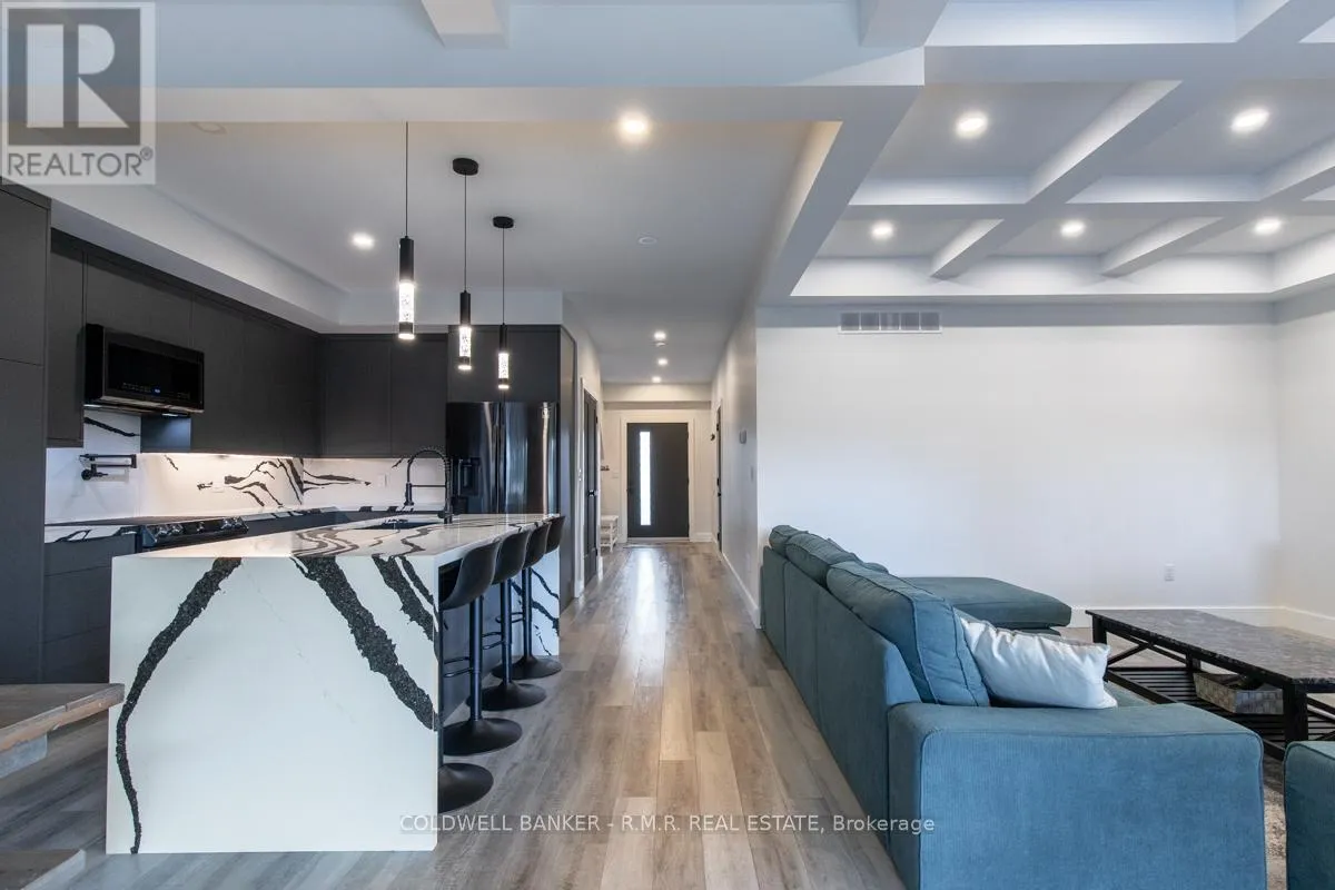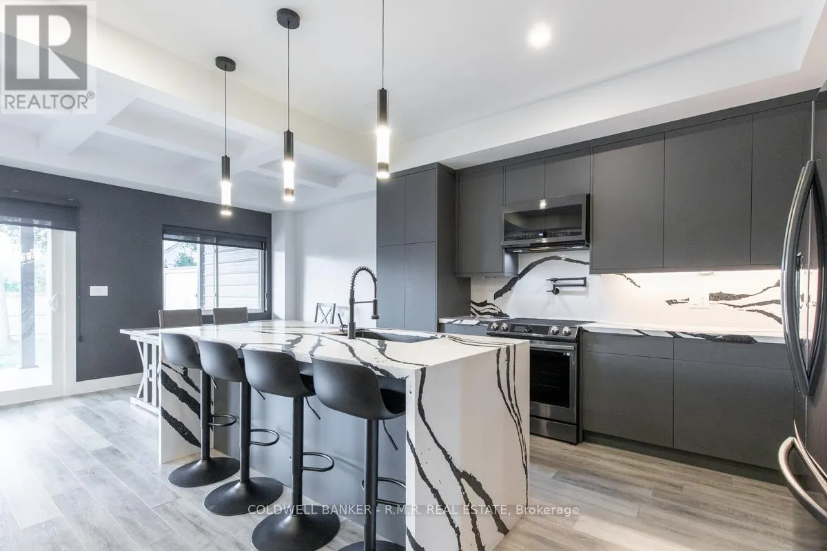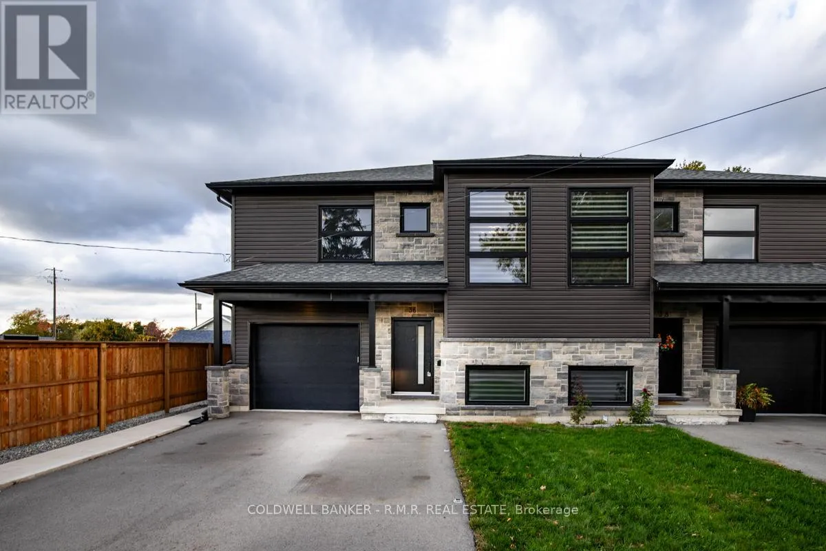 Main St E & Page St. Welcome to 36 Page St, a nearly-new, meticulously designed home sitting on a rare, oversized lot with a 6-vehicle driveway. Boasting over 2,000 SqFt of sophisticated living space, this property is a masterclass in design. From the moment you enter the spacious foyer, the attention to detail is evident. The heart of the home is an elegant chefs kitchen featuring a massive quartz island, premium black stainless steel appliances, and soft-close cabinetry. The open-concept living and dining areas are defined by soaring coffered ceilings and chic pot lighting, flowing seamlessly through sliding doors to a backyard that is an entertainer's dream, featuring a massive covered deck perfect for rain-or-shine gatherings. Retreat to the second floor, where the primary suite serves as a true sanctuary, featuring a sprawling walk-in closet and a spa-like ensuite with a glass stand-up shower and a freestanding soaker tub; plus a second-floor laundry, 2 additional large bedrooms a full guest bathroom. Located in a quiet neighbourhood close to everything you need (groceries, transit, and dining) and just steps from the canal, you can enjoy the peaceful sight of passing ships from your own private oasis. You won't want to miss out seeing this property! (id:27476)