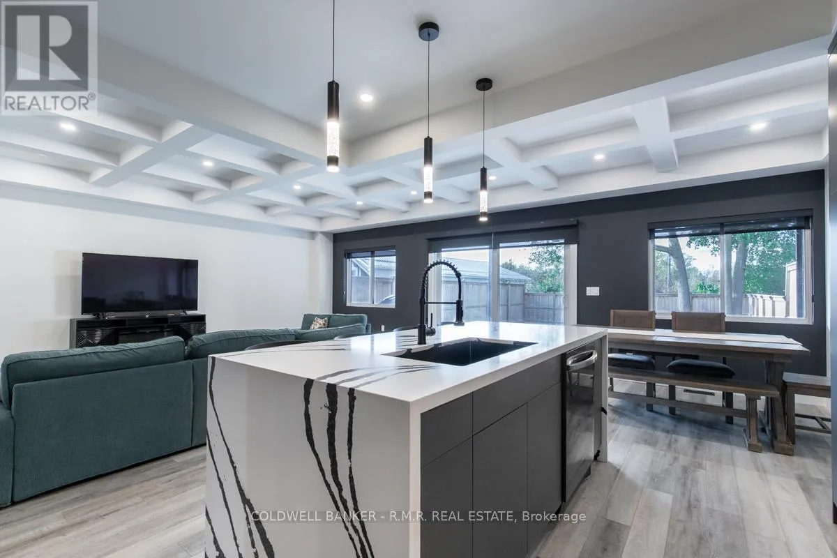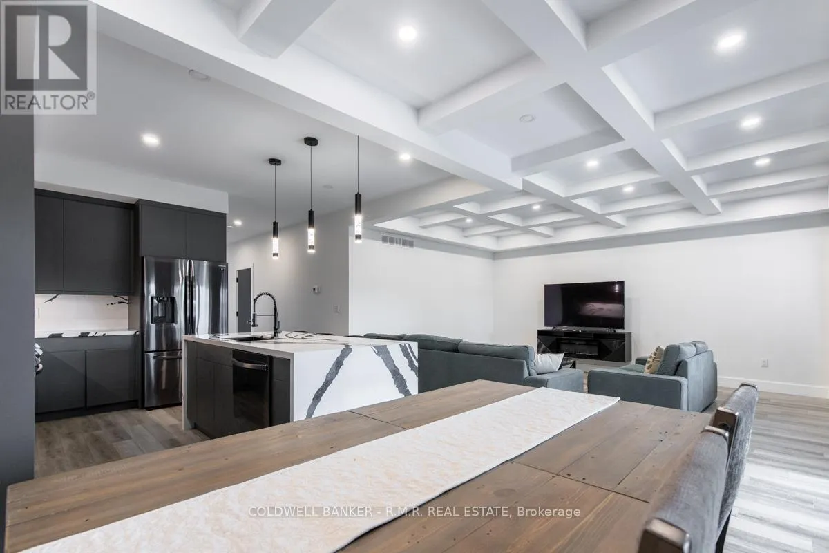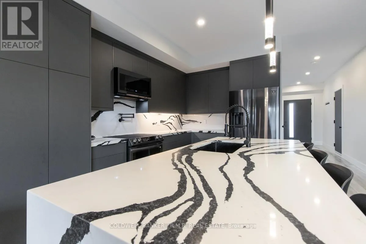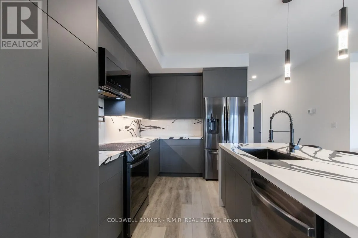 Main St E & Page St. Welcome to 36 Page St, a nearly-new, meticulously designed home sitting on a rare, oversized lot with a 6-vehicle driveway. Boasting over 2,000 SqFt of sophisticated living space, this property is a masterclass in design. From the moment you enter the spacious foyer, the attention to detail is evident. The heart of the home is an elegant chefs kitchen featuring a massive quartz island, premium black stainless steel appliances, and soft-close cabinetry. The open-concept living and dining areas are defined by soaring coffered ceilings and chic pot lighting, flowing seamlessly through sliding doors to a backyard that is an entertainer's dream, featuring a massive covered deck perfect for rain-or-shine gatherings. Retreat to the second floor, where the primary suite serves as a true sanctuary, featuring a sprawling walk-in closet and a spa-like ensuite with a glass stand-up shower and a freestanding soaker tub; plus a second-floor laundry, 2 additional large bedrooms a full guest bathroom. Located in a quiet neighbourhood close to everything you need (groceries, transit, and dining) and just steps from the canal, you can enjoy the peaceful sight of passing ships from your own private oasis. You won't want to miss out seeing this property! (id:27476)