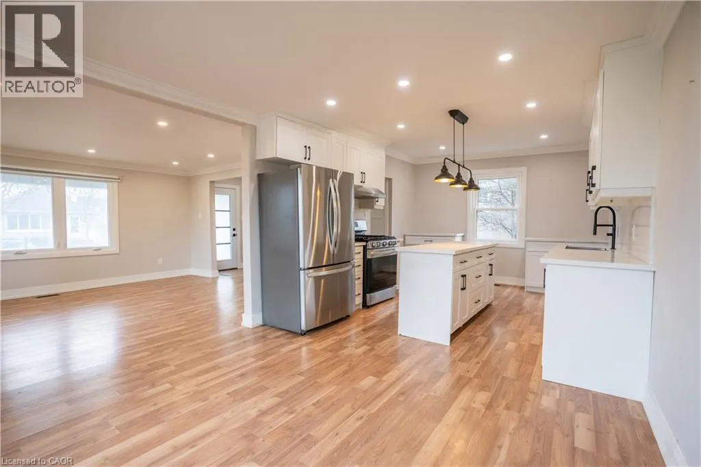 Main St W to Steele St Welcome to 793 Steele St. Featuring 4 bedrooms, 1.5 baths, and just over 1,200 sq ft of living space. This large corner lot boasts mature trees, a large covered front porch & a large fenced in backyard. Inside, enjoy an open-concept main floor with in ceiling pot lights, crown moulding, and brand-new flooring. The sleek kitchen comes with new stainless-steel appliances including Gas stove, fridge and dishwasher, quartz counters and island with plenty of counter and cabinetry space. A mudroom with new washer/dryer leads to a massive backyardâwith a new fence & access to a detached single car garage and single car driveway for 2 parking spots & plenty of street parking available. The upper floor features 4 bedrooms & a modernly updated 4-piece washroom. The home has an updated 100-amp panel, central AC, central heat controlled by a Nest thermostat. Close to schools and amenities, this move-in-ready home is available starting March 1st! Tenants are responsible for: Utilities (Hydro, Gas, Water), HWT rental, Grass & Snow maintenance. (id:27476)