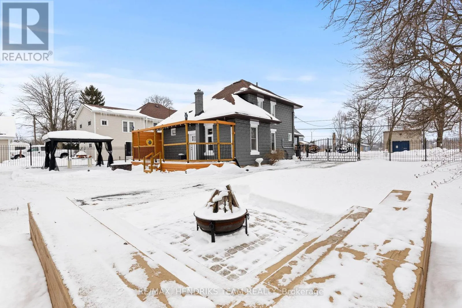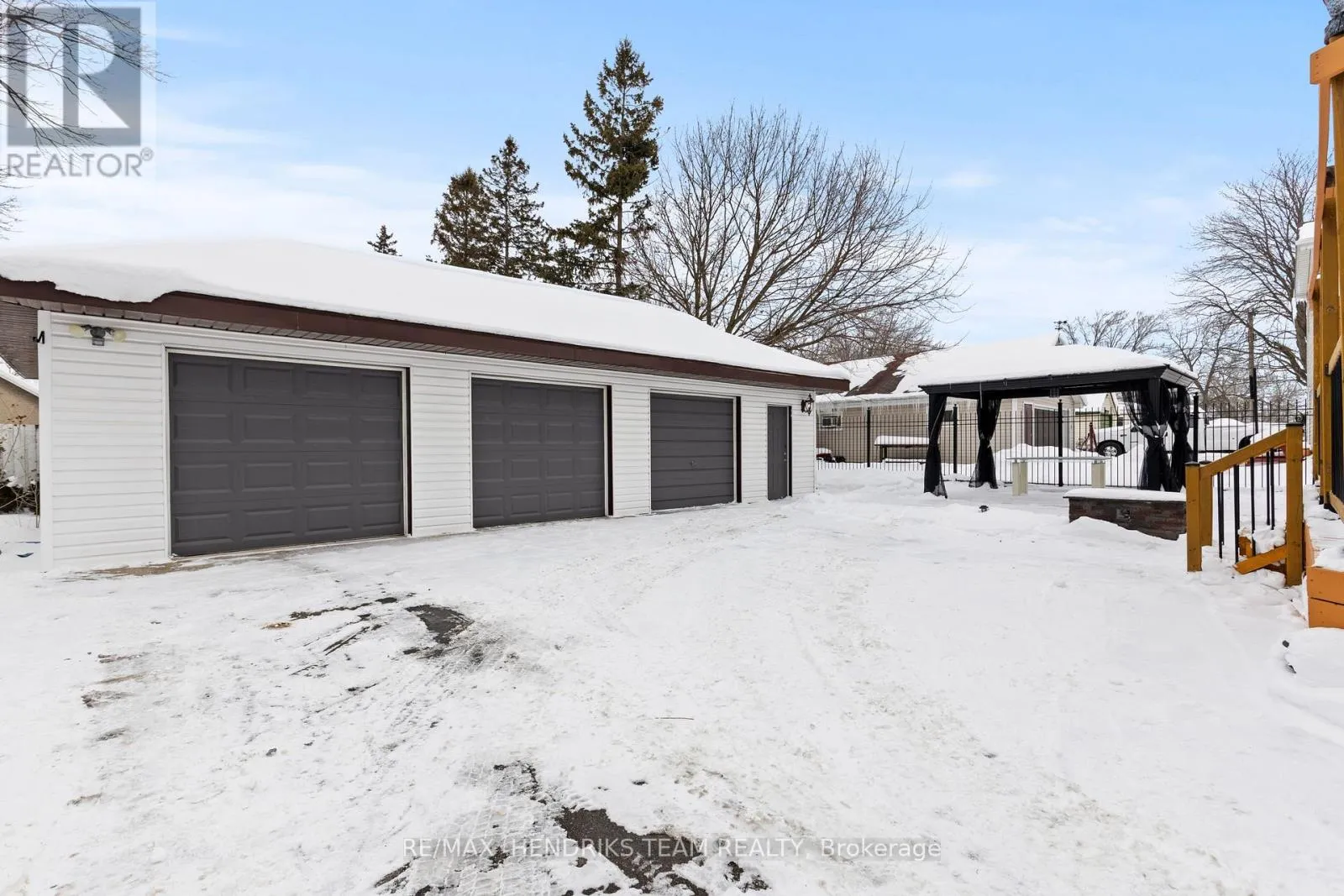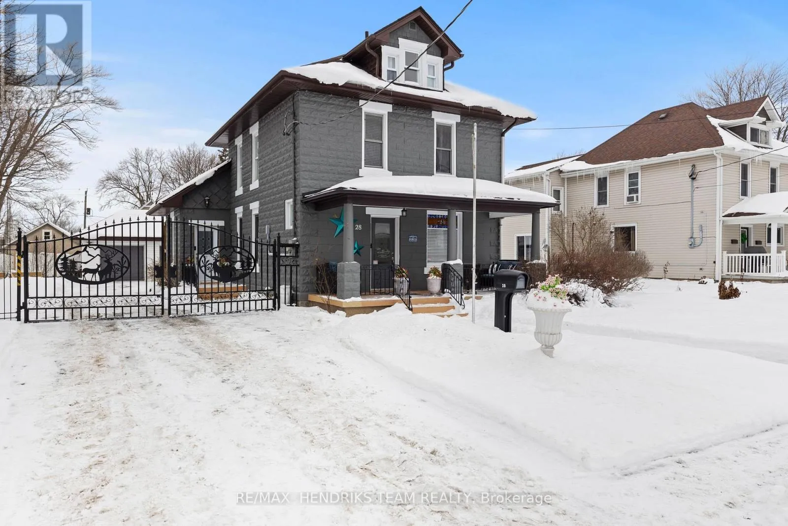 Cross Streets: MAIN ST W. ** Directions: MAIN ST W TO RAMEY AVE. Meticulously maintained and beautifully renovated 2.5 storey home in the heart of Port Colborne, across from the canal. Full of charm from the moment you arrive, this property features a covered front porch and striking wrought iron gates leading to a rare drive-through backyard with a triple car garage. This is a home that truly needs to be seen to be appreciated. Step inside to a spacious foyer that opens into an oversized dining room, perfect for gatherings of eight or more. The dining area flows into a bright and inviting living room filled with natural light. The kitchen is located at the rear of the home with direct access to the back deck. The kitchen is both stylish and functional with quartz countertops and stainless steel appliances. A rare main floor feature includes two bathrooms, one four piece bath and a convenient two piece bathroom combined with main floor laundry. The second level offers three generously sized bedrooms. The primary bedroom features a walk-in closet with ample storage. A three piece bathroom completes this level. One of the bedrooms provides walk-through access to the third storey bonus space that is currently used as a walk-in closet and dressing room but also offers flexibility as a home office, playroom or additional storage. One of the standout features of this property is the outdoor space. Situated on an oversized lot with full vehicle access to the rear, the triple car garage includes a separate finished living area, perfect for a workshop, man cave or hobby space. The landscaped yard with lush grass and pergola has been redone within the past few years. Walking distance to downtown Port Colborne, restaurants, shops and more. A truly unique home offering space, charm and versatility. (id:27476)