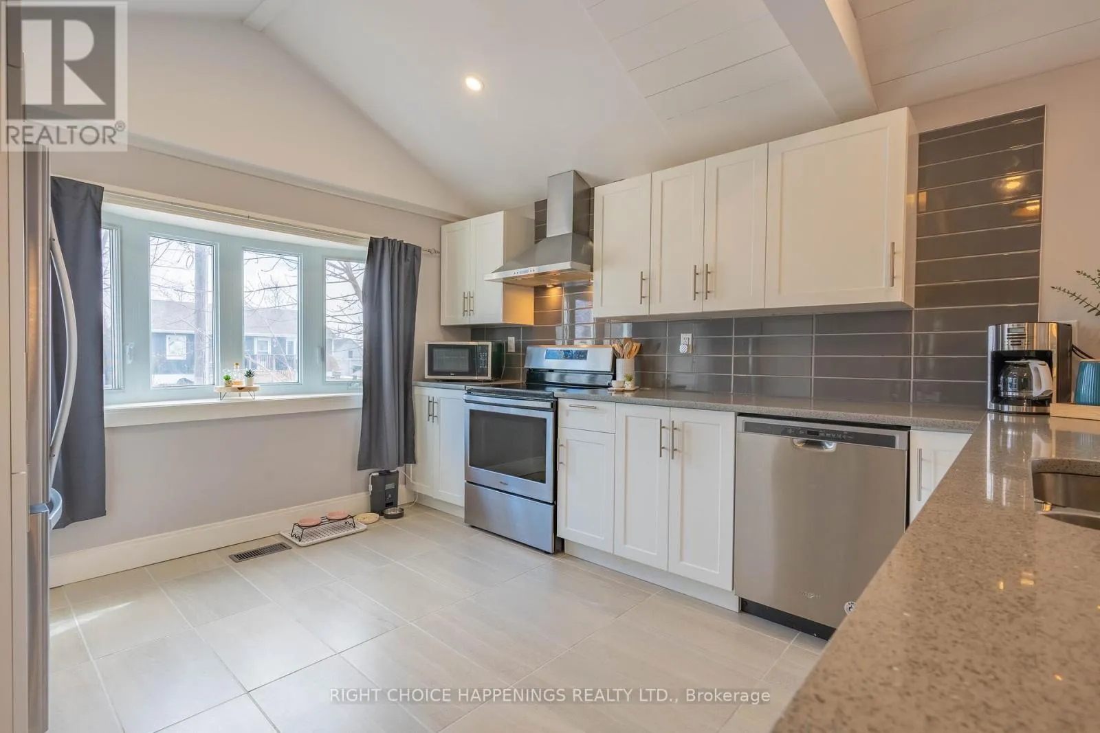 Cross Streets: Highway 140 and Main Street. ** Directions: Main St E to Wellington. Cozy, turn-key home ready for you to move right in. Ideally located for convenience while offering a low-maintenance lifestyle. The concrete driveway extends all the way to the rear yard, creating a great patio space for outdoor enjoyment. Inside, the living room features a fireplace with a wood mantel, vaulted ceilings and flows into a surprisingly spacious kitchen complete with quartz countertops and ample room for a dining table. The home offers two generously sized bedrooms and a perfectly placed main-floor laundry room for added convenience. The basement provides plenty of storage space. A full home generator is included, which is an excellent bonus and added peace of mind here in Port Colborne. (id:27476)