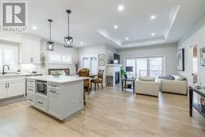 Cross Streets: Clarence St and Cement Rd. ** Directions: Near corner of Cement Rd and Clarence St in Westwood Estates. END UNIT FREEHOLD BUNGALOW TOWNHOME!! This modern & luxurious home is located in the desirable Westwood Estates just minutes from Lake Erie. Newly installed deck (2025), aggregate concrete driveway (2024) and california shutters (2024). Built by a reputable local Niagara builder, you will not be disappointed with the quality and high end finishes including engineered hardwood flooring, 9 foot ceilings & pot lighting. The unique upscale board and batten Hardie board siding and brick exterior is complimented with a welcoming extra wide front stairs and black aluminum railing. Entering the home you are greeted with a bright front foyer leading you to the open concept main floor. The kitchen features gorgeous cabinetry, quartz countertops, an island and stainless steel appliances. The living room boasts a tray ceiling, gas fireplace, and sliding doors with interior blinds to the backyard. Primary bedroom with tray ceiling, ensuite with double vanity, quartz counter, tile floors, walk in shower and spacious walk in closet. Second bedroom, 4 pc bath and laundry with custom sink and quartz counter conveniently located on the main floor. Put your personal touches to finish the basement already equipped with studded exterior walls, large windows and rough in for 4pc bath. Inside entry from garage, 200 amp panel and on-demand water system (owned). Don't miss out on this opportunity to own a freehold bungalow townhome in this prestigious neighbourhood!! *NOTE* Lot size irregular* (id:27476)