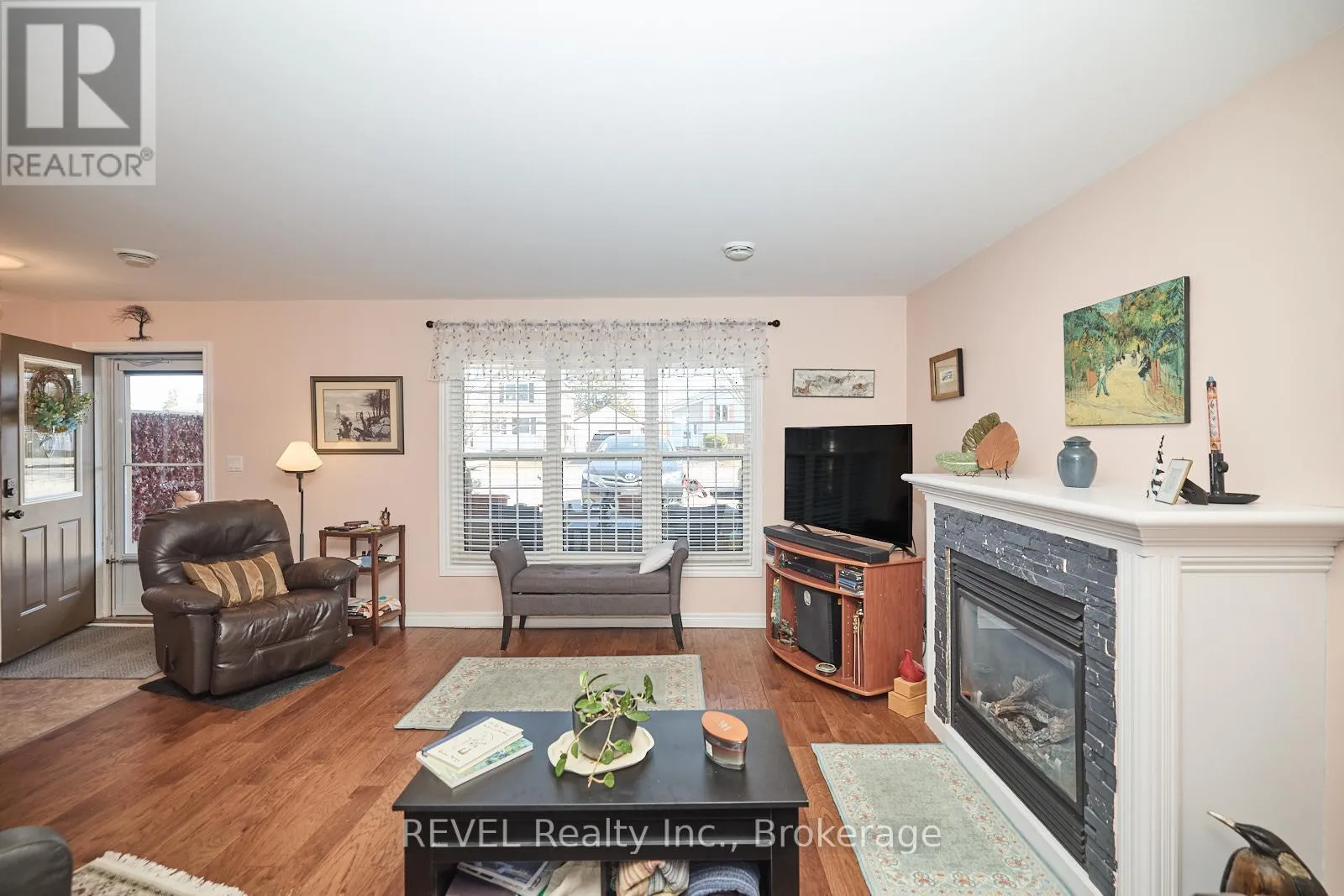 Cross Streets: Killaly. ** Directions: TURN ON KNOLL ST FROM KILLALY. This lovely end unit freehold townhouse is move in ready . With 2 bedrooms, gorgeous flooring throughout and a cozy gas fireplace in the living room, this spacious 1100 square foot bungalow would be a great place to call home. This home is on the ground floor, which makes it handicap accessible. The desirable open concept living space includes oak kitchen cabinets. The large sized bathroom has a bright walk in shower with a waterfall shower head, and a gorgeous granite countertop vanity. The utility room, that includes laundry, has lots of space for storage. The outdoor space is the definition of low maintenance! With the yard being what you see at the front of the property, no grass cutting! The great front porch to relax on, includes privacy fence, and shed. This home is perfect for first time home buyers, downsizers, also handicap accessible. A very maintenance free property. (id:27476)
