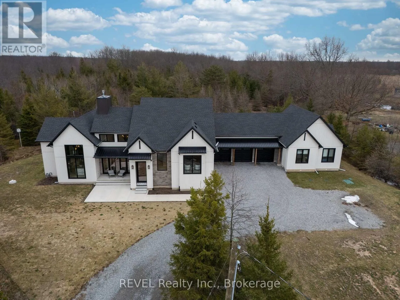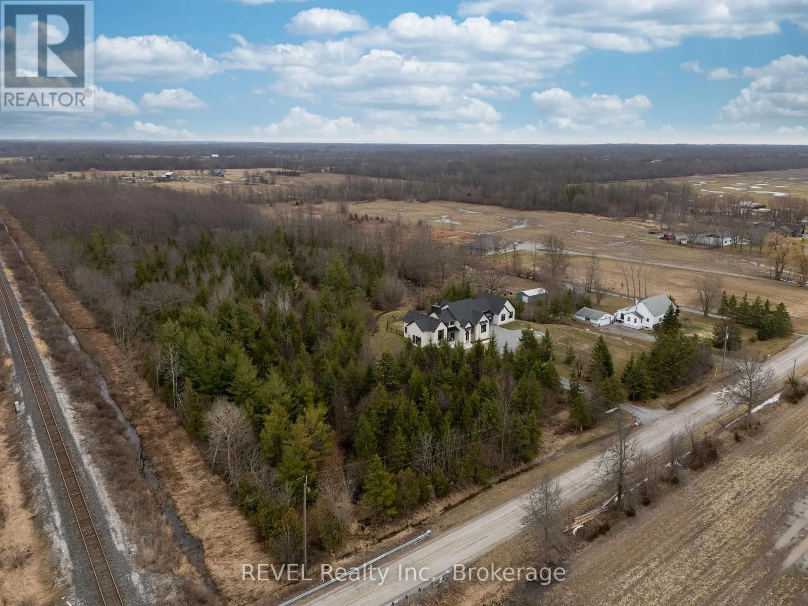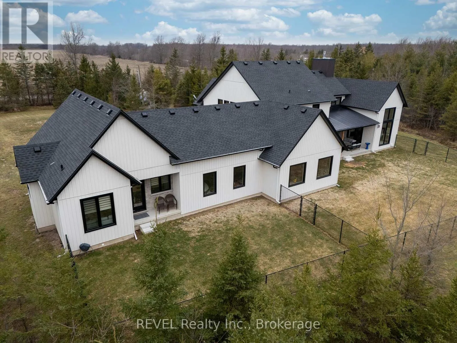 Cross Streets: Miller Road & Forks Road E. ** Directions: Miller Road to Forks Road E to White Road. Set on nearly six scenic acres, this newly built bungaloft (2024) offers an exceptional blend of thoughtful design, quality finishes, and peaceful surroundings. Bright, open-concept living spaces are highlighted by soaring ceilings, oversized windows, and a seamless flow ideal for both everyday living and entertaining. The main living area features rich hardwood flooring, a striking gas fireplace with custom built-ins, and large sliding doors that open to a covered outdoor space, perfect for enjoying the property year-round. The kitchen is beautifully appointed with a mix of modern and natural elements, including contrasting cabinetry, granite countertops, gas cooktop, and a spacious butler's pantry with ample storage. A well-designed dining area with built-in cabinetry adds both function and style.The main floor primary suite offers a private retreat, complete with its own fireplace, walkout access to the covered deck, a spa-inspired 5 pc ensuite, and a generous walk-in closet with custom organization. Additional main floor highlights include a powder room, laundry area, and a functional mudroom with built-in doggie bath. Upstairs, a loft-style layout provides added versatility with space for a home gym, an additional bedroom, and a full bathroom, along with a separate office featuring custom shelving. A fully self-contained in-law suite offers excellent flexibility for extended family or guests, featuring its own entrance, kitchen, living area, bedroom, laundry/mud room, and full 4 pc bath plus private fenced yard. Complete with a triple-car garage and a 4500-gallon cistern, this property delivers space, privacy, and modern comfort in a beautiful rural setting. (id:27476)