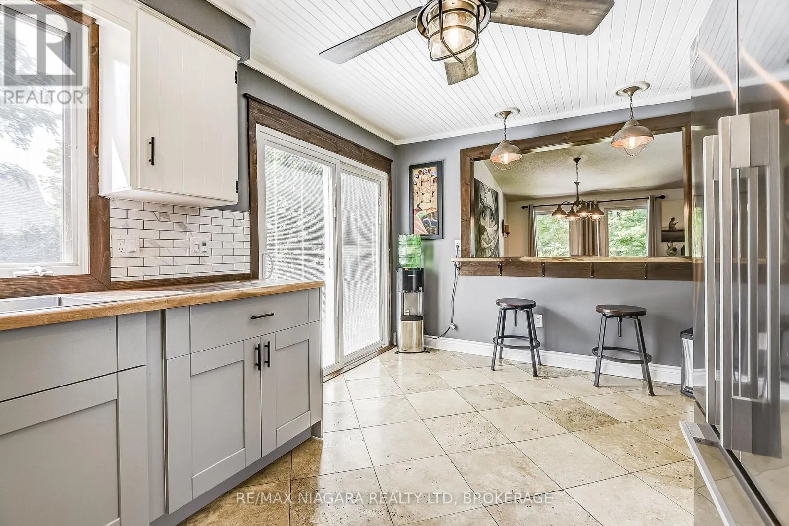 Cross Streets: Mapleview Crescent and Empire Road. ** Directions: South on Empire Road from HWY 3 and East onto Mapleview Crescent. Discover your perfect escape in this stunning Sherkston retreat with titled beach access. Nestled on a private 1/3-acre lot, this year-round getaway features multiple decks for entertaining and outdoor grilling. Inside, find three bedrooms, two baths, a spacious main floor with a cozy living room, new gas fireplace, and a generous dining area. The kitchen boasts stainless steel appliances and tumbled marble flooring, while the master bedroom offers two walk-in closets and a spa-like ensuite bath. This carpet-free home features elegant oak floors and staircase, with numerous upgrades including new shingles (2018), upgraded windows and doors, and a new gas furnace (2022). Additional amenities include a 1.5-car garage with a new electric door and lift, a 200 AMP electrical system, and ample parking for multiple vehicles, boats, RVs, or jet skis on poured concrete. Enjoy luxury, privacy, and modern conveniences in this exceptional property. (id:27476)
