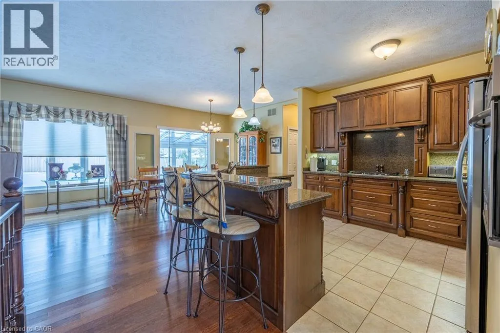 Cockshutt Road to Forest Wood This incredible home sits on a large corner 92 x 148 ft lot, offering space, style, and convenience.This home boasts the following features: large great room, formal dining room, open railings to basement, kitchen c/w eating bar and dinette, 3 bedrooms, the primary ensuite has a shower and a jetted tub. The main floor laundry is conveniently located between the kitchen and primary bedroom.A four season sun room is temperature controlled plus has in floor heating adds additional living / entertaining space or just a space to enjoy the yard. The double car garage is insulated and heated. The unfinished basement has a rough in for a third bathroom and awaits your finishing touches. An in ground sprinkler system will keep your yard green all summer. (id:27476)