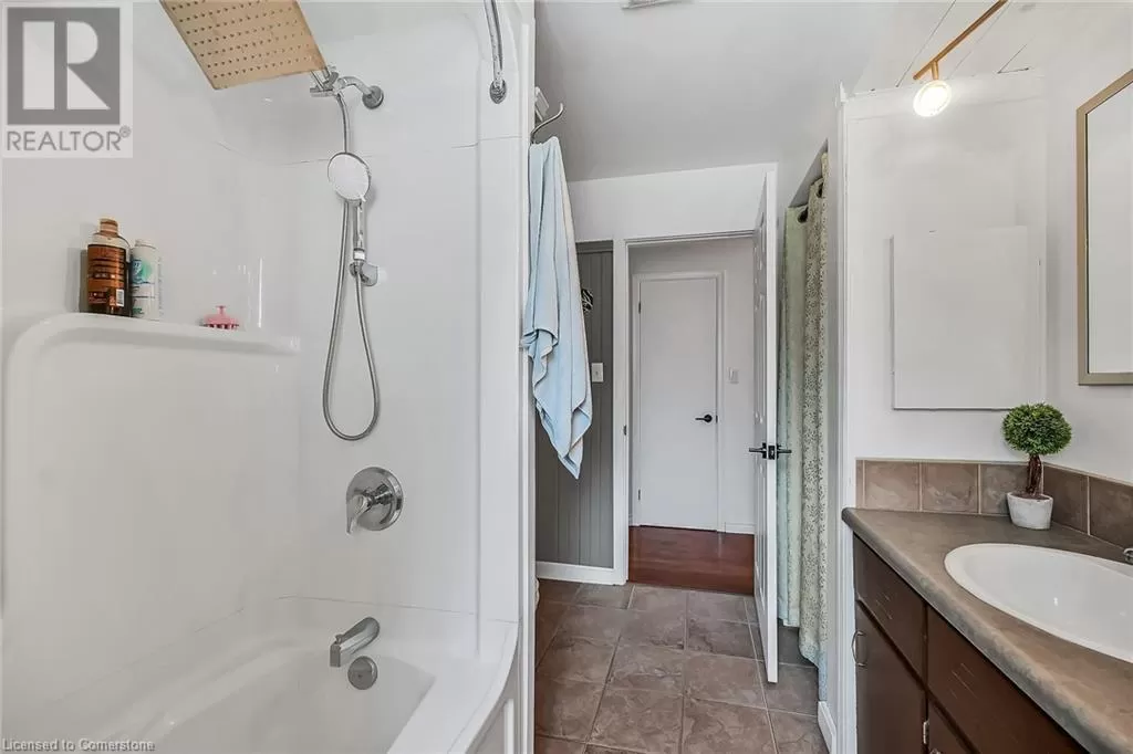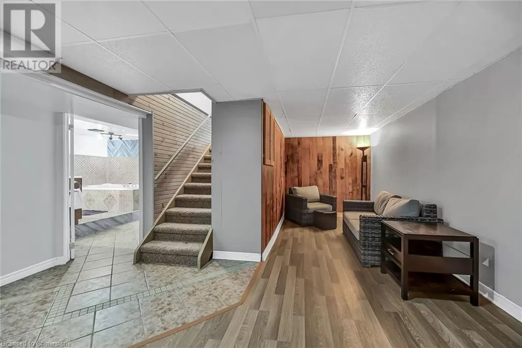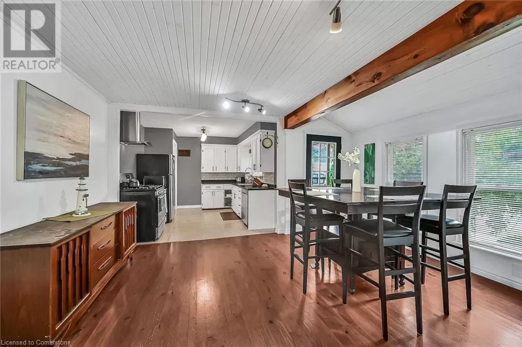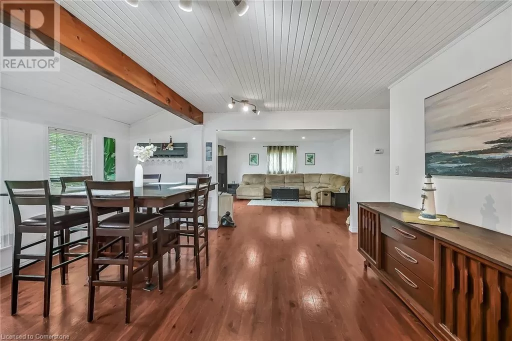 From Main Street (Highway 6), turn right on Clifford. This one will surprise you!! Incredible fully renovated one storey bungalow on large lot (almost 1/3 acre) in quiet area of town, with a bonus detached garage/man cave, and beautiful entertaining area in the back yard. Immaculately maintained, this home offer 3 main level bedrooms plus one in the lower level, two full baths, a large family/games room on grade (used to be an attached garage) plus beautiful living spaces including large living room and dining room on the main plus a rec room downstairs. Family room features pine tongue & groove ceiling with exposed beam look, gas fireplace and garden door to the quality built covered rear patio area featuring stamped concrete, privacy wall, and exterior lighting. Hardwood floors, cove mouldings, & bright vinyl windows through out the home. Lower level bath includes a two seater jacuzzi soaker tub. The yard is fully fenced and includes a quaint garden shed. The Bonus is the oversized two car garage with two roll up doors, concrete floor, large windows, woodstove, wood ceiling and 200 amp electrical. Natural gas is available at the garage as well. As far as mechanicals go - no worries here. Beautiful metal shingle roof with 50 year transferrable warranty, natural gas furnace with newer central air conditioning, 200 amp hydro and vinyl windows. Lots of parking - two separate parking areas - one by the house, and one by the shop. No disappointments here! Potential for a two family situation! This one wont last. (id:27476)