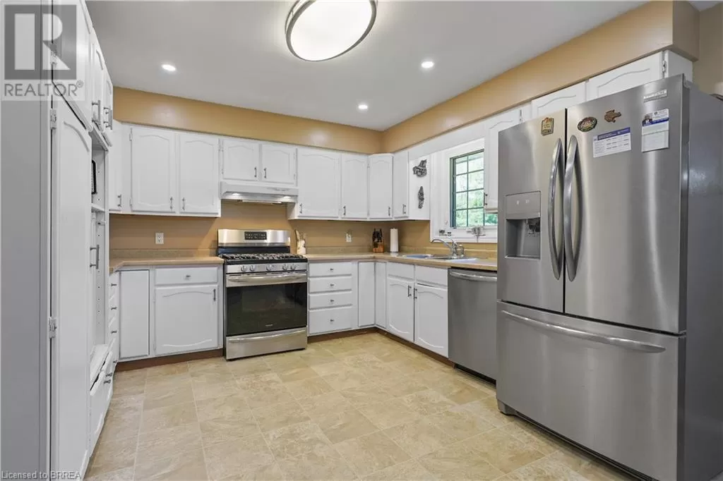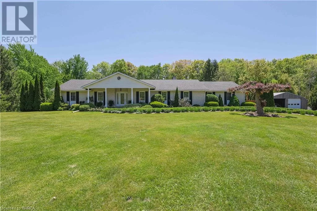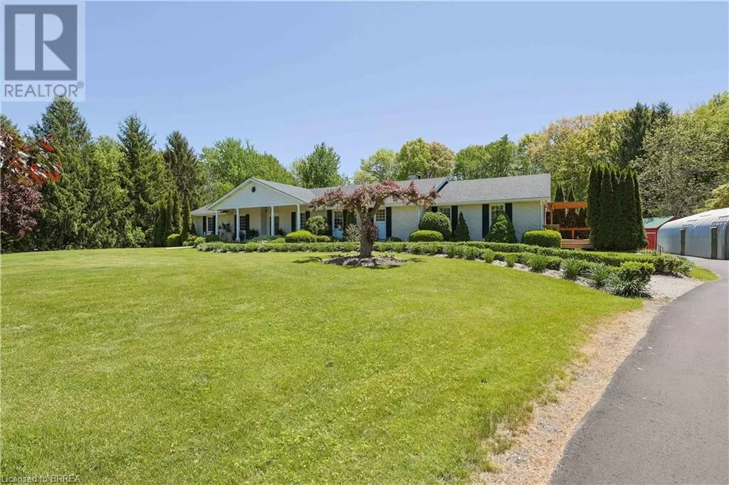 #24Hwy S. L On Radical Rd A RARE & REMARKABLE COUNTRYSIDE DREAM HOME nestled in beautiful Norfolk County! Tucked past a charming, tree-lined driveway, this sprawling white brick bungalow awaits on just shy of 3.5 acres of private land. SEPARATE IN-LAW SUITE, TRANQUIL POND PLUS 6 CAR HEATED & INSULATED 30x54FT QUONSET for all your cars and toys! Fully framed by forests and 227 ft of frontage, prepare to be embraced by nature at every turn. Boasting over 3,000 sq ft above grade plus the full in-law suite with separate entrance and patio! Inside, a thoughtfully designed layout unfolds with a welcoming foyer, formal dining room, and two cozy, elegant sunken living rooms. A floor-to-ceiling wood-burning fireplace brings warmth and character to the main living area, while the expansive kitchen with ample cabinetry flows naturally into the dining spaceâperfect for family meals or hosting. The main home features 3 generous bedrooms and 2.5 baths with main floor laundry. The In-Law suite offers 2 more spacious bedrooms, 1 full bath, bright living room, kitchen, plus a partially finished section of the massive basement. The lower level offers even more space to customize for your lifestyleâwith endless room to grow, gather, and ground yourself in peaceful living. Step outside and youâll find the serenity of mature trees, manicured gardens, and a stunning pond tucked into your private slice of paradise. The long, tree-lined driveway leads to a massive HEATED 2-BAY QUONSET set on a concrete pad. With a wide paved drive and room to roam, thereâs space for every guest and every dream. Large front porch plus rear porch and gazebo, complete with a hottub for you to relax. Just minutes from the sparkling shores of Lake Erie and the vibrant town of Port Dover, this property blends the best of tranquil rural living with lake life convenience. Whether youâre looking for a multi-generational family haven, a private countryside retreat, or a home base by the lake, this one-of-a-kind property delivers it all. (id:27476)