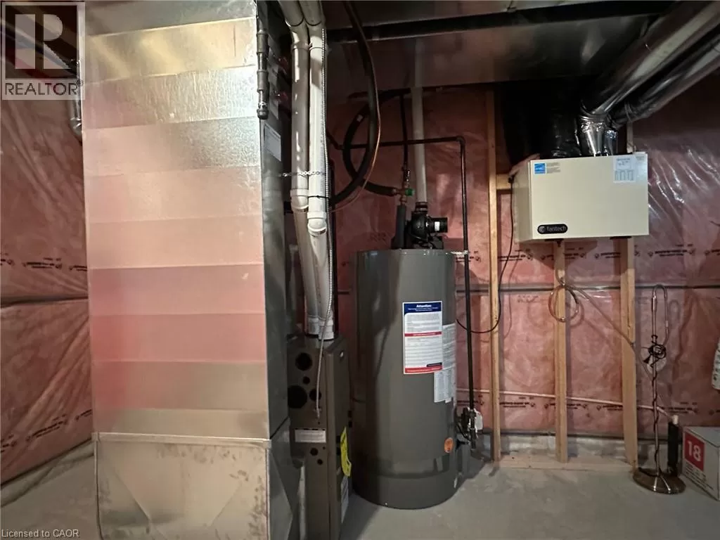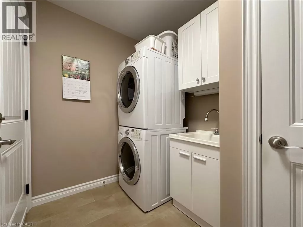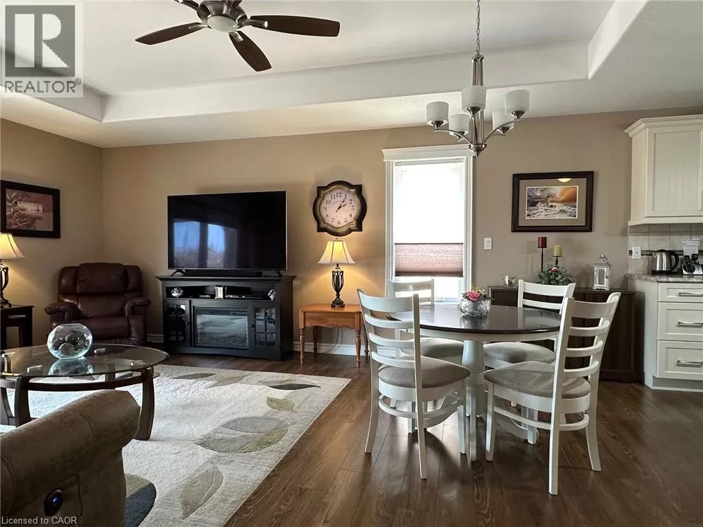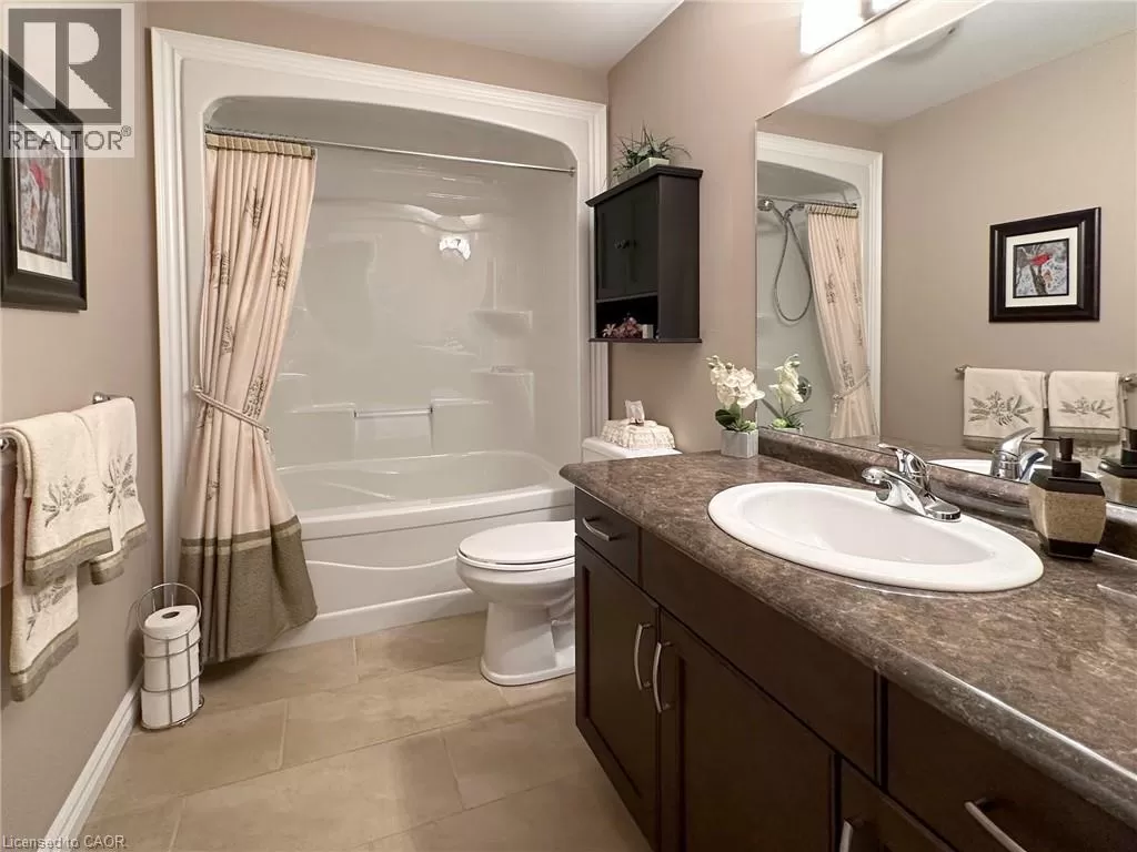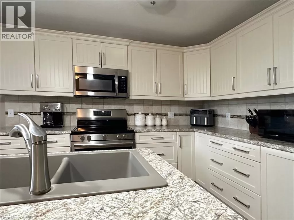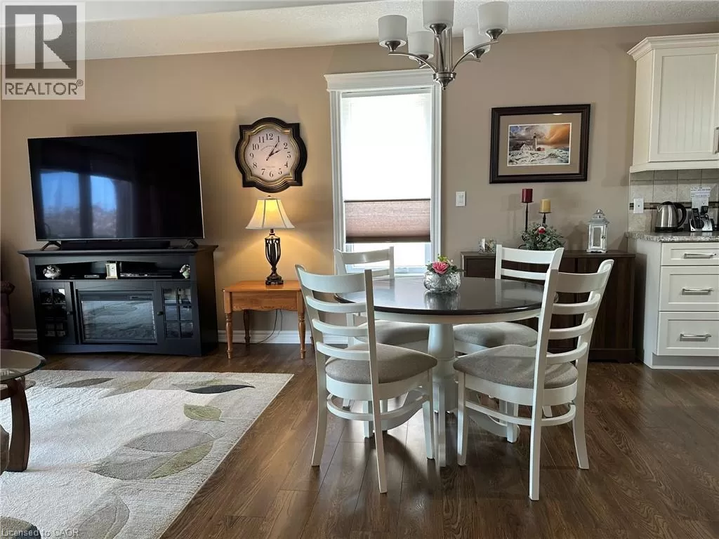 Cockshutt to LynnDover Drive, left on Angler This immaculate stone and brick semi-detached bungalow is situated in a desirable neighborhood, offering both comfort and style. With 2 bedrooms and 2 bathrooms, this property features a welcoming covered front porch and an upgraded kitchen equipped with an island, under-cabinet lighting, and stainless steel appliances. The generous primary bedroom includes a walk-in closet and an ensuite bathroom for added convenience. The second bedroom, currently set up as a sitting room, is great flex space - perfect for an extra bedroom, office, study etc. Step outside to enjoy the beautifully landscaped yard featuring a composite deck with pergola with sunshades, natural gas line (BBQ included), and a shed for additional storage. The unfinished basement has a rough in for a third bathroom. With a main floor laundry and an attached garage, this home is designed for low maintenance, comfortable living. (id:27476)