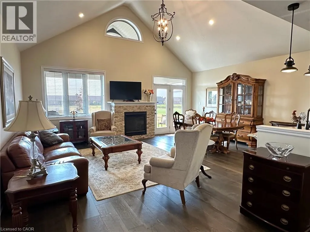 From Hwy 6 South- Turn left onto Lakeview Ave, Turn left onto New Lakeshore Rd, Turn left onto Dover Coast Blvd, and Turn left onto Schooner Dr. Gorgeous sought after bungalow style home on the 16th hole overlooking the fairway and green of a championship golf course. This home, built in 2018, is perfectly situated in the tranquil master planned adult lifestyle community Dover Coast which is dedicated to designing a carefree resort style living. Welcome to this stunning bungalow that offers a perfect blend of style and comfort. As you step inside, you are welcomed by a large foyer, bright and spacious Great Room with vaulted ceilings, NG fireplace, and door to the rear screened in porch. The kitchen is well appointed with chic âAnewâ grey cabinetry, granite counters, and ample storage and counter space. The main floor features two bedrooms and an office, laundry and inside entry from the attached garage. The primary bedroom boasts 3-piece ensuite featuring a glass and tile shower, and large walk in closet. The second bedroom has ensuite privileges to the main 4 piece bath. In the lower level of the home you will find a large bedroom, two piece bath, high ceilings, high efficiency furnace, air exchanger and on demand water heater. Outside this home offers concrete drive with space for 4 cars, concrete walks, attached two car garage, relaxing covered front porch, screened-in back porch and rear concrete patio with beautifully landscaped yard and gardens. Covered in the condo fees are lawn care and cutting, irrigation, snow removal, the dog park and pickleball courts. Dover Coast residents also enjoy access to a tiered waterfront sun deck and swimming area located behind Davidâs Restaurant. This property is a must-see for anyone looking for a beautiful, meticulously maintained home in a fantastic location. Donât miss the opportunity to make this your dream home. (id:27476)
