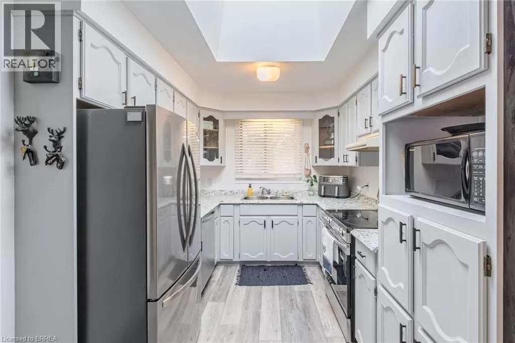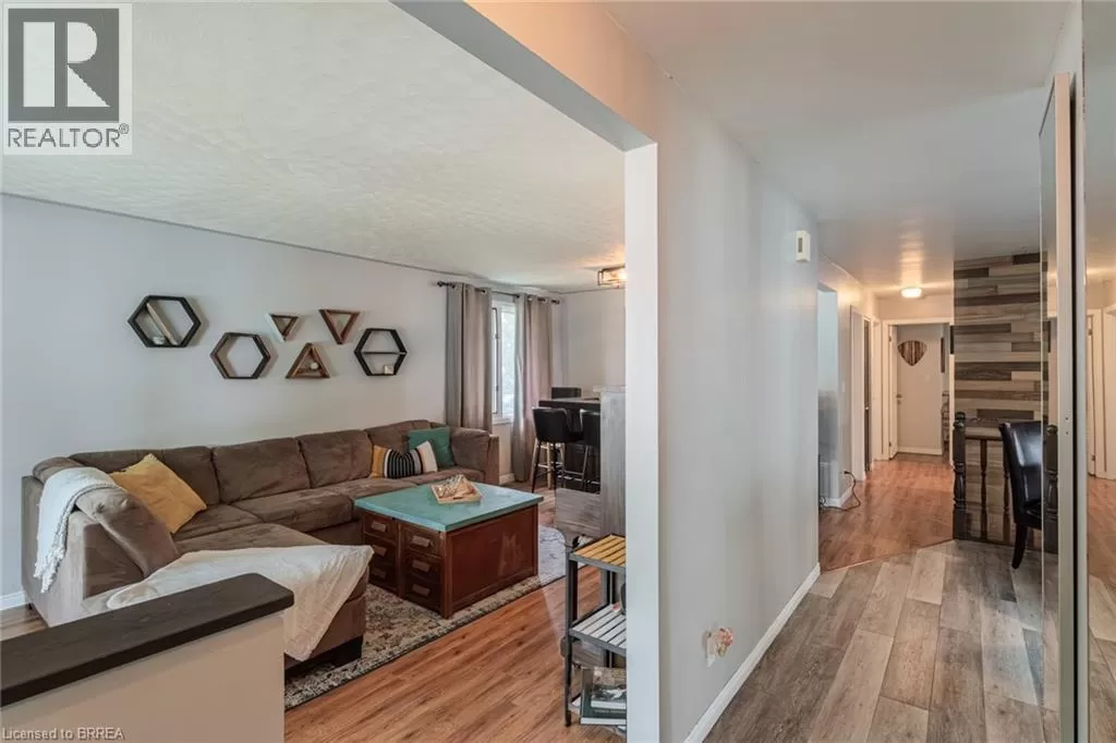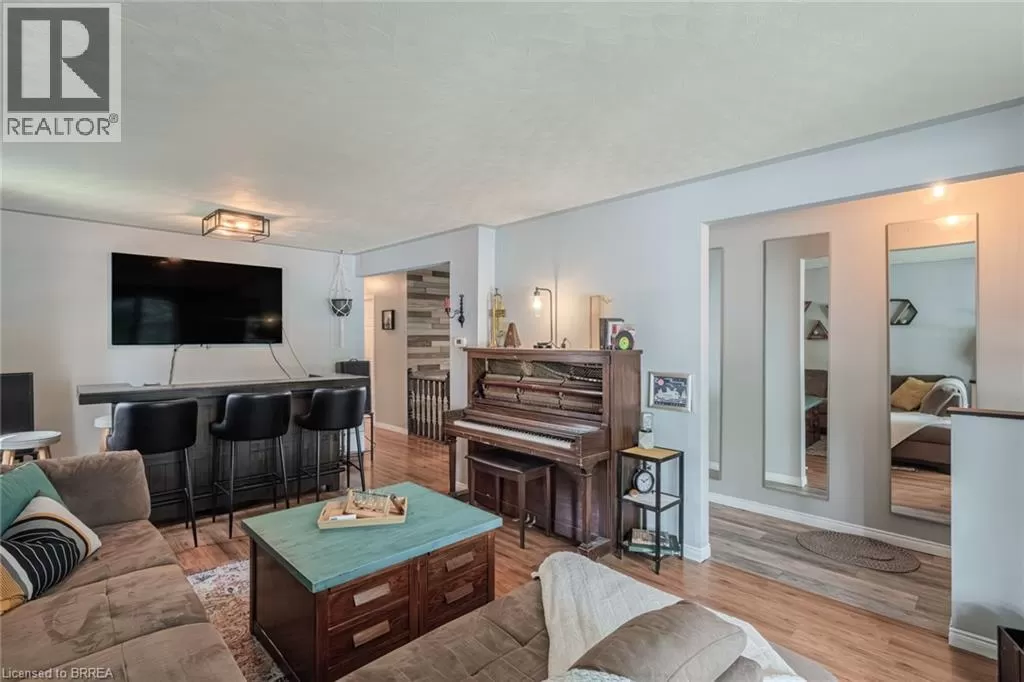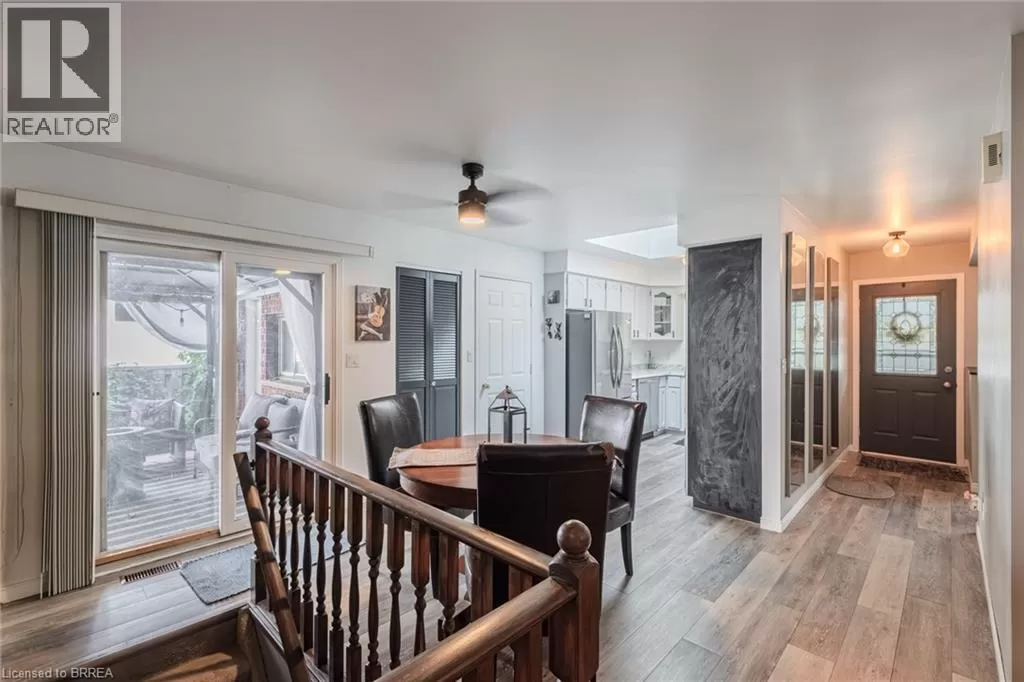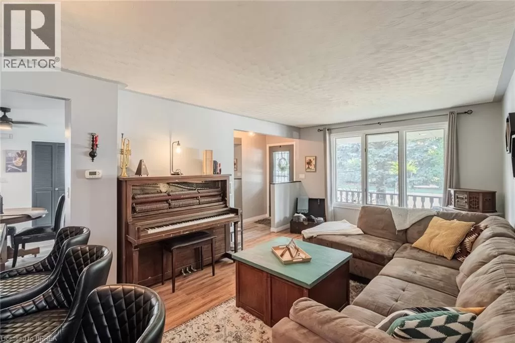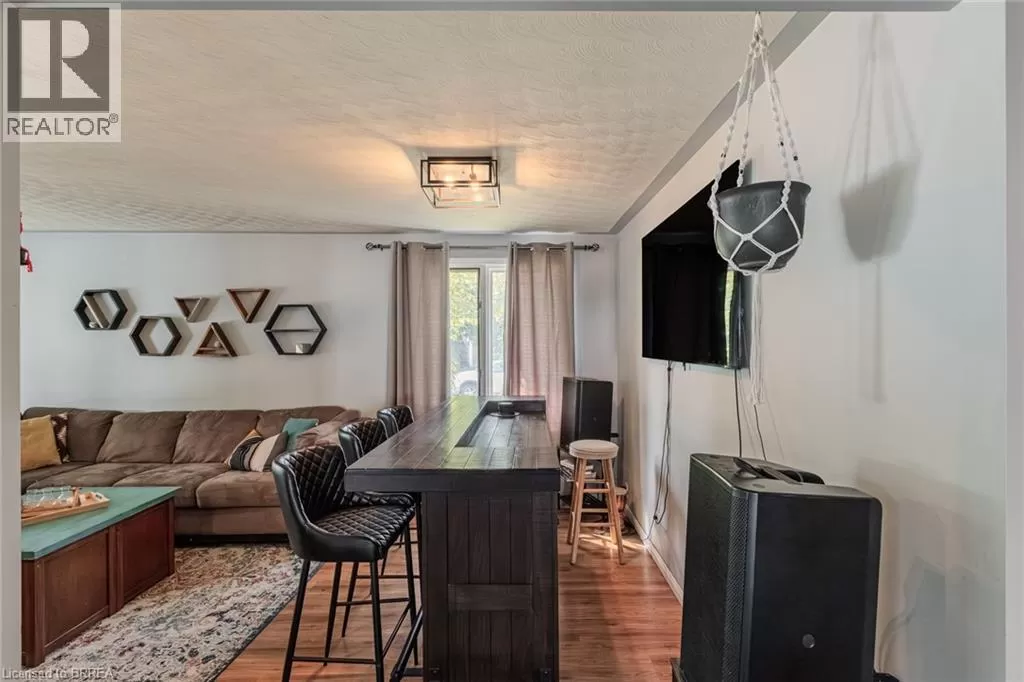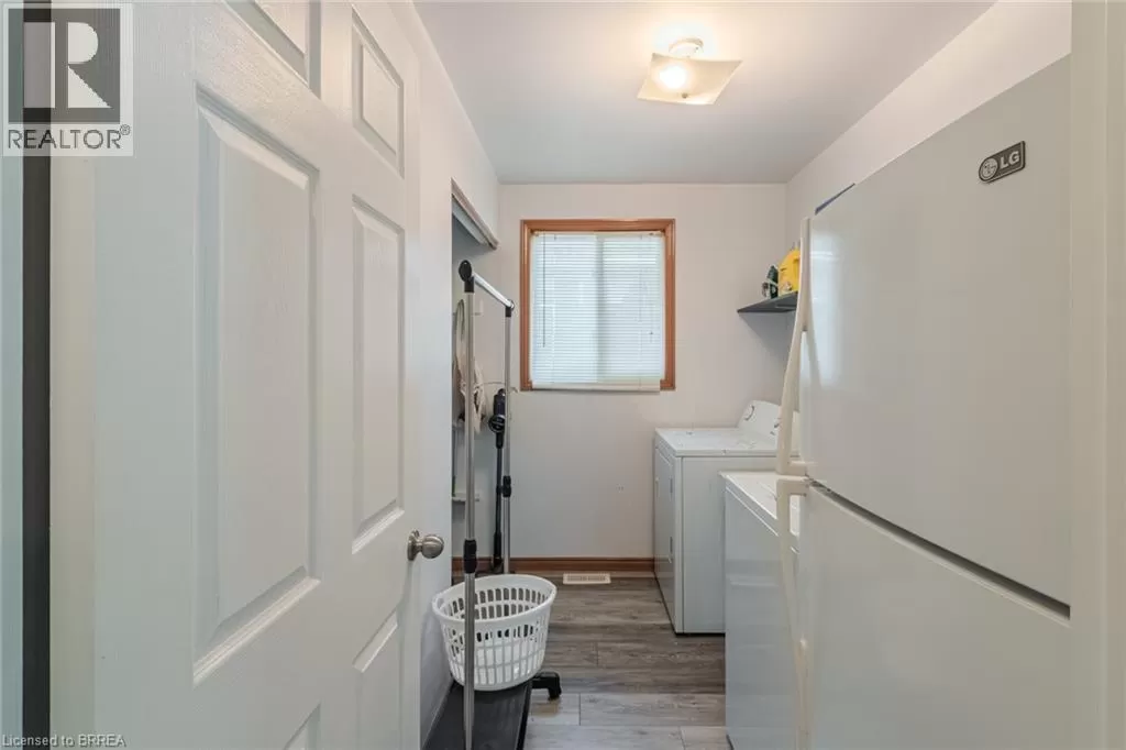 Off Main St turn right onto Thompson Drive All brick bungalow in quiet beach town of Port Dover on corner lot with attached garage & fenced yard. Enjoy boating, canoeing, seadooing, mini putt, fishing and Lake Erie life with a quaint downtown filled with lots of shopping & restaurants. This well cared for home features 2 bedrooms & laundry on main level, open concept living room & dining room,-great for entertaining, eat-in kitchen with large newer skylight & newer appliances in 2025 including fridge, stove & dishwasher, gazebo on your private extended deck off kitchen to fenced yard redone in 2024, large finished rec room perfect to watch movies in or sports games, 2 full baths, main level bath has newer skylight as well, reshingled roof 2025, central air, washer & dryer included, lots of room to finish another bedroom or games room, close to schools, park & grocery store. Perfect for 1st time home buyers or retirees! Come take a look as you won't be disappointed! (id:27476)