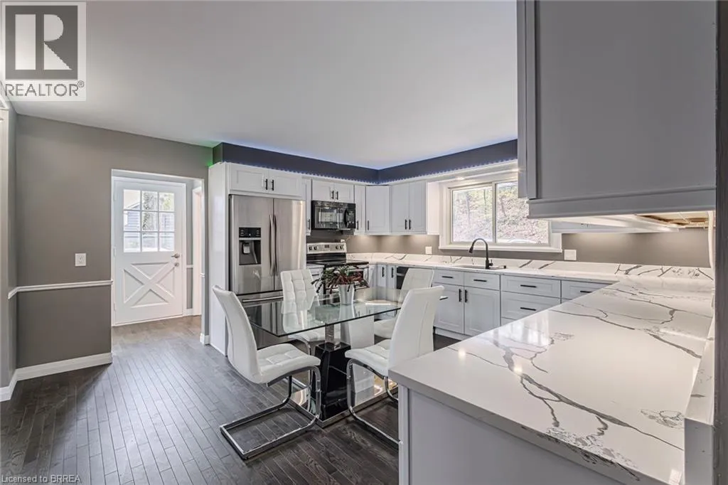 Take Hwy 6 over lift bridge, turn left on Grand Street. (the upper road)- property is less than 1 min up the road- on the left hand side.. Experience Port Dover living in this updated bungalow overlooking the channel! With a grand total of over 3300 sq. ft, this home offers 4 bedrooms, 3 bathrooms, and 2 kitchensâthis versatile layout is ideal for possible Air BNB, multi-generational living or accommodating guests. A double door entry leads to a large foyer with vaulted ceilings and hardwood flooring that extends throughout the main level. The striking newly designed eat-in kitchen showcases Cortez counters, under/upper mount lighting & contemporary style cabinetry. This space opens to the great room that features beamed vaulted ceilings, gas fireplace with stone back drop & Clerestory windows that flood the space with natural light- from here, a sliding door leads you to a 4-season sunroom complete with charcoal grilling station & garden door access to a deck area. The vaulted beams span across an open ceiling over an office area (that could act as an additional bedroom) and continue into the massive primary bedroom. This space features 3 double closets, vaulted ceilings, 5-piece ensuite & views of the canal. A conveniently located laundry area off the kitchen provides access to a side deck & driveway & a 3-piece bath completes the main level. The lower level is updated & perfectly set up as an in-law suite. It offers a full kitchen, dining area, living room with fireplace, three bedrooms, a 3-piece bath & laundry area. It also features a bright sunroom with a view of the channel & side door entry to the lower deck. An optional secondary access off this sitting room leads to another sunroom that connects to the main living area. The multi-purpose layout and entry points of this move-in ready home provides endless possibilities for the new owner! The owner may consider selling the land behind the home that includes a boat house on the canal providing the possibility to add some green-space, a docking spot & access to Lake Erie! Itâs time to make your move to Dover! (id:27476)