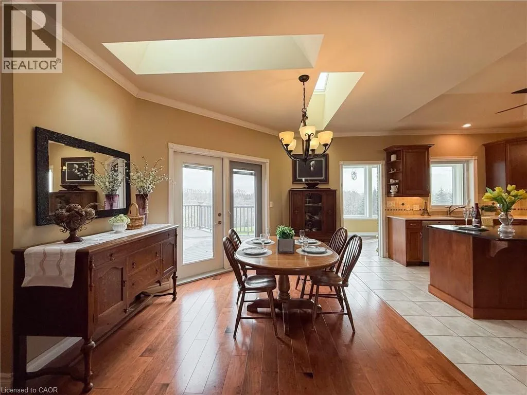 On Main St turn north onto Lynn Park Ave, turn east onto O'Rourke Ave after the bend the road becomes East St South. The property is located on the east side of the street. Welcome to 14 East Street South, Port Dover, a stunning custom-built bungalow on a lush 1.47-acre estate, backing onto the Lynn Valley Trailâideal for families seeking space and versatility. Constructed in 2008, this multi-generational home features two separate living areas connected by a shared basement recreation room. The exterior combines brick and stone with a durable metal roof. A long paved driveway leads to a circular drive and an impressive 3-car garage. Inside, discover modern finishes like 9â ceilings, crown molding, custom kitchens with granite counters and undermount lighting, and a blend of hardwood and tile flooring. The welcoming foyer opens to a spacious living room with a cozy gas fireplace and a private study/office. The bright kitchen and dining area, illuminated by skylights, provides access to an upper deck for entertaining and enjoying views of the expansive yard. The sunroom, also with deck access, offers a bright retreat. The primary bedroom features two walk-in closets and a luxurious 5-piece ensuite, alongside a second bedroom, a 3-piece bathroom, and a well-appointed laundry room with garage access. The secondary residence features a generous foyer leading to an open-concept living area with another gas fireplace and access to the upper deck. It includes an office/den, a 2-piece powder room, and a screened 3-season porch. The lower level boasts a spacious primary bedroom with a walk-in closet and a large 5-piece ensuite, three additional bedrooms, a 4-piece bathroom, and another laundry room. An expansive recreation room with a gas fireplace and walk-out access to a lower patio and hot tub is perfect for gatherings. This exceptional property combines luxurious living with essential systems to service both units, including a large utility room with stairwell access to the garage. Don't miss this rare opportunity for a multi-generational home in Port Doverâschedule your private showing today! (id:27476)