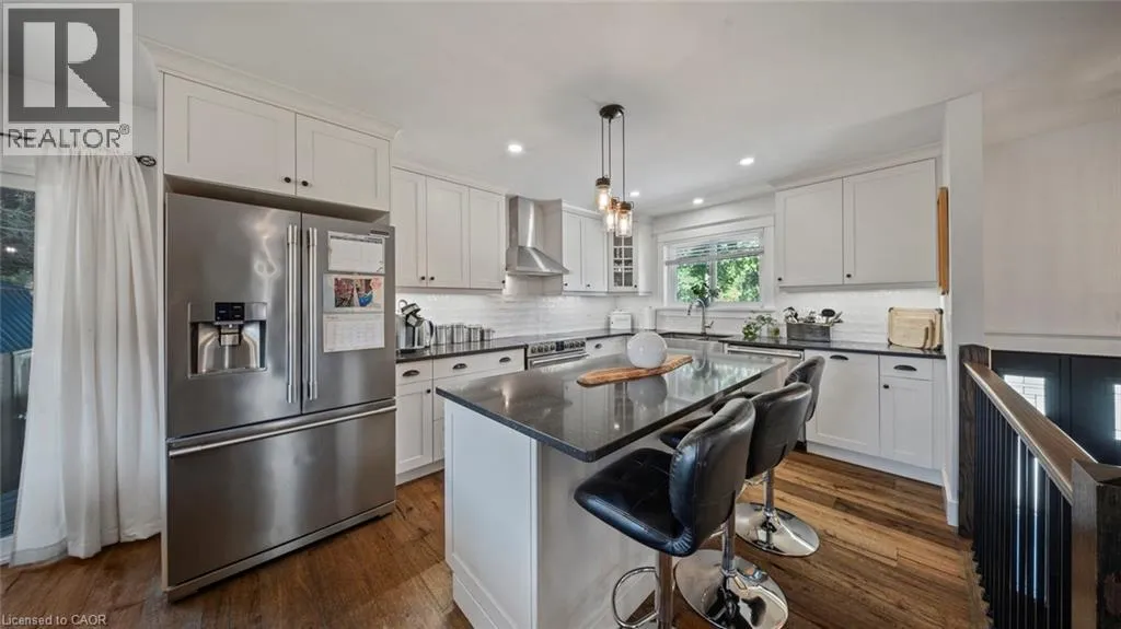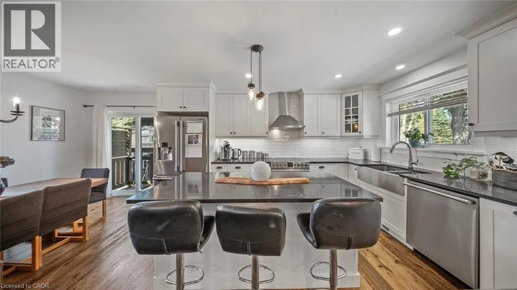 Intersection of Radical RD (Nelson ST) and Kiwanis Discover this beautifully renovated 3-bedroom, 3-bathroom home in beautiful Port Dover, offering comfort, style, and versatility. Complete with a self-contained in-law suite, this property is ideal for extended family, guests, or generating extra incomeâpotential short-term rental or long term. Inside, youâll find a bright, open-concept main floor featuring flawless hardwood floors, a cozy fireplace, and large windows that fill the space with natural light, also partial lake view from primary bedroom. The modern kitchen is a true highlight, boasting lustrous countertops, touch activated faucet, stainless steel appliances, and generous cabinetry for all your storage needs. The in-law suite offers its own private entrance, a well-appointed kitchenette, a spacious bedroom, and a spa-like bathroomâperfect for independent living. Recent upgrades include newer windows, refreshed bathrooms, and a fresh coat of paint throughout, making this home completely move-in ready. Enjoy outdoor living with a, fenced backyard, and a charming multi purpose shed. Plus, youâre only steps away from lake accessâperfect for a refreshing morning swim. Located minutes from Port Doverâs shops, dining, and attractions, this home offers both tranquility and convenience. A fantastic family home or income-generating propertyâbook your private showing today! (id:27476)