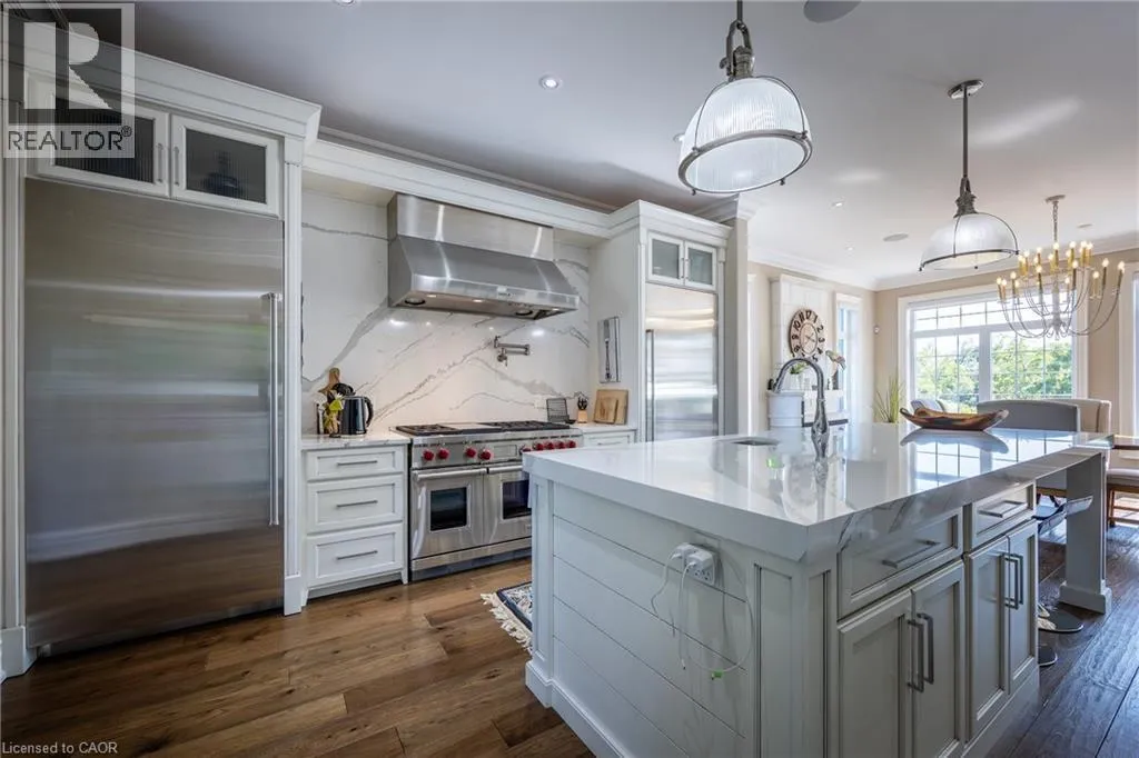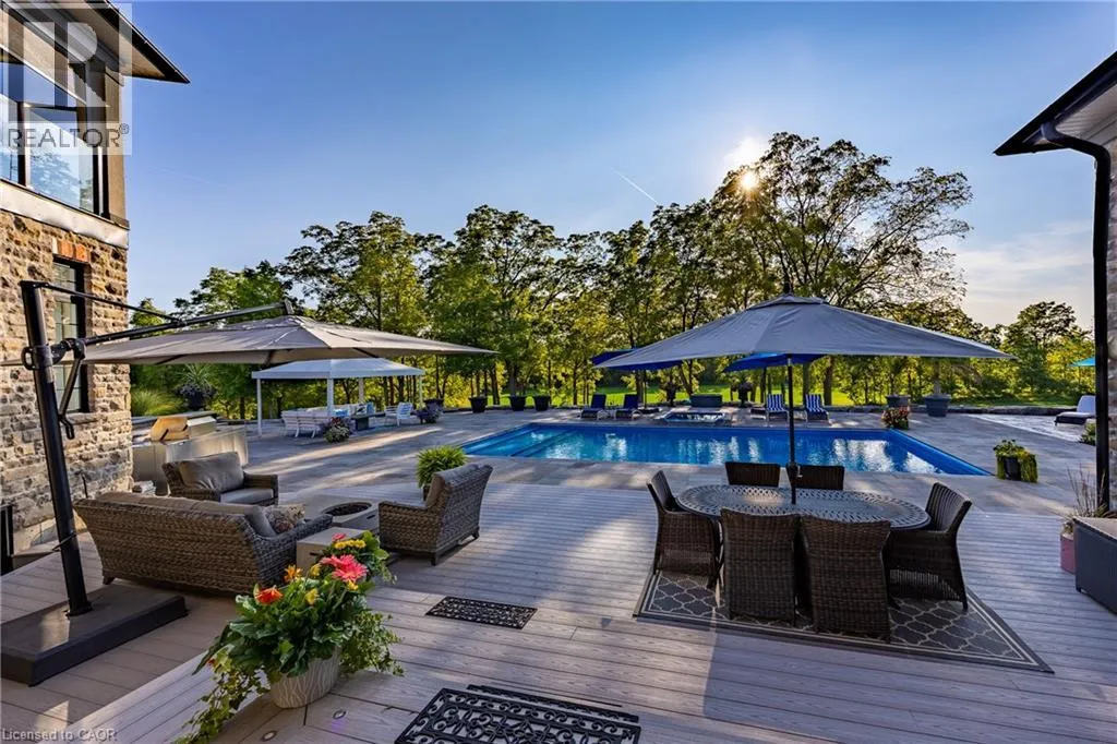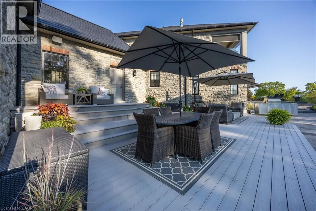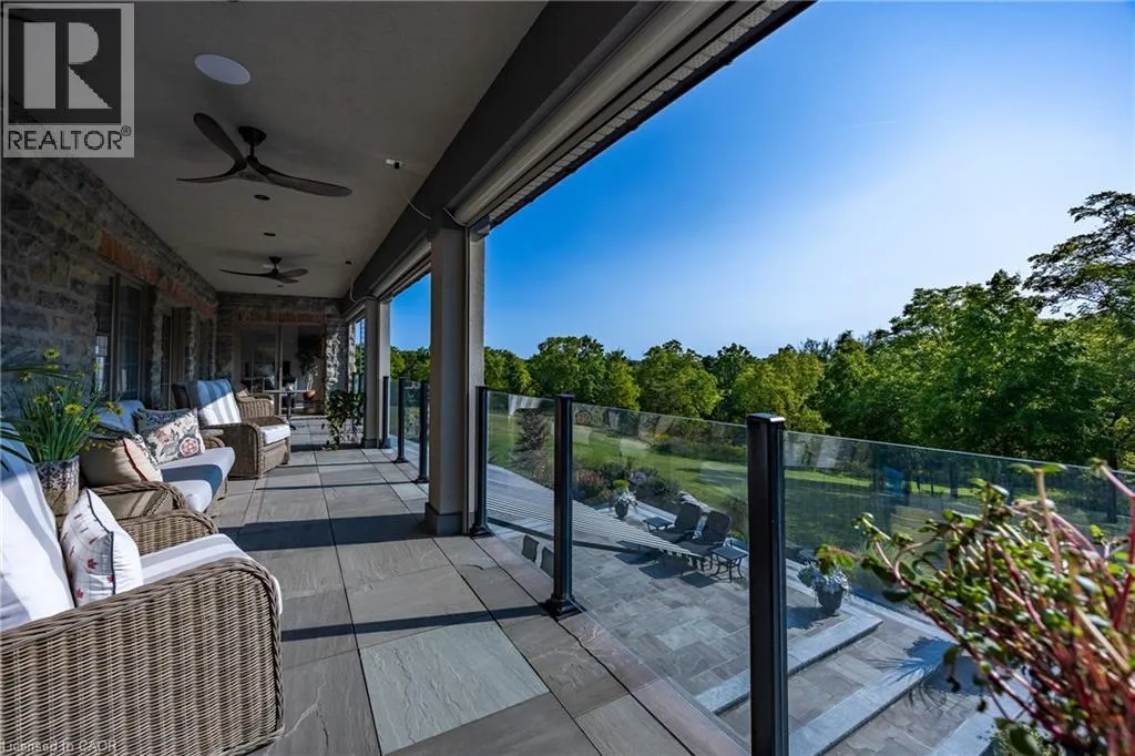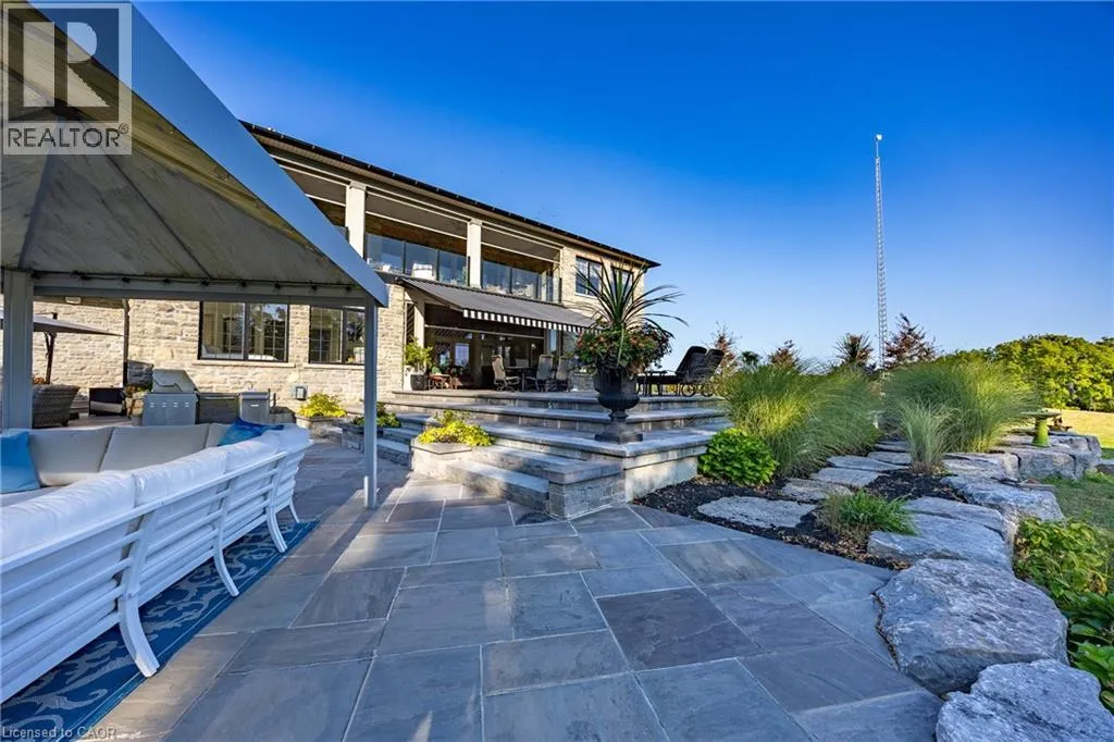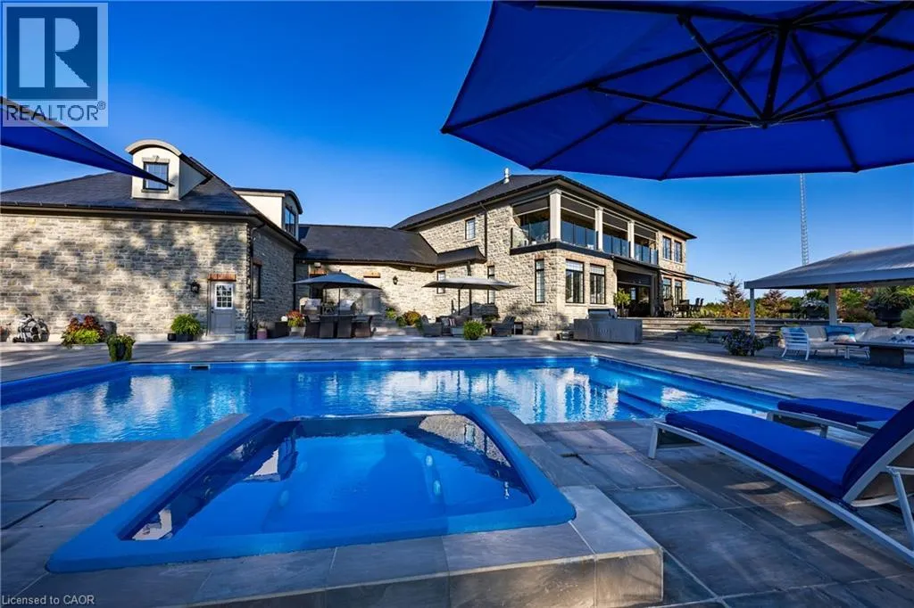 Hwy #6 to East Quarter Line North. Follow East Quarter Line over St. Johns Side Road and continue to 649. The house will be on your left Nestled in the lakeside town of Port Dover, 649 East Quarter Line represents a rare opportunity to acquire a private estate of exceptional scale and refinement. Set on 48 acres of pristine countryside, this modern stone residence combines serenity with convenient access to town amenities. Spanning more than 7,600 square feet, the home offers 4 bedrooms and 6 bathrooms, including two primary suites,one on each level. Each features a spa-inspired ensuite, expansive walk-in closet, and covered porch access with automated screens. The upper suite further distinguishes itself with a coffered ceiling, sitting area, private office, and a bespoke dressing room with center island. Exceptional views from every room frame rolling fields and pastoral landscapes. The chefâs kitchen is both functional and elegant, showcasing dual islands with quartz counters, Wolf appliancesâincluding an 6-burner range with griddleâdual fridge and freezer, wine storage, and a professional hood fan. A fireplace-warmed dining area opens to a covered porch, while the sunken living room with its dramatic stone fireplace offers the perfect setting for entertaining. Additional highlights include a formal dining room, private office, and heated 4-car garage with direct mudroom access. Above the garage is a private guest suite with independent entry which offers versatile accomodations. A separate 3-door garage/workshop with epoxy floors provides space for equipment or recreational toys. Outdoors, the estate becomes a private retreat with tiered stone patios, shaded sitting areas, and a step-down pool with integrated hot tub. From the back patios, the vistas are breathtaking, expansive and ever-changing with the seasons, creating a serene backdrop for both morning and evening gatherings. Blending timeless craftsmanship, refined finishes, and acres of unspoiled natural beauty, this estate stands among Port Doverâs most distinguished offerings. Book your showing today. This lifestyle could be yours! (id:27476)