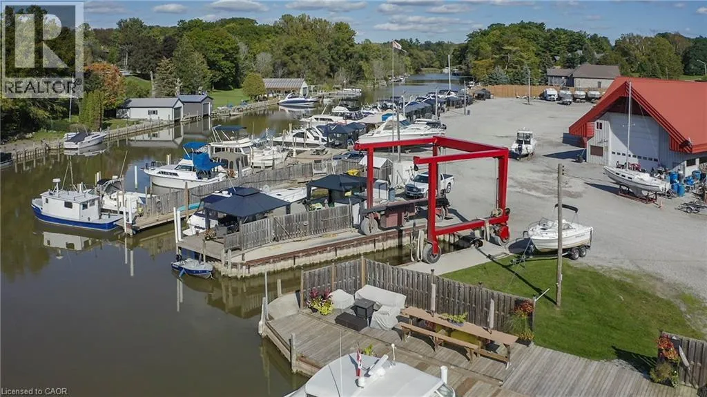 From Hamilton: Take Hwy 6 N, Turn right onto Hwy 6 S/ON-6 S (signs for Greens Road), Turn left onto Hwy 6 S and continue for 40 km until you arrive in Port Dover. Turn right onto Donjon Blvd, then turn left onto Jaylin Crescent. Welcome to a waterfront opportunity unlike any otherâwhere barndominium living meets impressive waterfront facilities, complete with the ability to dock your yacht right at home. Situated on 2+ acres with an impressive 500+ feet of frontage along Black Creek, this property spans three individually deeded lots and offers direct access to Lake Erie with just a short boat ride. Whether youâre a boater, hobbyist, marina operator, car enthusiast, or investor, this property is designed to impress. Perfectly tailored for serious boaters, the property includes a travel lift boat well, a 75â x 22â yacht slip, 32 large boat slips with hydro and water connections, and storage capacity for up to 125 boats. Recently upgraded boardwalks and pedestals ensure a polished marina experience. The possibilities here are vastâcreate a dockominium with clubhouse, enjoy a private barndominium residence with 32 boat rental slips, yacht club, pursue a multi-residential development, or build out each lot individually. The upper-level 1,870 sq. ft. residence features soaring cathedral ceilings, an open-concept great room with kitchen and dining space, three bedrooms including a private crewâs quarters, and two bathrooms. For hobbyists and professionals alike, the property also boasts a heated 3,200 sq. ft. shop with 27â ceilings and a 20âx20â power door, plus 800 sq. ft. of retail/garage space with an office and additional marina washrooms with showers. Also included are essential equipment and machinery for seamless operations: a marine travel lift, Conolift hydraulic boat trailer, Case 35A tractor with loader, overhead cranes, blocking and stands. Whether youâre seeking a hands-on marine business, a unique waterfront retreat, or an investment with future development potential, this property delivers the versatility and infrastructure to bring your vision to life. Imagine whatâs possible on Black Creek and book your tour today. (id:27476)