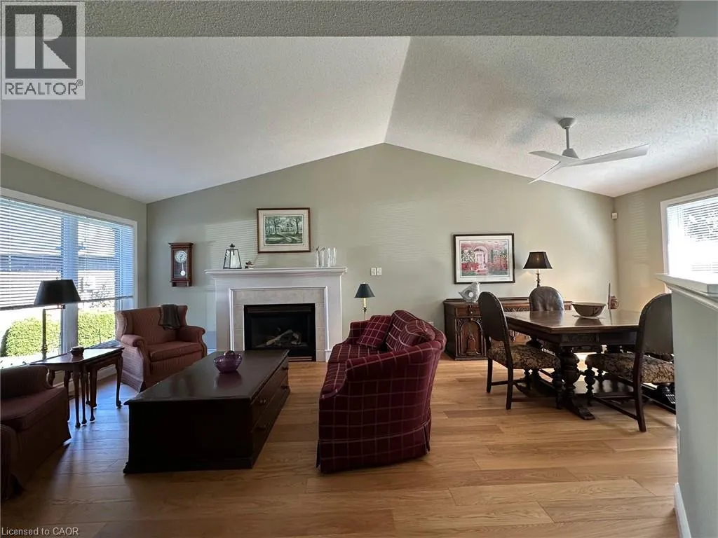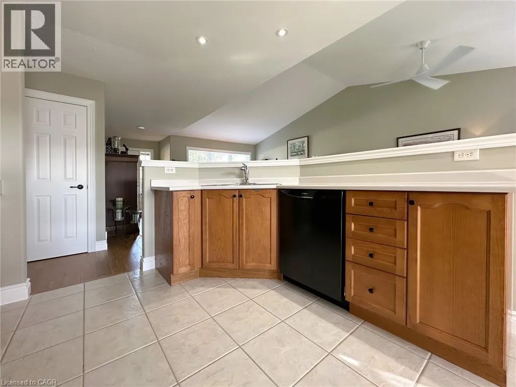 Hwy #6 to Somerset, to Bayshore Court. Welcome to this immaculately maintained and updated bungalow situated on a beautiful, private and peaceful cul-de-sac in the town of Port Dover. The living room is highlighted by a gas fireplace, hardwood flooring and a cathedral ceiling, creating an inviting atmosphere. The cathedral ceiling extends over the dining room, featuring a sizable window overlooking perennial gardens and mature trees. The kitchen includes a spacious island, spice cabinet, pantry and a second eating area with patio doors to the private patio and landscaped back yard. Retreat to the generous primary bedroom, featuring hardwood flooring, a walk-in closet and an ensuite bathroom with walk in shower. Two additional well-appointed bedrooms with hardwood flooring and an updated second full bathroom, with quartz countertops, ensure ample space for family and guests. The convenience of a main floor laundry setup, along with a lower level family room and stylish bathroomâcomplete with another quartz countertopâmakes this property exceptional. Updates in the last five years enhance the comfort and efficiency of this home, including windows, furnace, air conditioning, insulated garage door and R60 attic insulation, providing peace of mind and energy savings. Additional updates include new flooring, central vacuum, home surge protection, eavestroughs and downspouts, fresh paint, door hardware, upgraded baseboards, sills and trim, and two gas BBQ connections for the ultimate outdoor convenience. This carpet-free home combines modern amenities with classic charm, creating a space that is both functional and inviting. Don't miss the opportunity to make this Port Dover bungalow your own. Schedule your private showing today and discover the lifestyle that awaits you in this beautiful home! (id:27476)
