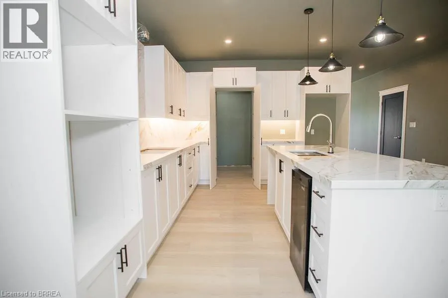 Hamilton Plank Road (Highway 6) to Scott Drive Introducing 7 Scott Drive - a stunning fusion of refined craftsmanship and contemporary comfort, ideally situated in the vibrant community of Port Dover. This newly constructed custom bungalow delivers almost 2,000 sqft of elegant main floor living, carefully designed with premium finishes and thoughtful touches throughout. From the curb, the exterior immediately impresses with its board and batten design enhanced by stone accents, while the inviting front porch sets the perfect spot to start or end your day. Inside, soaring windows and a striking stone fireplace anchor the spacious living room, filling it with warmth and natural light. The gourmet kitchen is sure to delight with sleek quartz counters, a generous island, and a hidden walk-in pantry. The seamless connection to the covered back patio creates an ideal flow for outdoor dining or relaxed evenings under the stars. An oversized dining area-stretching more than 22 feet-ensures you'll always have space for gatherings of every size. Convenience blends with style in the laundry/mudroom off the garage and the elegant powder room for guests. Retreat to the serene primary suite, featuring a large walk-in closet and a spa-like ensuite complete with dual sinks and a luxurious walk-in shower. Two additional bedrooms, each with walk-in closets, share a well-appointed Jack & Jill bathroom, making the layout as practical as it is beautiful. The lower level offers endless possibilities with 9' ceilings and large windows. Located just a 15-minute walk from downtown Port Dover and the sandy shoreline, this home offers more than comfort - it offers a lifestyle. From boating and beaches, to local dining and boutique shopping, everything you love about Port Dover is right at your doorstep. (id:27476)