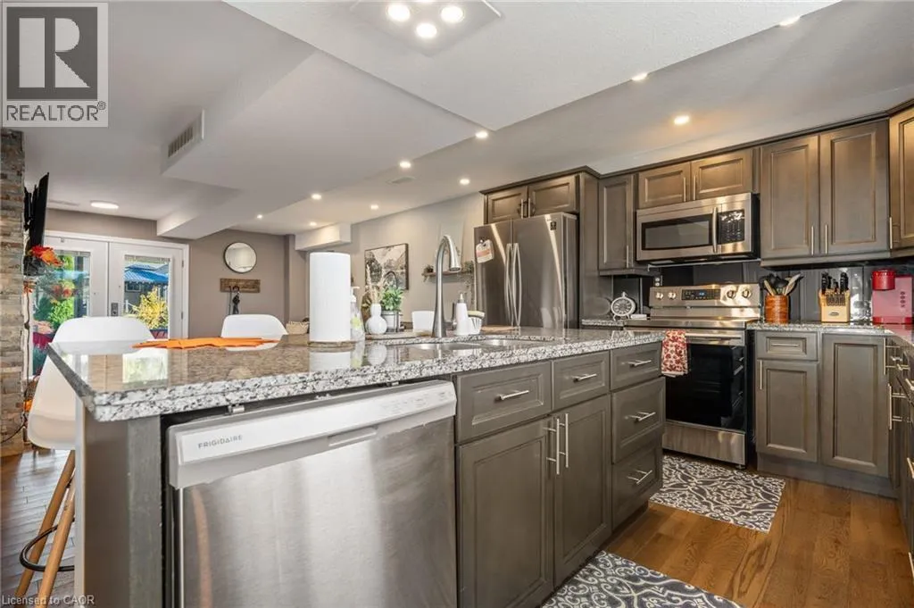 From HWY #6 in Port Dover turn on to Grand Street, immediate left on River Dr., follow to 52 River Dr. on right, next to the Port Dover Yacht Club. Totally upgraded home on the water in beautiful Port Dover! What a location!- Boating, fishing, swimming, the beach and shopping are just a few mins away. Located on the channel & right next door to the Dover Yaught Club- A short boat ride takes you out to the lake. No need to pay docking fees-Park your boat & step up to your 380 sq ft deck with secured storage area. From there through the double door entry into the reinvented open concept main level. The living area features 3/4 inch hardwood flooring, pot lights, NG Fireplace with dry stack stone & barn beam mantel. The Hardwood continues into the new kitchen that showcases ample cabinetry, granite counters, island & mirrored glass backsplash. A two-piece bath with oversized porcelain tile completes this level. Oak stairs lead to the bright 2nd level landing that offers double door access to the 435 sq ft two tiered upper deck with glass wrap around railing system. Take in the amazing nautical views & entertain family & friends from both upper & lower decks. The second floor also offers two good sized bedrooms both have hardwood flooring and offer great views of the channel. A 4 piece bath with granite counter vanity and convenient laundry rm complete this package. Shingles, A/C, furnace, flooring, doors, kitchens, baths, windows (2018) and the list goes on...Many opportunities exist for this property including cottage, year round residential living or investment. Come see what other great features this home has to offer! (id:27476)