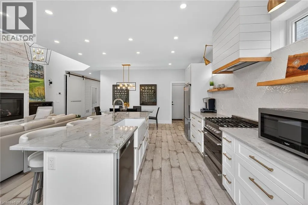 HWY 6 to Lakeview Turn Right onto New Lakeshore Rd,80 New Lakeshore Rd is on the Left, unit 21 is across from tennis court, pool and parking. Custom Designed, Exquisitely Finished 2+2 bedroom, 3.5 bathroom Port Dover home located in the sought after South Coast Terrace gated community on the shores of Lake Erie. Residency in this exclusive enclave includes use of community inground pool, tennis/pickleball court, and private access to the lake with observation deck & stairs to beach area offering an irreplaceable setting & Lifestyle for you to Enjoy! Great curb appeal with stone & complimenting sided exterior, oversized concrete driveway, & entertainers dream backyard Oasis complete with screened in porch (retractable), outdoor gas fireplace, mounted TV, concrete patio, & hot tub. The masterfully designed interior layout features 2500 sq ft of distinguished living space highlighted by great room with open to above ceilings & gas fireplace set in tile hearth, gourmet kitchen with custom cabinetry, tile backsplash, live edge wood accents & eat at island, dining area, 2 pc bathroom & welcoming foyer. The 2nd level is highlighted by upper level deck, 3 pc primary bathroom & 2 bedrooms including primary bedroom with walkout to private terrace & lavish 5 pc ensuite with walk in shower, soaker tub & in suite laundry. The finished basement includes 2 additional bedrooms, rec room, & storage. Conveniently located close to restaurants, downtown amenities & entertainment, golf, spa, beach, marinas & more! Relaxing commute to 403, QEW, & GTA. Must view to appreciate the attention to detail, luxurious finishes & quality workmanship throughout. Experience & Enjoy Luxury Port Dover Living at its Finest! (id:27476)