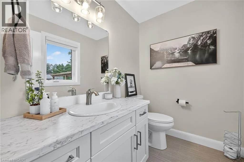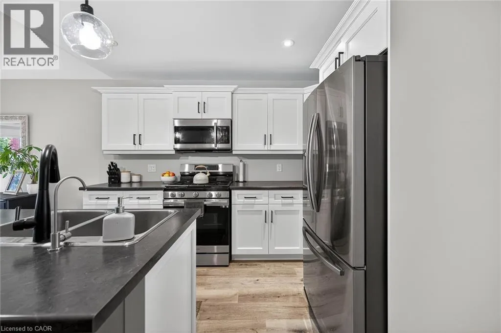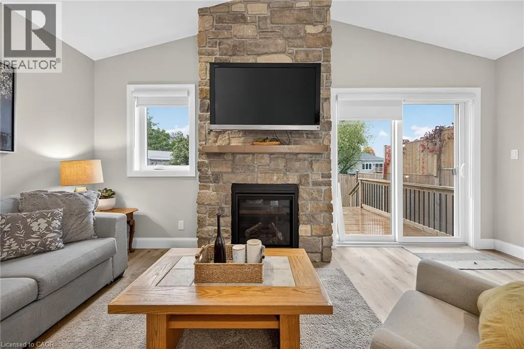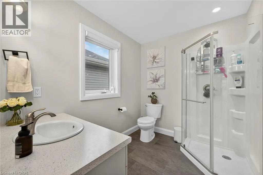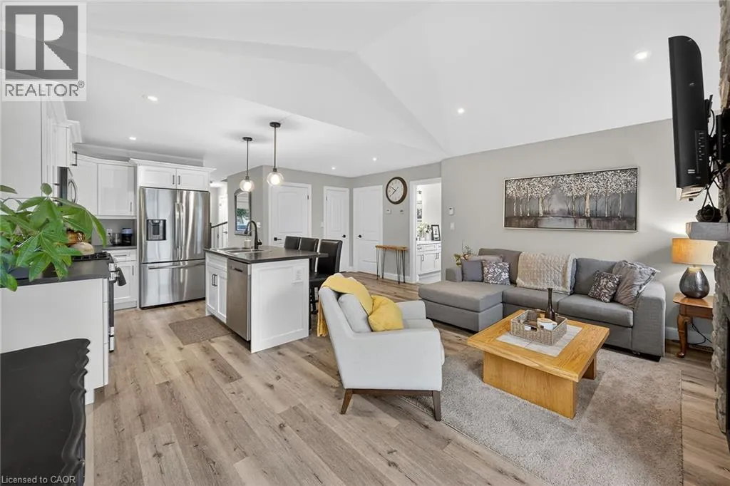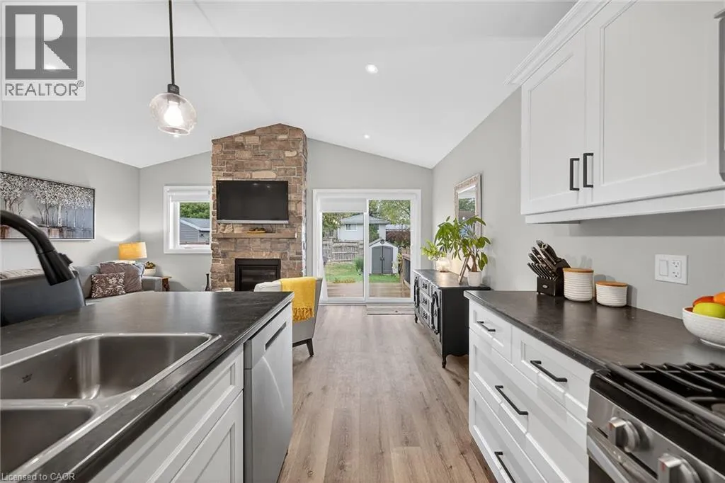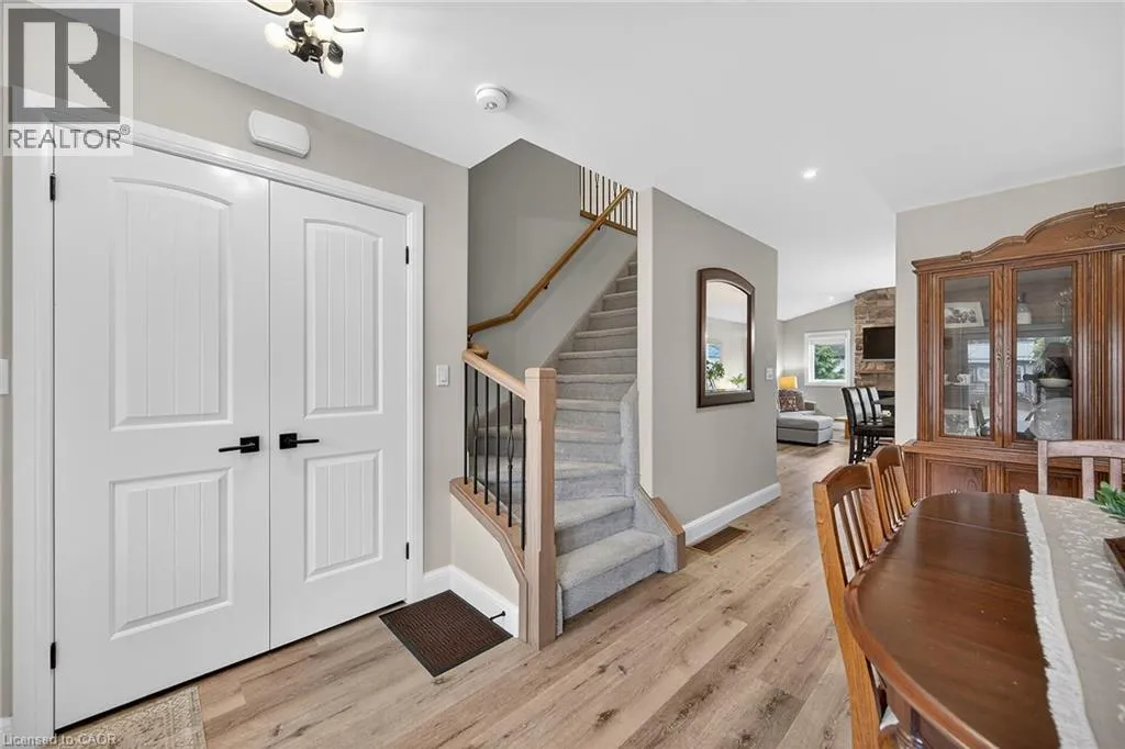From #6 Hwy Haldimand County, becomes Main St., follow RT at 1st lights BEAUTIFUL BOER BUILD IN BUSTLING BEACH TOWN PORT DOVER! Just short walk away from the Summer Savvy Lake Erie Downtown destination is this 3+ year old home located amongst other impressively maintained properties. Bright white concrete drive pulls you up to the cozy covered front porch for front row seats to Dover's famous Friday the 13th motorcades. Home opens to a bright showroom dining area with large windows & all the area you need to fit that family table. Follow thru on the Notty Bleached Rustic luxury flooring to a modern open concept entertaining kitchen to living room. Stunning black hardware contrasting the gleaming white cabinets and trim work plus sporting a wet centre breakfast bar island including sink, Alkaline water system & hidden dishwasher. Convenient kitchen work areas are backlit by hidden under cab lighting. In open unison is your showcase living room with vaulted ceiling and from floor to peak Stone Hearth surrounding a toe toasting gas fireplace. Steps away are patio doors to your 15x12 deck over looking your fenced in lavishly landscaped backyard with veggie garden box at the end. To water all these lush things the owner installed a 2,500 gallon cistern to collect rain water for free plant & outside cleaning/watering needs. Sleeping level features 2 generous secondary bedrooms, large main/guest bathroom & to die for Primary Bedroom with his & her closets, large private ensuite oasis + 14x6 balcony for evening private shooting the breeze talk or witness bike traffic from above in the clouds! Your basement features newer equipment you won't be worrying about like owned hot water on demand + furnace and convenient wash sink. Big area currently used as a gym can all be finished into a great rec room and games area! Built in 2022 and still has the shine to prove it. Great value in this energetic summer hot spot and a tremendous area to raise your family in a warm welcoming small town only 15 minutes to Simcoe and 45 minutes to Hamilton! (id:27476)