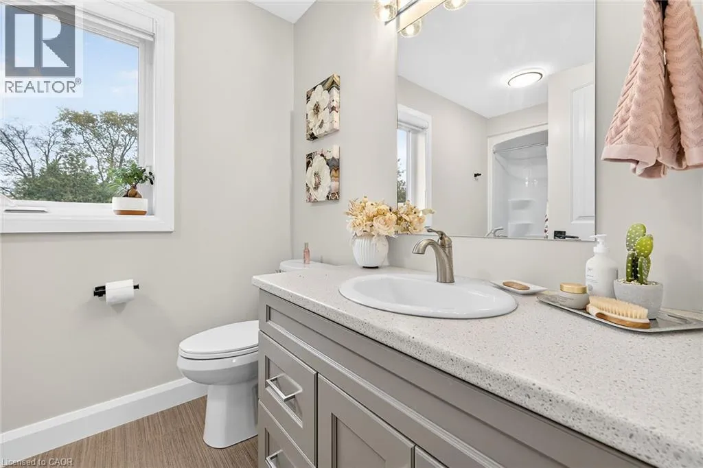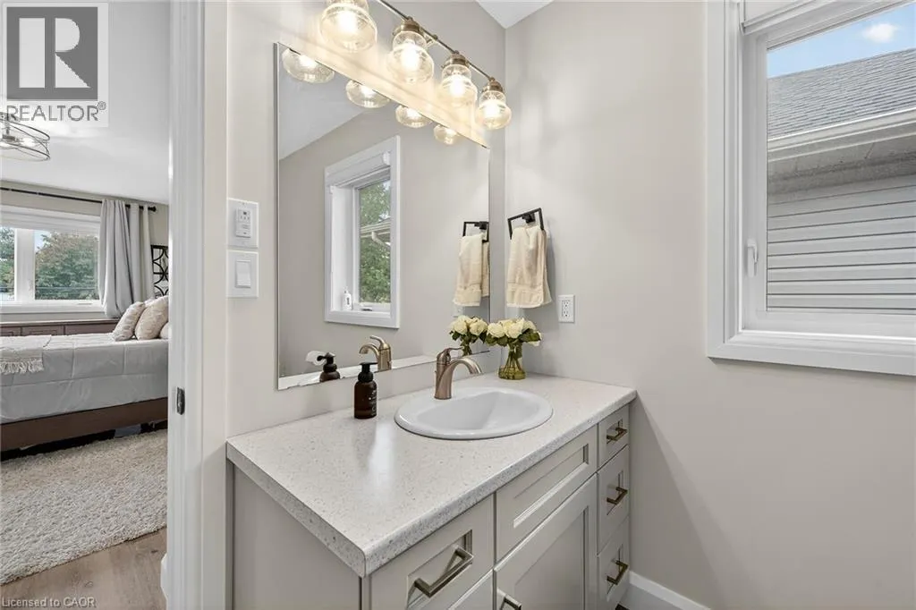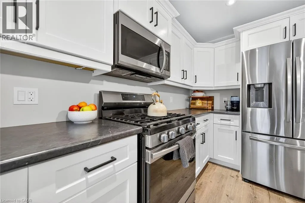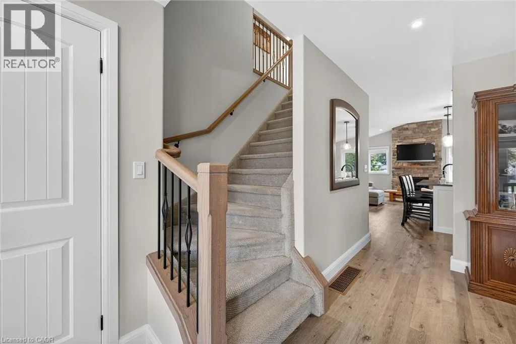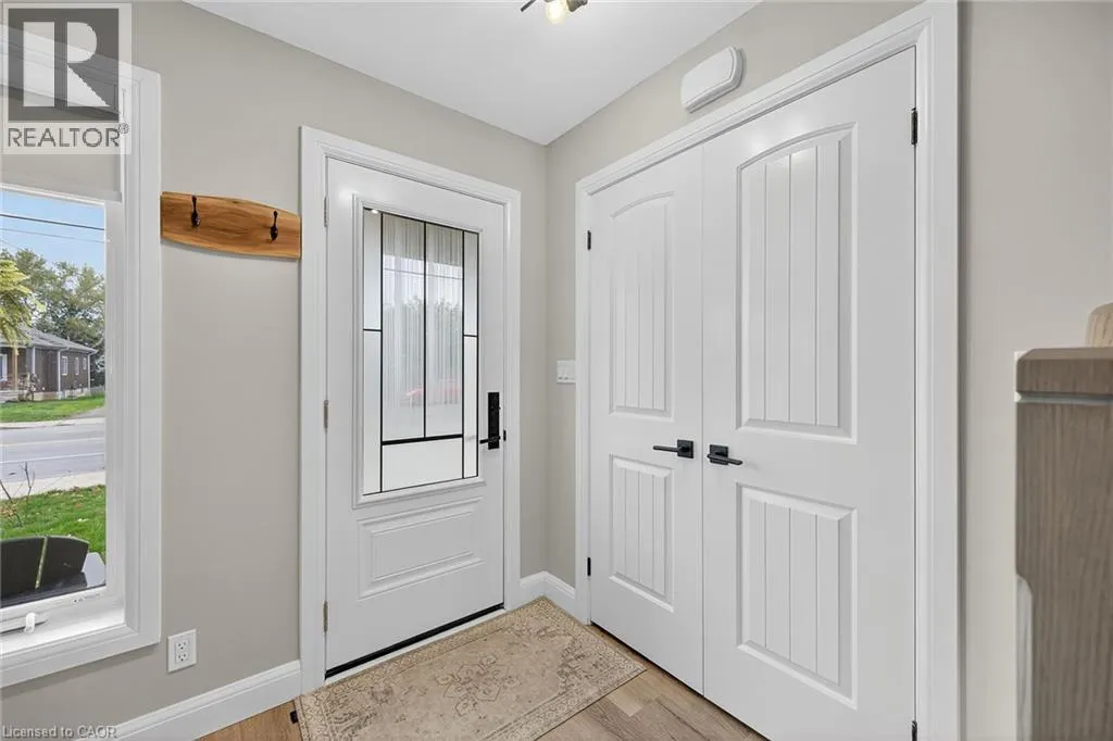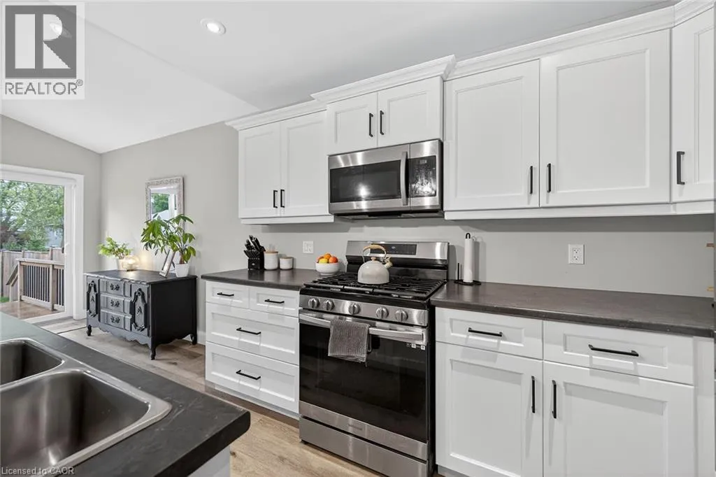 From #6 Hwy Haldimand County, becomes Main St., follow RT at 1st lights BEAUTIFUL BOER BUILD IN BUSTLING BEACH TOWN PORT DOVER! Just short walk away from the Summer Savvy Lake Erie Downtown destination is this 3+ year old home located amongst other impressively maintained properties. Bright white concrete drive pulls you up to the cozy covered front porch for front row seats to Dover's famous Friday the 13th motorcades. Home opens to a bright showroom dining area with large windows & all the area you need to fit that family table. Follow thru on the Notty Bleached Rustic luxury flooring to a modern open concept entertaining kitchen to living room. Stunning black hardware contrasting the gleaming white cabinets and trim work plus sporting a wet centre breakfast bar island including sink, Alkaline water system & hidden dishwasher. Convenient kitchen work areas are backlit by hidden under cab lighting. In open unison is your showcase living room with vaulted ceiling and from floor to peak Stone Hearth surrounding a toe toasting gas fireplace. Steps away are patio doors to your 15x12 deck over looking your fenced in lavishly landscaped backyard with veggie garden box at the end. To water all these lush things the owner installed a 2,500 gallon cistern to collect rain water for free plant & outside cleaning/watering needs. Sleeping level features 2 generous secondary bedrooms, large main/guest bathroom & to die for Primary Bedroom with his & her closets, large private ensuite oasis + 14x6 balcony for evening private shooting the breeze talk or witness bike traffic from above in the clouds! Your basement features newer equipment you won't be worrying about like owned hot water on demand + furnace and convenient wash sink. Big area currently used as a gym can all be finished into a great rec room and games area! Built in 2022 and still has the shine to prove it. Great value in this energetic summer hot spot and a tremendous area to raise your family in a warm welcoming small town only 15 minutes to Simcoe and 45 minutes to Hamilton! (id:27476)
