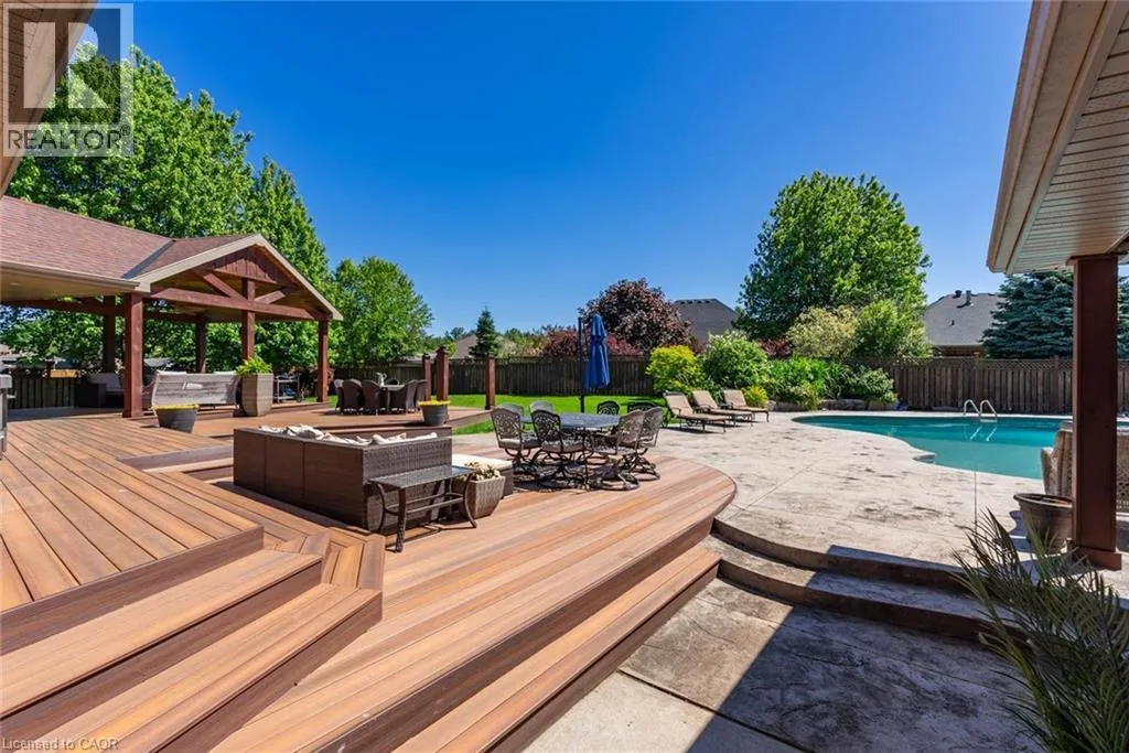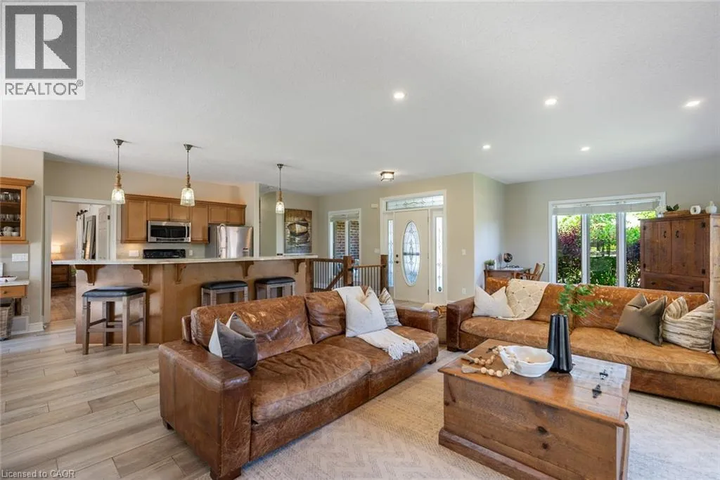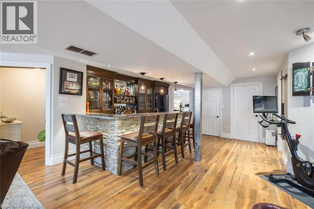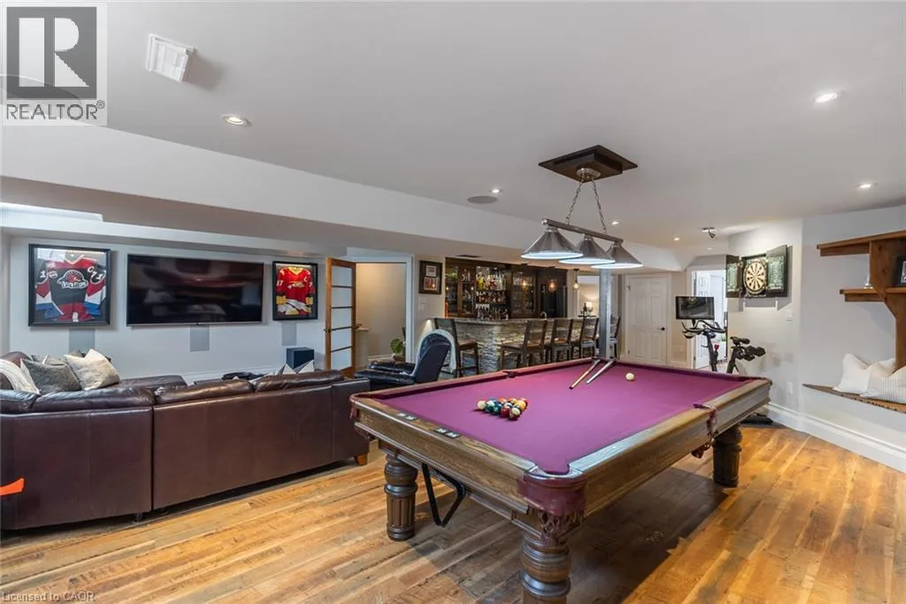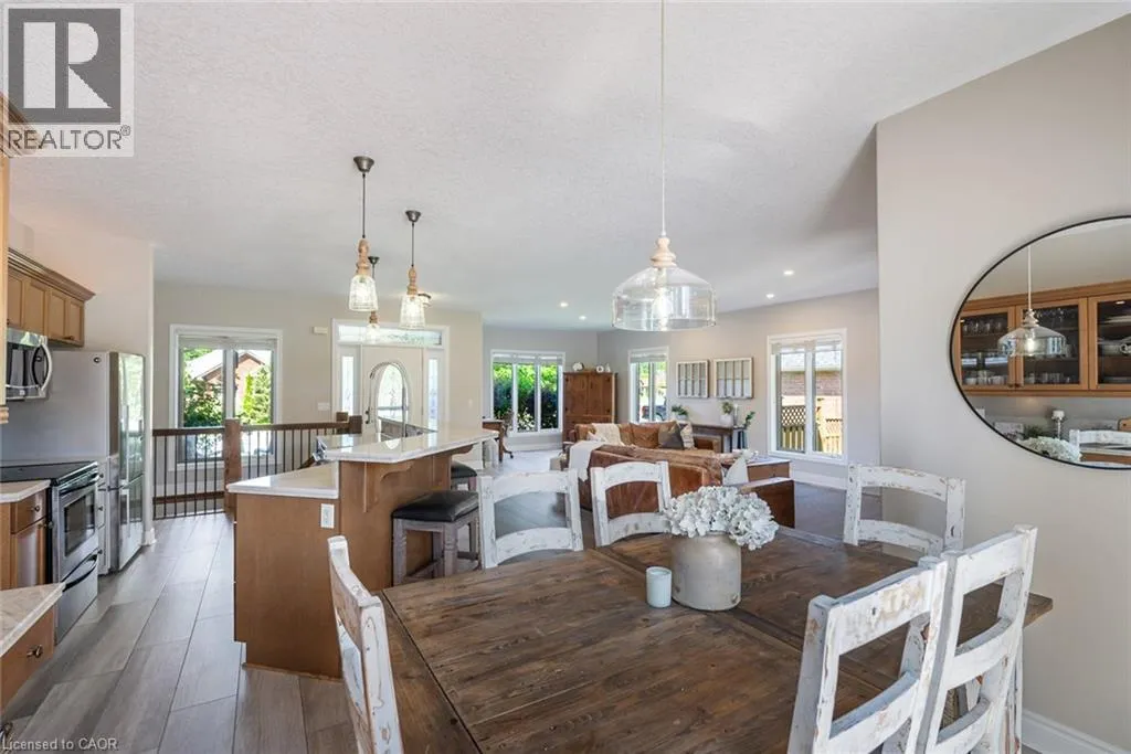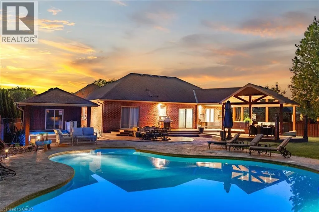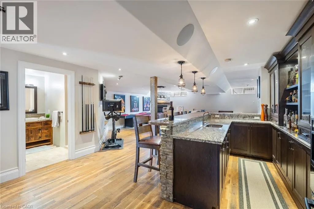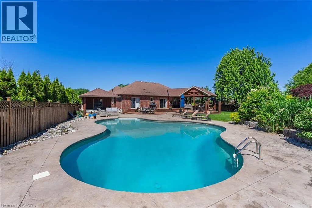 Hwy 6 to Ocean Way Tucked away on a quiet, tree-lined street, this impeccably designed bungalow is a masterclass in indoor-outdoor living. At its heart: a show-stopping 30x40 saltwater pool, framed by manicured gardens and a sprawling composite deck that's perfect for sun-soaked afternoons and effortless entertaining. A poolside shed offers endless potential - think curated cabana, cocktail bar, or the ultimate backyard escape. Step inside to discover a bright, airy layout with two generous bedrooms on the main level - ideal for down-sizers or young families seeking the ease of one-floor living. Porcelain tile runs throughout, lending a clean, cohesive flow and a touch of European minimalism. The fully finished lower level redefines functionality with flair: a moody, stone-topped bar, expansive recreation space, two additional bedrooms, and a luxe full bath complete with heated floors. Whether hosting friends or settling in for movie night, this space delivers. Surrounded by mature landscaping and designer-level details inside and out, summer starts here - in a backyard that feels more like a resort! (id:27476)