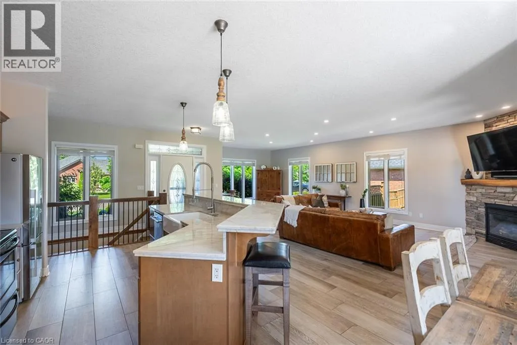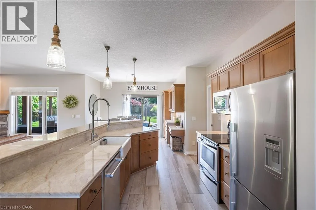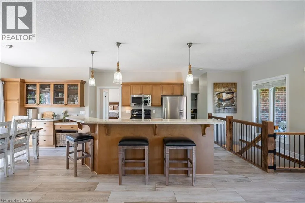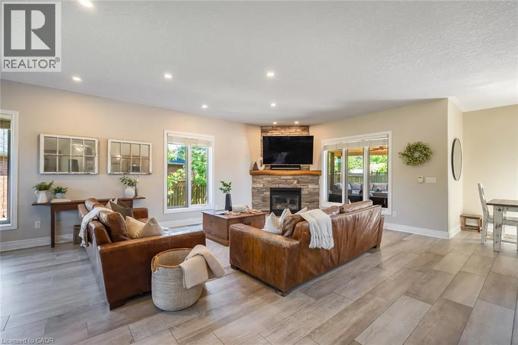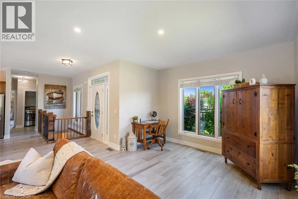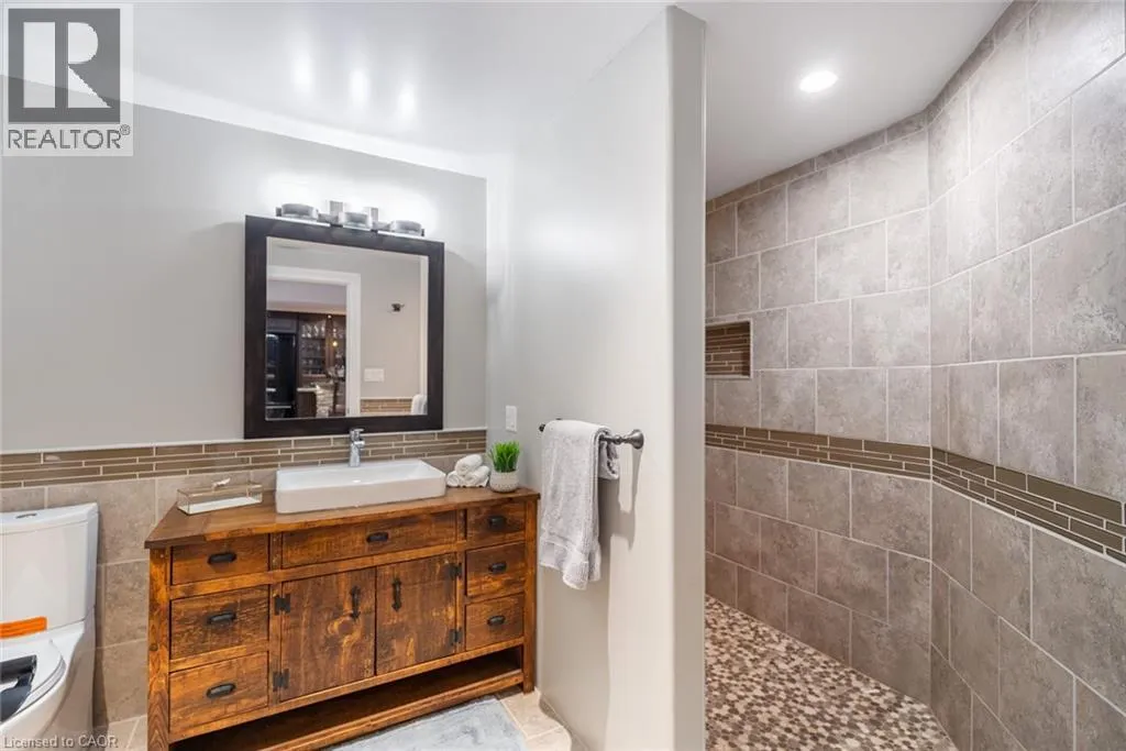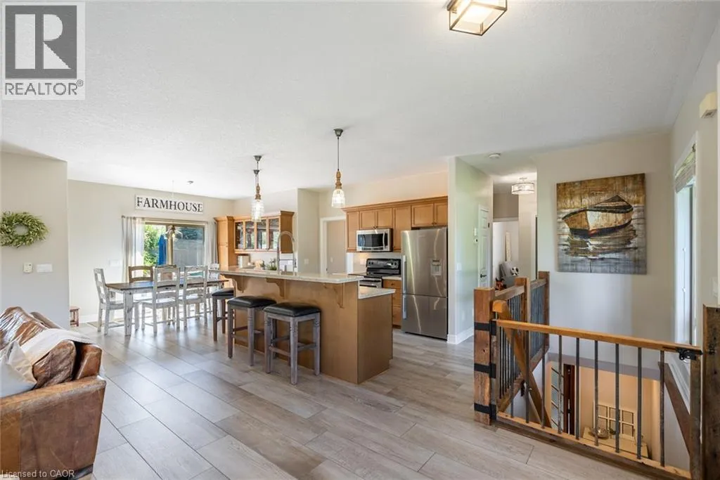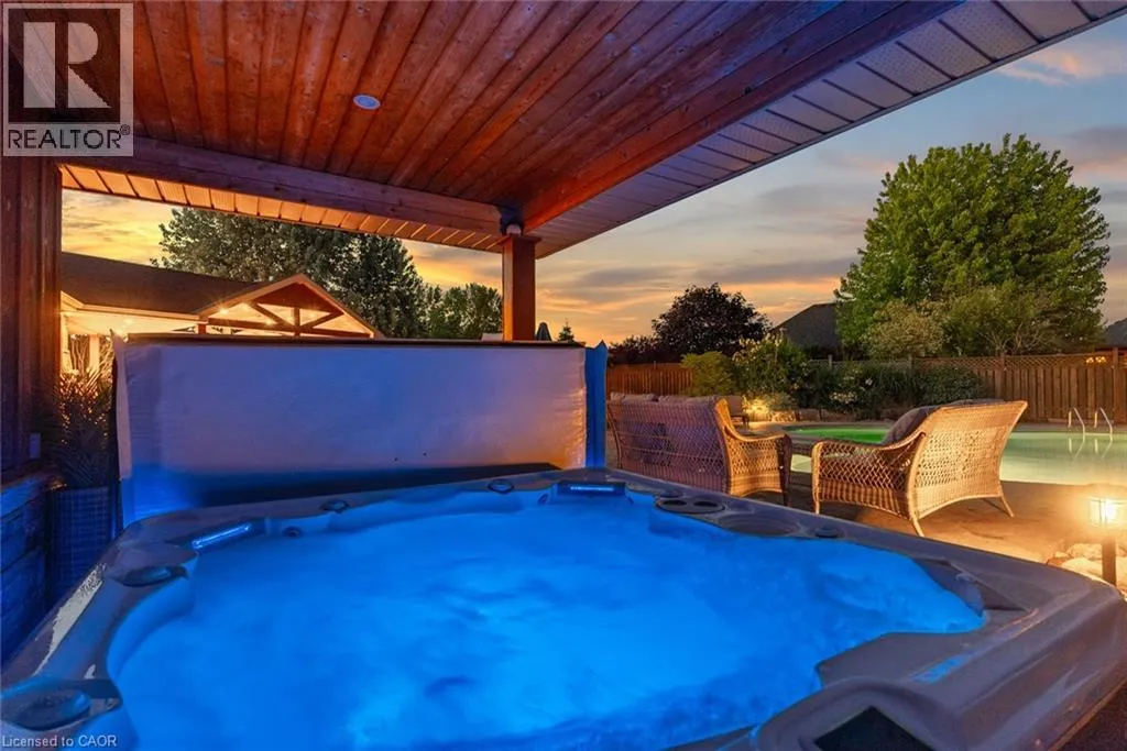 Hwy 6 to Ocean Way Tucked away on a quiet, tree-lined street, this impeccably designed bungalow is a masterclass in indoor-outdoor living. At its heart: a show-stopping 30x40 saltwater pool, framed by manicured gardens and a sprawling composite deck that's perfect for sun-soaked afternoons and effortless entertaining. A poolside shed offers endless potential - think curated cabana, cocktail bar, or the ultimate backyard escape. Step inside to discover a bright, airy layout with two generous bedrooms on the main level - ideal for down-sizers or young families seeking the ease of one-floor living. Porcelain tile runs throughout, lending a clean, cohesive flow and a touch of European minimalism. The fully finished lower level redefines functionality with flair: a moody, stone-topped bar, expansive recreation space, two additional bedrooms, and a luxe full bath complete with heated floors. Whether hosting friends or settling in for movie night, this space delivers. Surrounded by mature landscaping and designer-level details inside and out, summer starts here - in a backyard that feels more like a resort! (id:27476)