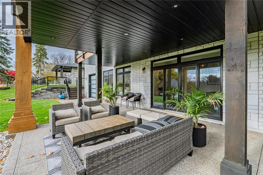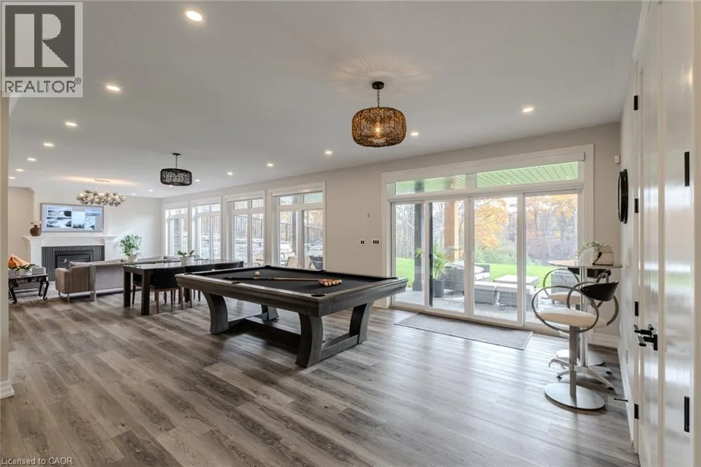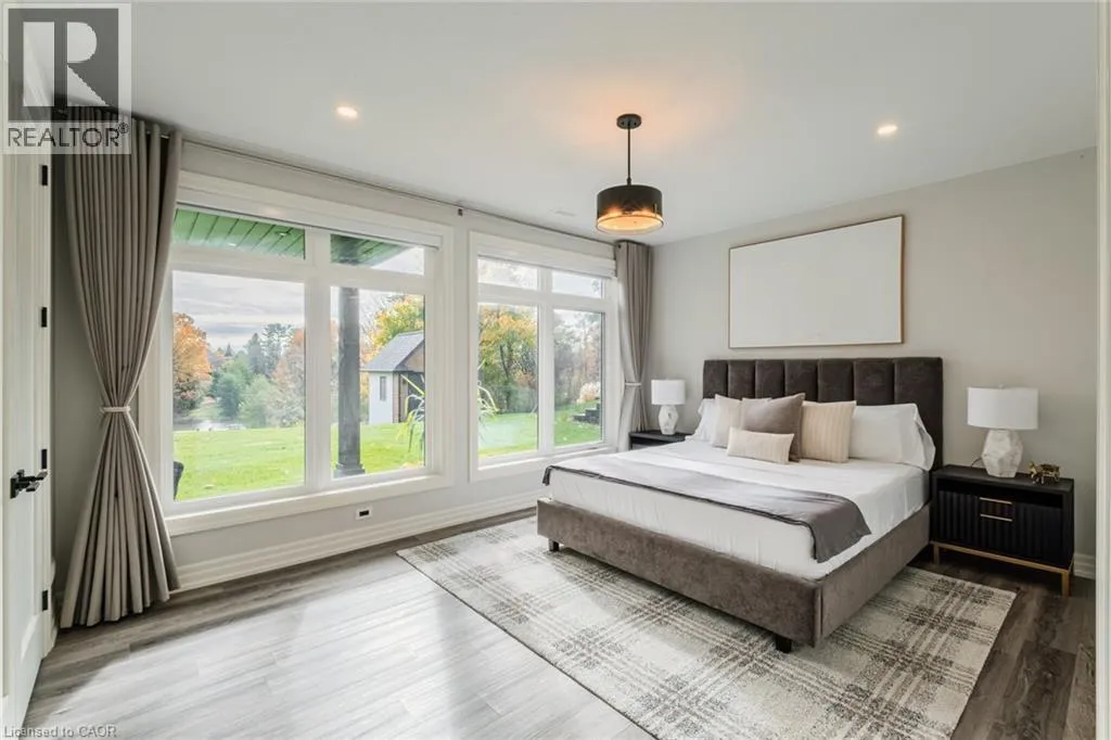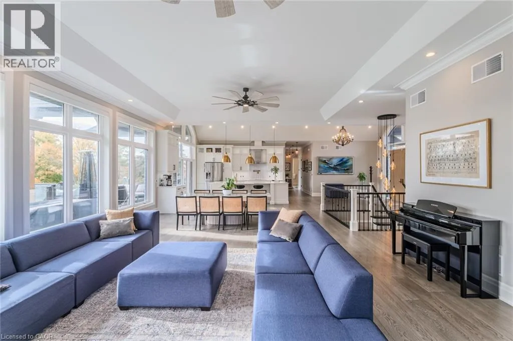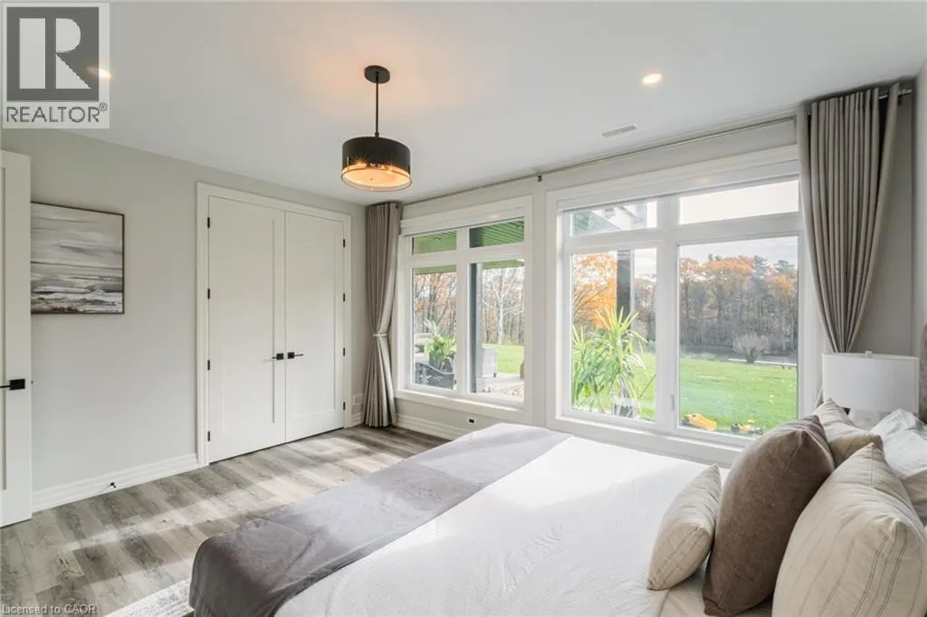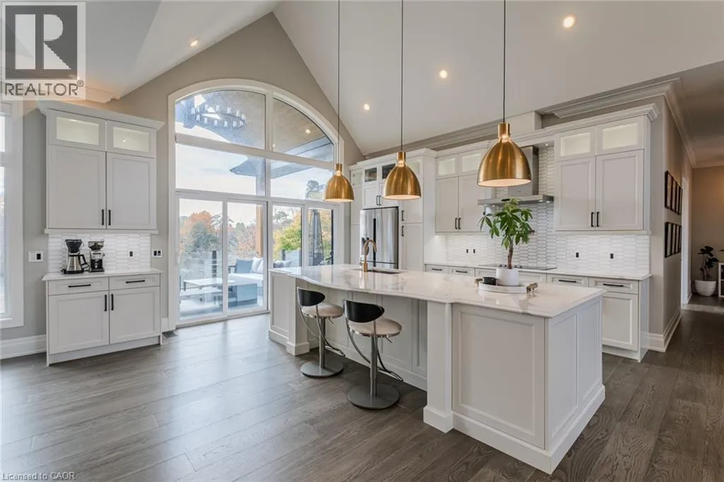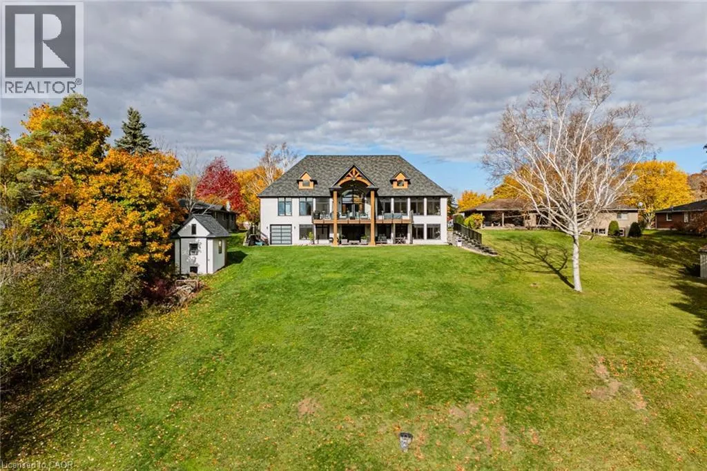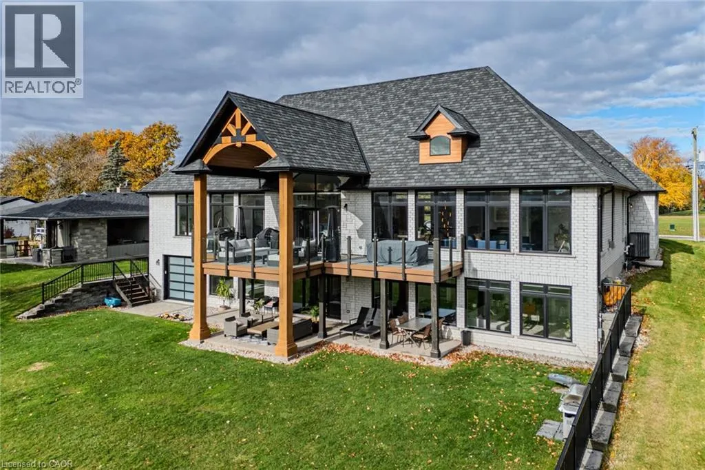 Cockshutt Rd to Inglewood Dr to Sunning Hill Dr Spectacular Waterfront Bungalow on Black Creek, Port Dover Welcome to this custom-built luxury bungalow on a 1.2-acre estate lot backing onto Black Creek with direct access to Lake Erie. Enjoy year-round waterfront living, dock your boat, kayak, or paddle board in summer, and skate the creek in winter. Offering over 6000 sq. ft. of living space, this 7-bedroom, 6-bath home showcases exceptional craftsmanship, high-end finishes, and breathtaking views throughout. The open-concept main floor features 10.5â17 ft ceilings, a cathedral ceiling in the main entrance and kitchen, and a coffered ceiling in the living area. A wall of windows frames panoramic views of nature and water, while a gas fireplace, automated blinds, and pot lights create a warm and elegant ambiance. Step out to a massive walkout deck perfect for entertaining. The gourmet kitchen offers quartz countertops, tiled backsplash, a large island with breakfast bar, induction cooktop, built-in oven, pot filler, high-end appliances, and ample cabinetry. The primary suite overlooks the creek and features a spa-style ensuite with soaker tub, walk-in glass shower, double vanity, and large walk-in closet. A main floor guest/in-law suite includes a private ensuite. Main floor laundry offers access to the 3-car garage. The lower level impresses with 9 ft ceilings, full kitchen with large island with breakfast bar, gas fireplace, 3 bedrooms, workout room, walkout to patio, and access to a 4th garage. Pot lights, a walk-up to the main garage, and large windows make it feel like main living space. The backyard includes a bunky with living area, irrigation system, and pool/hot tub-ready setup. Hot and cold exterior water lines ensure every outdoor moment, from rinsing off to playful splashes, is done in total comfort. Donât miss this rare opportunity to live in one of Port Doverâs most sought-after areas, close to shopping, schools, beaches, breweries, vineyards, restaurants, and the theatre. (id:27476)