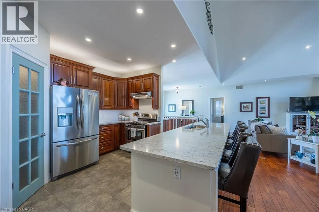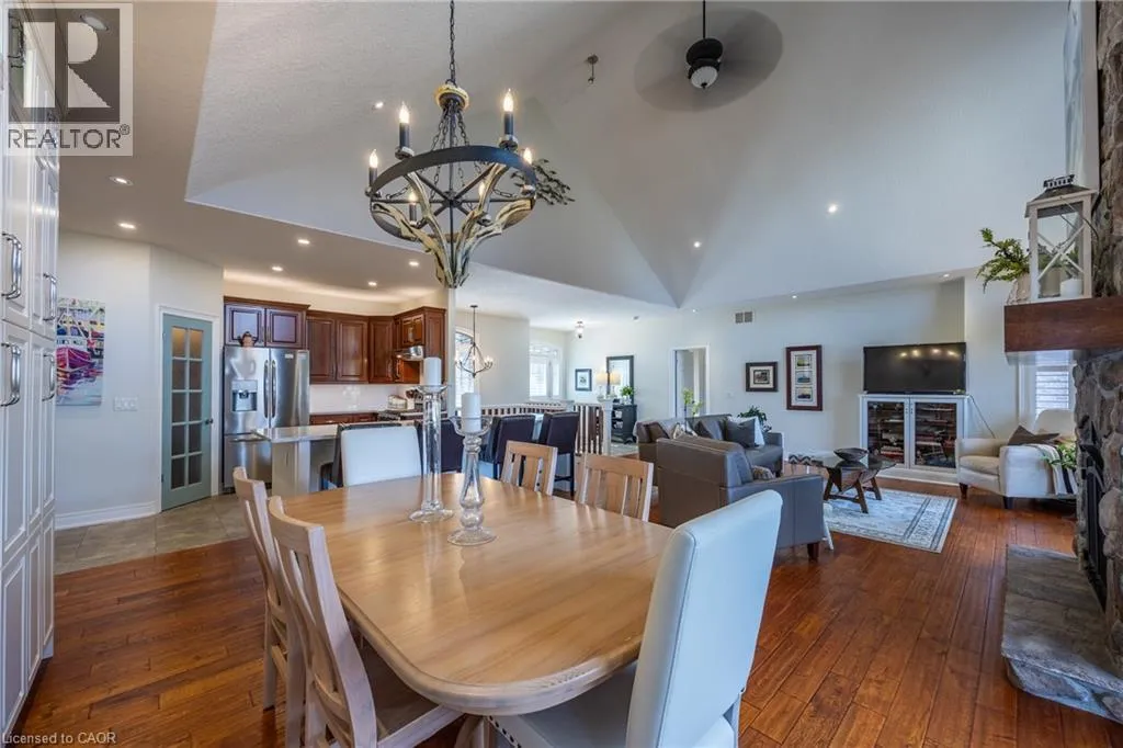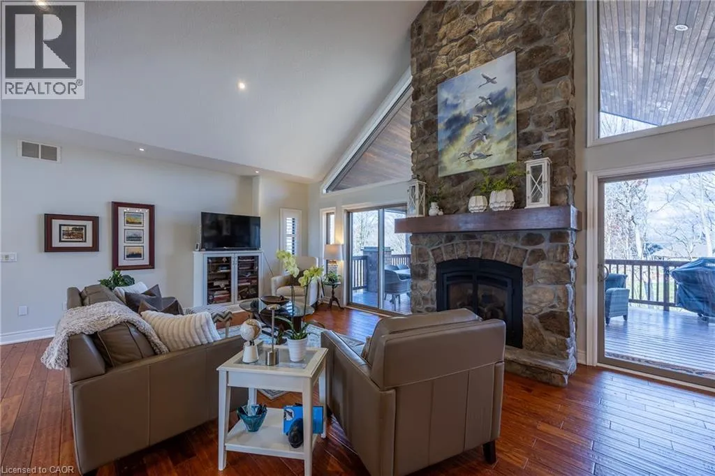 From Hwy 6 take Somerst Drive to Silver Shadow Way. House on left hand side. Welcome to 15 Silver Shadow Way, an exceptional brick-and-stone bungalow set in a desirable Port Dover neighbourhood. Nestled in this vibrant beach townâknown for its local restaurants, boutique shops, and year-round recreational activitiesâthis home also offers convenient access to communities including Simcoe, Brantford, and Hamilton all within a short drive. With 2,852 sq. ft. of high-quality living space, this property delivers comfort and craftsmanship inside and out. The main level features a stunning open-concept great room with cathedral ceiling and a full wall of windows showcasing views of Black Creek Valley. A floor-to-ceiling stone fireplace anchors the space, while sliding doors lead to the expansive upper deck, complete with cedar-lined tongue-and-groove cathedral ceiling. Throughout the main floor, distressed hand-scraped hardwood floors add warmth and character, complementing the gourmet maple kitchen with large island, solid surface counter tops and butler pantry/coffee bar. This level also includes a spacious primary bedroom with ensuite, a second bedroom and 4-piece bath. The full walk-out lower level extends your living space with over 1,100 sq. ft. of beautifully finished area featuring a generous family room, two spacious additional bedrooms a 4-piece bath and and lower level laundry. Walk out to the rear patio and enjoy peaceful valley views from your own backyard. Large exposed aggregate drive way and oversized two-car garage.Refined living in a sought-after lakeside communityâwhere natural beauty, modern amenities, and small-town charm come together seamlessly. Check out the virtual tour and book your showing today. (id:27476)