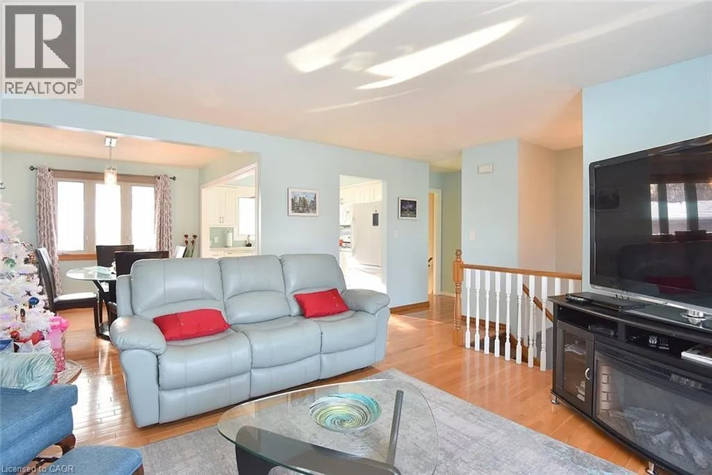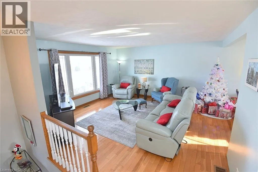 Main St to Nelson St. W to Mergl Drive or Radical Rd to Nelson St. W to Mergl Drive. Situated in a desirable neighbourhood, this beautifully maintained raised bungalow is perfect for a family or empty nesters! The oversized 27' x 27' detached garage has an approximately 2 yr old roof, hydro and is insulated for year round use and offers a perfect spot for hobbies or a workshop. Bright and airy throughout and decorated in neutral colours, this home is in move in condition! The main floor offers a large living room and dining room with hardwood floors, a modern kitchen with an abundance of cupboards, quartz countertops, updated appliances and luxury vinyl flooring, 3 spacious bedrooms and a modern 4 piece bath. The lower level offers a cozy family room featuring a gas fireplace for chilly winter nights. A 4th bedroom, a recently completed 3 piece bathroom with a shower, laundry room and storage room complete the lower level. The fully fenced rear yard offers a patio with a gazebo, gas bbq hookup and pretty gardens. The stamped concrete driveway provides parking for 4 vehicles. Just minutes from shopping, schools, seniors' centre, parks, waterfront and restaurants! (id:27476)