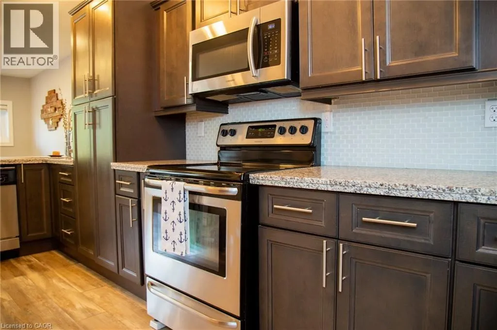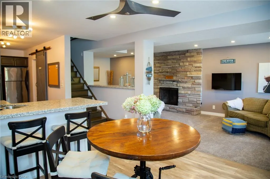 Highway #6 to Grand St 52 Grand St. in Port Dover is the kind of home that lives larger than it looks, thoughtfully designed to make smart use of every space. Set on a quiet, dead end street, it offers a unique layout with all 3 bedrooms on the main level, laundry, and the living areas below take full advantage of the walkout lower level. This floor features a very generous primary bedroom with access to a private balcony where you can unwind and enjoy beautiful sunsets overlooking the channel and the Port Dover Yacht Club.Youâll also find a nicely updated 4 Pc Bathroom and a foyer style entrance which shows an open staircase to the downstairs living areas. Downstairs, the bright walkout level feels warm and inviting thanks to large windows and direct access to the lower deck. The spacious living room easily accommodates larger furniture and includes a wood-burning fireplace for cozy fall and winter evenings. The kitchen offers ample cabinetry, full-size appliances and granite countertops, with a dining area that enjoys lovely views and opens to the deck â perfect for indoor-outdoor living. An easy 15-minute walk to the beach, boutique shops, local restaurants, and even an evening at the Lighthouse Theatre on Main Street. When youâre ready to wander a little farther, Norfolk County opens right up with wineries, breweries, concert venues, beaches, and scenic walking and biking trails all within a relaxed half-hour drive. And with Hamilton about an hour away, Brantford even closer, and Toronto, Oakville, and Burlington just an hour and a half out, you can skip the âup northâ or cross-city traffic and simply come home to 52 Grand St., Port Dover. (id:27476)