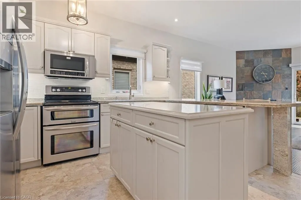 West side of downtown Port Dover, near Greenock Street Welcome to Unit 16 â 800 Main Street, Port Dover â enjoy a maintenance-free lifestyle in this premium end-unit bungalow offering 1,247 sq ft of beautifully finished main floor living space plus a fully finished basement. This move-in-ready home has been tastefully updated with modern colours, fixtures, and finishes throughout, creating an inviting and contemporary atmosphere. The spacious foyer provides convenient access from both the front door and the attached single-car garage. The stylish kitchen features stainless steel built-in appliances, granite countertops, a breakfast bar, centre island with matching quartz surface, and a pantry for added convenience. A separate dining room with elegant French doors and hardwood flooring offers the perfect setting for formal gatherings or entertaining family and friends. The bright and welcoming living room showcases hardwood floors, a striking floor-to-ceiling slate natural gas fireplace, and sliding doors leading to a private two-tiered 30' x 10' deck with a motorized awning and BBQ gas hook-up, ideal for relaxing or entertaining outdoors. The primary bedroom includes hardwood flooring, a walk-through double closet, in-suite laundry, and ensuite privileges to a luxurious 4-piece bath with a large glass walk-in shower. The fully finished basement expands the living space with a generous recreation room, cozy den, large bedroom, 3-piece bath, versatile office (or potential third bedroom), and ample storage in the utility area. Nestled among mature trees and landscaped gardens, this peaceful location offers easy access to the scenic Lynn Valley Trail and is just minutes from Port Doverâs downtown, beach, theatre, marina, shops, and restaurants. Experience the perfect blend of luxury, comfort, and convenience in one of Norfolk Countyâs most desirable lakeside communities â this is Port Dover living at its finest. (id:27476)