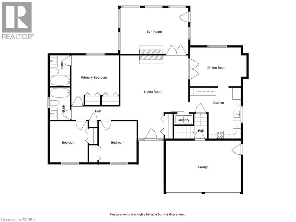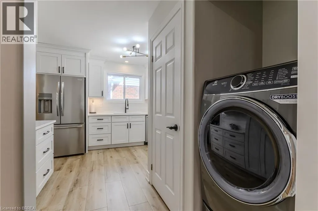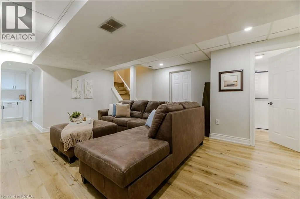 From Highway 6 take a right onto Somerset Dr. than a right onto Newport Lane. Catch the breezeâlake town living awaits at 5 Newport Lane in Port Dover. Located in the desirable Woodlands neighbourhood, this fully renovated all-brick bungalow blends modern comfort with functional multi-family living. Thoughtful updates throughout make this home move-in ready and designed for family flexibility. The main level features three generous bedrooms, including a primary suite with its own ensuite bathroom, plus a second full bathroom for the family. Bright open living and dining areas connect to a refreshed kitchen with contemporary cabinetry, made-in-Canada countertops, and stylish finishes. Featuring convenient main-level laundry adds ease for the primary household. An additional rear family room with large windows overlooks the yard and peaceful ravine, providing a natural backdrop. The lower level stands out as a complete second living spaceâtwo dwellings in one home. The suite includes two bedrooms, a full kitchen, its own laundry, and two large living or recreation areas, plus accessible entrance through the side garage door. This setup offers comfort, privacy, and independence for multi-family arrangements, in-law accommodation, adult children, or extended family stays. Set on a ravine lot with a brand-new 2025 deck, the backyard provides space for outdoor enjoyment, a hot tub, or quiet moments in a tree-lined setting. Modern updates throughout the home, including an upgraded 200-amp electrical panel, contribute to a truly move-in ready experience for the next owners. 5 Newport Lane combines space, flexibility, and lake town charmâjust moments from the sandy shoreline of Lake Erie and the beauty of Port Dover. (id:27476)