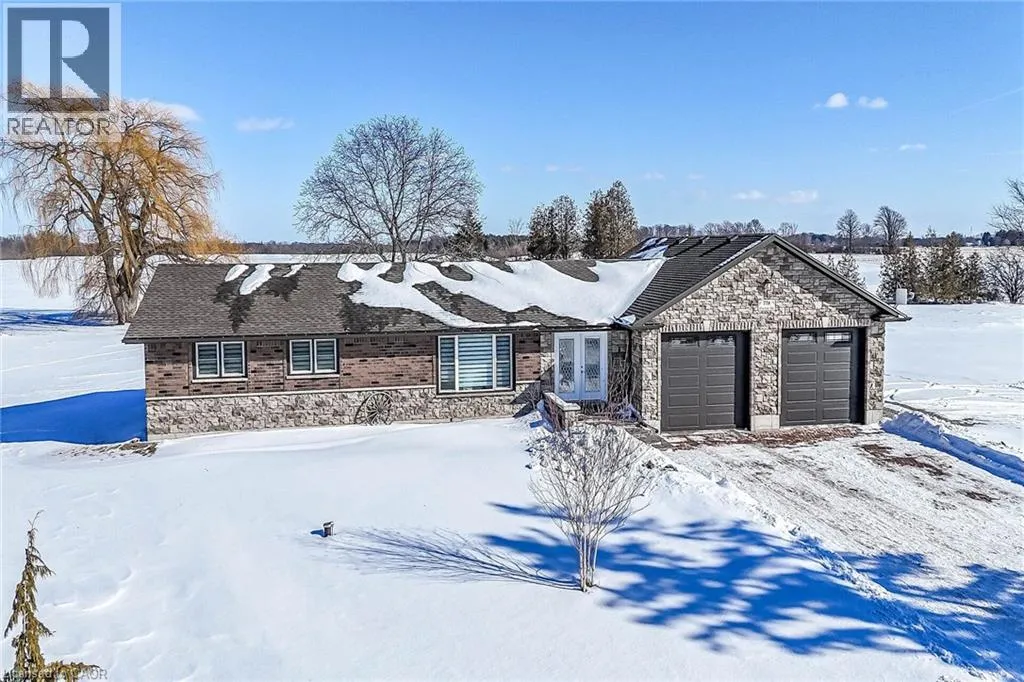 Hwy 3 to South on Blueline Road, cross over Concession 5 Woodhouse Road, property on Left side of Blueline Road âBetter than Newâ beautifully renovated bungalow, owned by prof. brick/stone mason, where skillful handiwork & workmanship is evidenced by stunning stone/brick facade covering the original dwelling & large 2020 addition incs 28âx36â attached garage offering scissor truss hoist worthy ceiling & 2 insulated 10âx10â RU garage doors w/hi-end side openers. This sprawling âEstateâ style home is positioned handsomely on 1.95ac manicured rural lot offering desired location less than 5-10 min commute to Port Dover, Port Ryerse, Simcoe in-route to popular destination villages & towns dotting Lake Erie Golden South Coast. Impressive paver stone double driveway, passing thru stone entry pillars, extends to stylish stone walkway leading to front door accessing grand foyer introducing over 1,500sf of chicly appointed interior highlighted w/stunning open concept living room, gorgeous new custom kitchen sporting brilliant white cabinetry, granite countertops, designer island, SS appliances & dining area enjoying patio door WO to 16âx12â entertainment deck incs rear garage entry. The opulent edifice has been completely gutted back to studs in 2020 - then insulated, drywalled & complimented w/luxury vinyl flooring, pot lighted ceilings & completed w/freshly painted neutral décor. Main level design continues past modern 4pc bath enhanced w/quartz vanity, tiled tub & shower surround - on to N-wing primary bedroom, sizeable guest bedroom & spacious laundry room (formerly bedroom). Large multi-purpose room, ftrs drywalled perimeter walls, highlights 1,500sf open & airy lower level incs versatile finished room (under addition), 2 utility rooms & huge storage room. Extras - 200 amp hydro, n/gas furnace with Hepa fresh air system, AC, roof-2020, 173ft drilled well-2023, peroxide UV purification, 45ft van storage trailer & septic system. Approved drawings & permits for 1480sf residential addition available. Blending Executive Living with Simplistic Country Comfort! (id:27476)