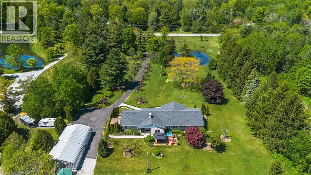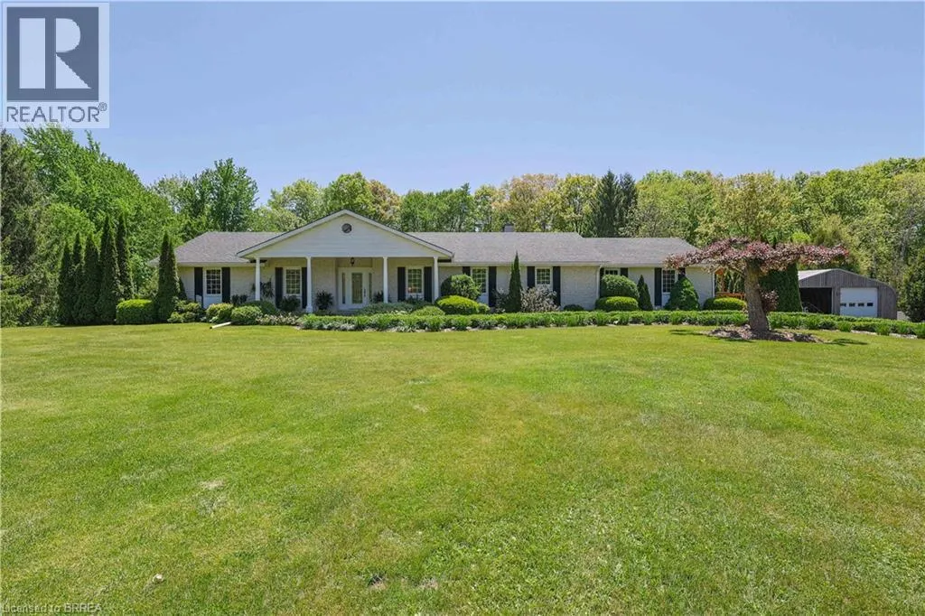 #24Hwy S. L On Radical Rd A RARE & REMARKABLE COUNTRYSIDE DREAM HOME nestled in beautiful Norfolk County! Tucked past a charming, tree-lined driveway, this sprawling white brick bungalow awaits on just shy of 3.5 acres of private land. SEPARATE IN-LAW SUITE, TRANQUIL POND PLUS 6 CAR HEATED & INSULATED 30x54FT QUONSET for all your cars and toys! Fully framed by forests and 227 ft of frontage, prepare to be embraced by nature at every turn. Boasting over 3,000 sq ft above grade plus the full in-law suite with separate entrance and patio! Inside, a thoughtfully designed layout unfolds with a welcoming foyer, formal dining room, and two cozy, elegant sunken living rooms. A floor-to-ceiling wood-burning fireplace brings warmth and character to the main living area, while the expansive kitchen with ample cabinetry flows naturally into the dining spaceâperfect for family meals or hosting. The main home features 3 generous bedrooms and 2.5 baths with main floor laundry. The In-Law suite offers 2 more spacious bedrooms, 1 full bath, bright living room, kitchen, plus a partially finished section of the massive basement. The lower level offers even more space to customize for your lifestyleâwith endless room to grow, gather, and ground yourself in peaceful living. Step outside and youâll find the serenity of mature trees, manicured gardens, and a stunning pond tucked into your private slice of paradise. The long, tree-lined driveway leads to a massive HEATED 2-BAY QUONSET set on a concrete pad. With a wide paved drive and room to roam, thereâs space for every guest and every dream. Large front porch plus rear porch and gazebo, complete with a hottub for you to relax. Just minutes from the sparkling shores of Lake Erie and the vibrant town of Port Dover, this property blends the best of tranquil rural living with lake life convenience. Whether youâre looking for a multi-generational family haven, a private countryside retreat, or a home base by the lake, this one-of-a-kind property delivers it all. (id:27476)