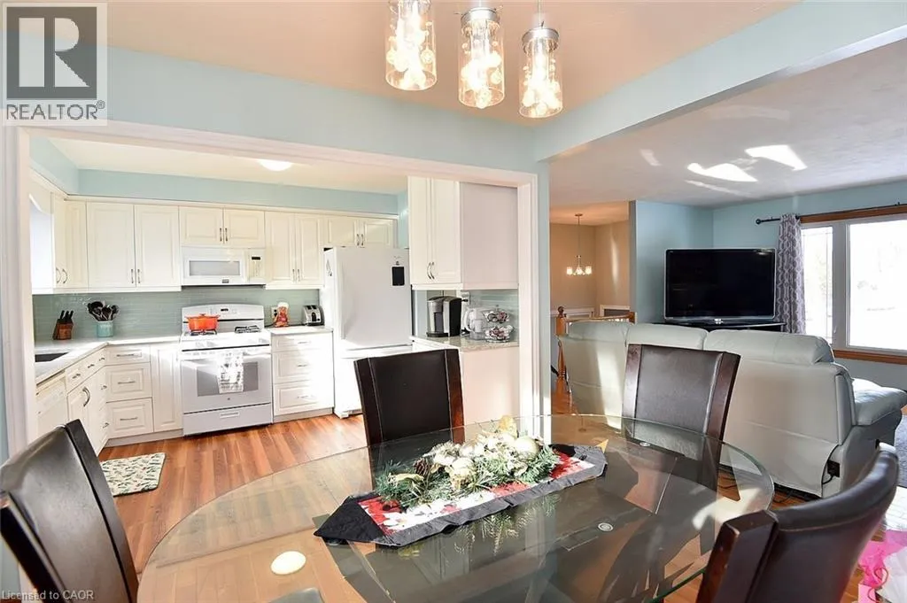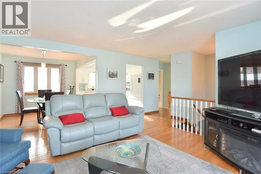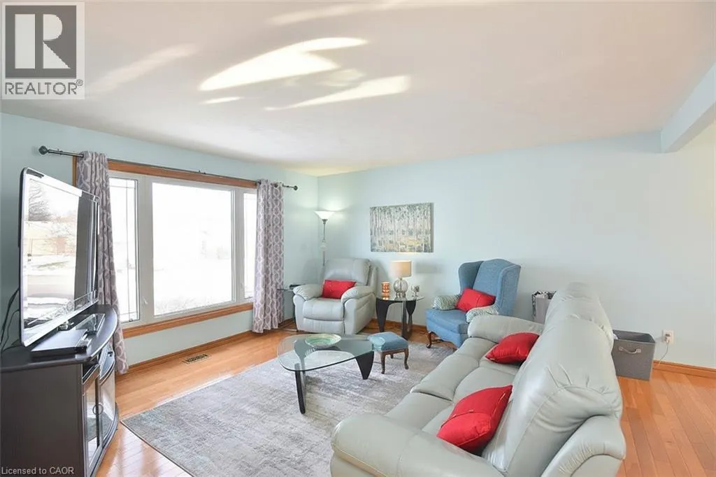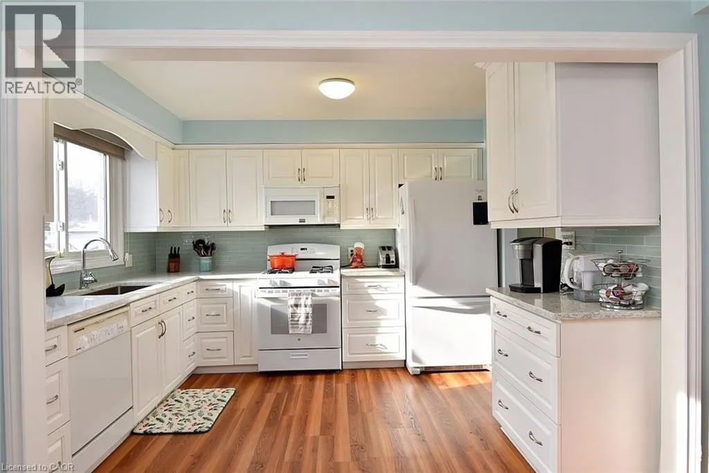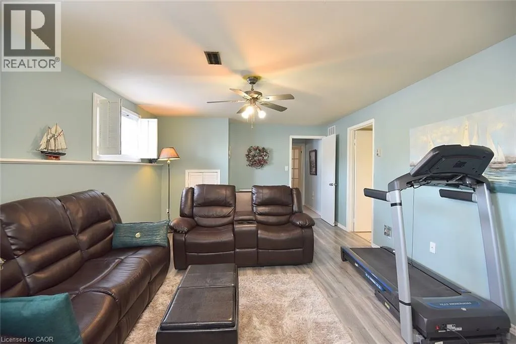 Main St to Nelson St. W to Mergl Drive or Radical Rd to Nelson St. W to Mergl Drive. Situated in a desirable neighbourhood, this beautifully maintained raised bungalow is perfect for a family or empty nesters! The oversized 27' x 27' detached garage has an approximately 2 yr old roof, hydro and is insulated for year round use and offers a perfect spot for hobbies or a workshop. Bright and airy throughout and decorated in neutral colours, this home is in move in condition! The main floor offers a large living room and dining room with hardwood floors, a modern kitchen with an abundance of cupboards, quartz countertops, updated appliances and luxury vinyl flooring, 3 spacious bedrooms and a modern 4 piece bath. The lower level offers a cozy family room featuring a gas fireplace for chilly winter nights. A 4th bedroom, a recently completed 3 piece bathroom with a shower, laundry room and storage room complete the lower level. The fully fenced rear yard offers a patio with a gazebo, gas bbq hookup and pretty gardens. The stamped concrete driveway provides parking for 4 vehicles. Just minutes from shopping, schools, seniors' centre, parks, waterfront and restaurants! (id:27476)