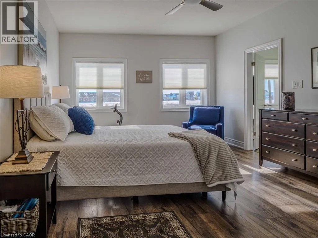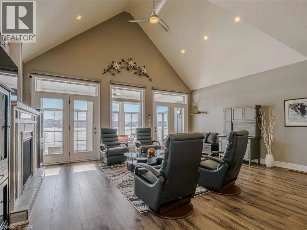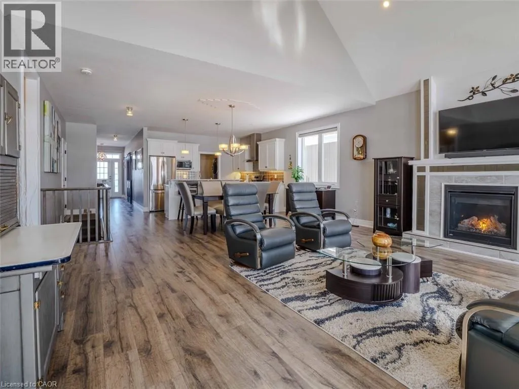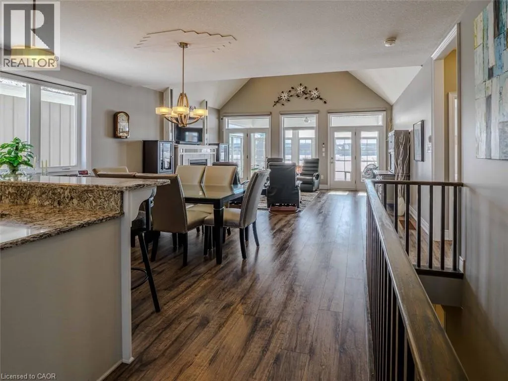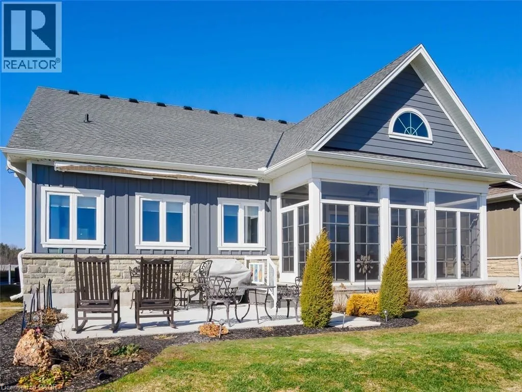 Welcome to this beautifully finished home offering 1834 sq. ft. low-maintenance living in the sought-after lakeside Dover Coast community. Offering custom finishesâincluding stained glass accents, custom barn doors, and a unique antique vanityâthis home is truly one of a kind. Backing on to the 2nd fairway of the golf course, this property delivers comfort, functionality, & lifestyle in equal measure. The main level features a beautiful kitchen with quartz countertops, stainless steel appliances and quality cabinetryâperfect for both everyday living & entertaining. The open-concept design flows into the dining area and a stunning living room highlighted by a vaulted ceiling, beautiful gas fireplace, and 2 sets of glass doors leading to the 3 season sunroom that fill the space with natural light. Enjoy peaceful mornings or relaxing evenings in the sunroom, overlooking the golf courseâa lovely setting for quiet moments or gathering with friends. Convenient main-floor laundry offers excellent flexibility and could easily function as a walk-in pantry off the kitchen or a walk-in closet for the adjacent office/bedroom, depending on your needs. The fully finished lower level provides 1,834 sq ft of additional living space, featuring a rec room, bedroom, 3-piece bathroom, creating an ideal space for guests, hobbies & storage. For the car enthusiast, the home offers an oversized double garage complete with heating and durable epoxy floors. Residents enjoy access to amenities including private swimming access, golf course, pickleball crts, & a fenced dog park, enhancing the active lifestyle this community provides. (*some amenities addition fee) Located in the vibrant destination town of Port Dover on the shores of Lake Erie, youâll enjoy beaches, boating, fishing, a marina, walking & biking trails, restaurants, boutiques, and all that Norfolk County has to offer. Here's your opportunity to own a beautifully finished home in one of Ontarioâs most charming waterfront towns. (id:27476)