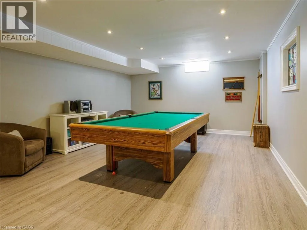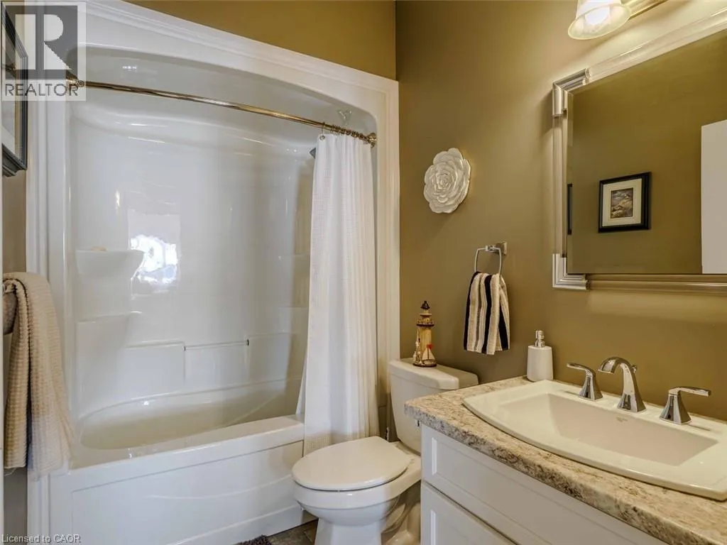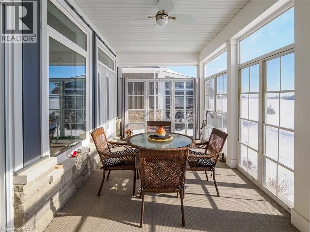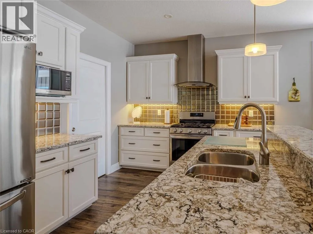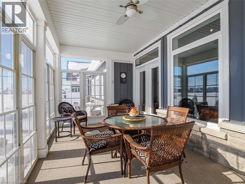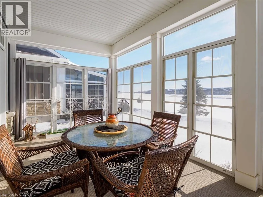 Welcome to this beautifully finished home offering 1834 sq. ft. low-maintenance living in the sought-after lakeside Dover Coast community. Offering custom finishesâincluding stained glass accents, custom barn doors, and a unique antique vanityâthis home is truly one of a kind. Backing on to the 2nd fairway of the golf course, this property delivers comfort, functionality, & lifestyle in equal measure. The main level features a beautiful kitchen with quartz countertops, stainless steel appliances and quality cabinetryâperfect for both everyday living & entertaining. The open-concept design flows into the dining area and a stunning living room highlighted by a vaulted ceiling, beautiful gas fireplace, and 2 sets of glass doors leading to the 3 season sunroom that fill the space with natural light. Enjoy peaceful mornings or relaxing evenings in the sunroom, overlooking the golf courseâa lovely setting for quiet moments or gathering with friends. Convenient main-floor laundry offers excellent flexibility and could easily function as a walk-in pantry off the kitchen or a walk-in closet for the adjacent office/bedroom, depending on your needs. The fully finished lower level provides 1,834 sq ft of additional living space, featuring a rec room, bedroom, 3-piece bathroom, creating an ideal space for guests, hobbies & storage. For the car enthusiast, the home offers an oversized double garage complete with heating and durable epoxy floors. Residents enjoy access to amenities including private swimming access, golf course, pickleball crts, & a fenced dog park, enhancing the active lifestyle this community provides. (*some amenities addition fee) Located in the vibrant destination town of Port Dover on the shores of Lake Erie, youâll enjoy beaches, boating, fishing, a marina, walking & biking trails, restaurants, boutiques, and all that Norfolk County has to offer. Here's your opportunity to own a beautifully finished home in one of Ontarioâs most charming waterfront towns. (id:27476)