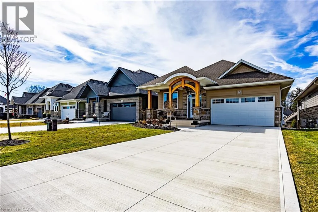 Experience refined living in this exceptional home where quality, efficiency, and craftsmanship come together in a private enclave of beautifully designed craftsman-style residences. Built with attention to detail and energy efficiency in mind, this home offers both comfort and lasting value in a peaceful natural setting. Residents enjoy the unique benefit of shared ownership of 14 acres of protected old-growth Carolinian forest, complete with scenic walking trails. The community also features 2,000 feet of private riverfront with access to a kayak launch, fishing platform, and boat dock, providing convenient passage to Lake Erie. This impressive custom-built home offers 2,644 sq. ft. of finished living space, including 2+2 bedrooms and 2+1 bathrooms, along with a fully finished walkout basement. The exterior is a combination of stone and Hardie board accented by solid oak timbers and complemented by a concrete driveway and a leaded glass door. Inside, the spacious foyer features 10-foot ceilings, pale oak flooring, pot lighting, crown moulding, and solid core doors. The beautifully designed white custom kitchen features stacked cabinetry with glass display, quartz countertops, stainless steel appliances and a convenient built-in coffee and wine bar. The living room highlights an upgraded Montego gas fireplace, along with a tray ceiling and a wall of windows. Sliding doors on both levels open to covered outdoor porches overlooking a thoughtfully designed garden. Bathrooms are finished with custom vanities and quartz countertops. The main-floor laundry room includes custom cabinetry, stainless appliances, and a large double closet. Low monthly common element fees provide added convenience and include weekly lawn maintenance and snow removal for the driveway and walkway. This property offers an exceptional opportunity to enjoy peaceful energy efficient living on the river. Schedule your private viewing today and discover the lifestyle this remarkable home offers. (id:27476)